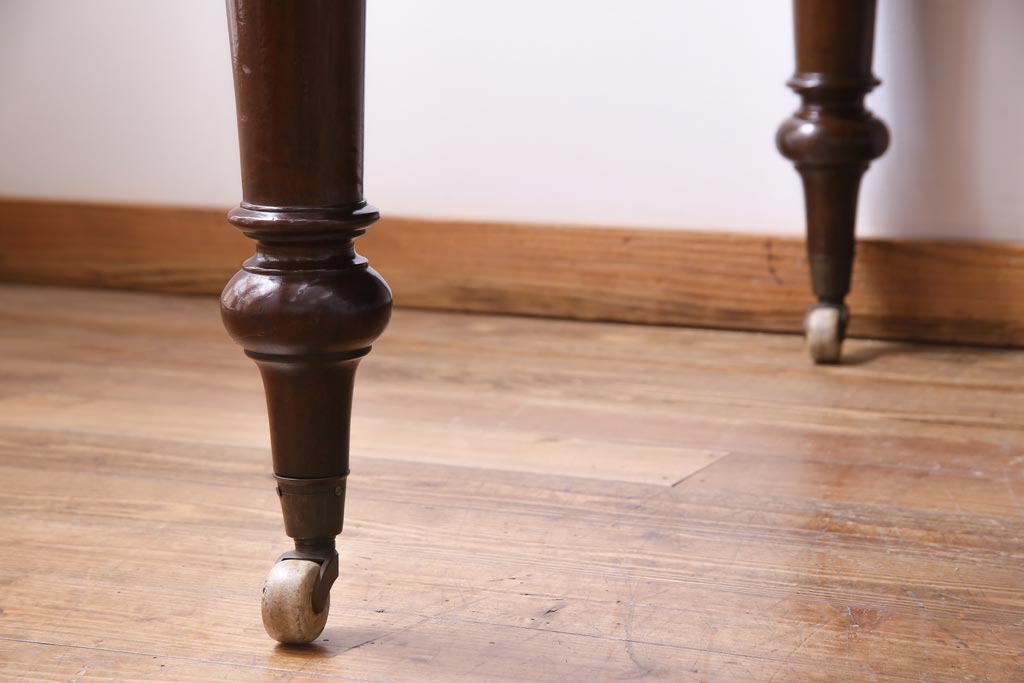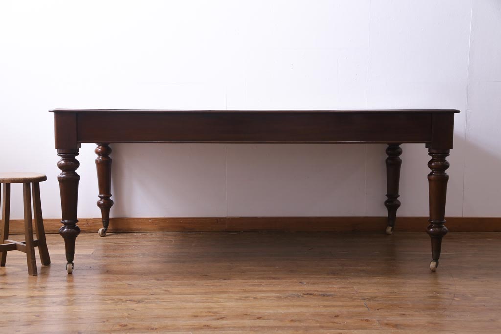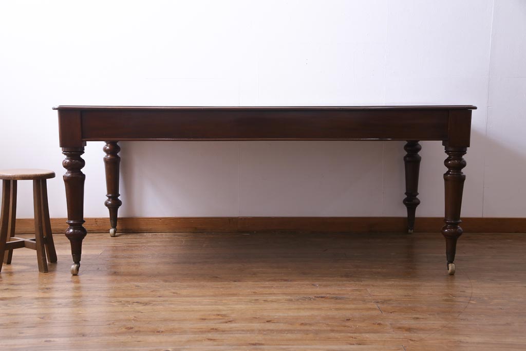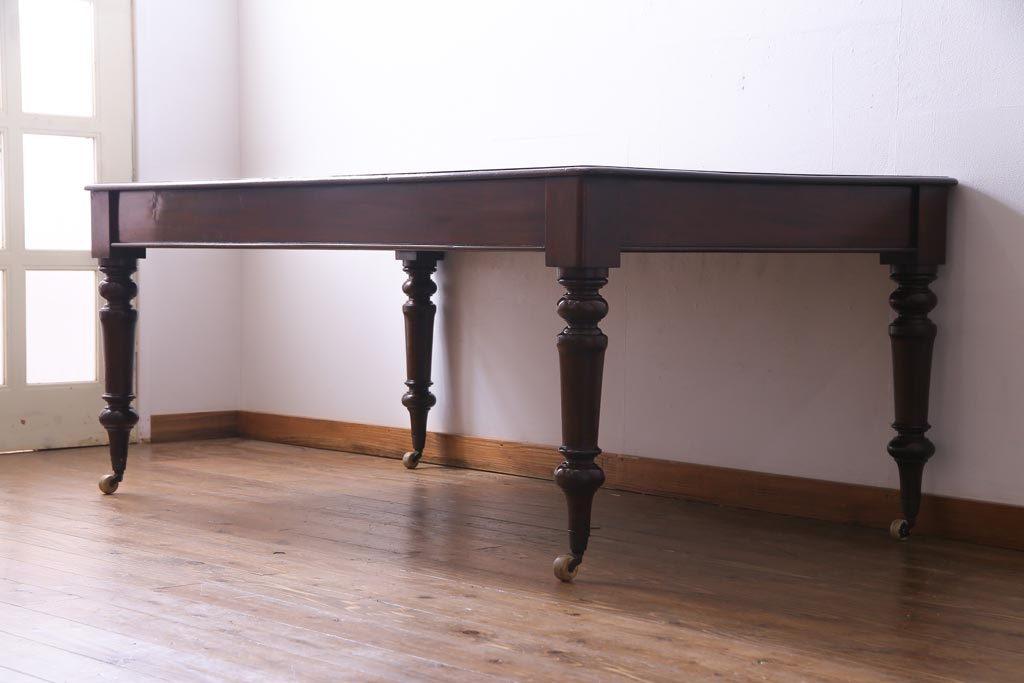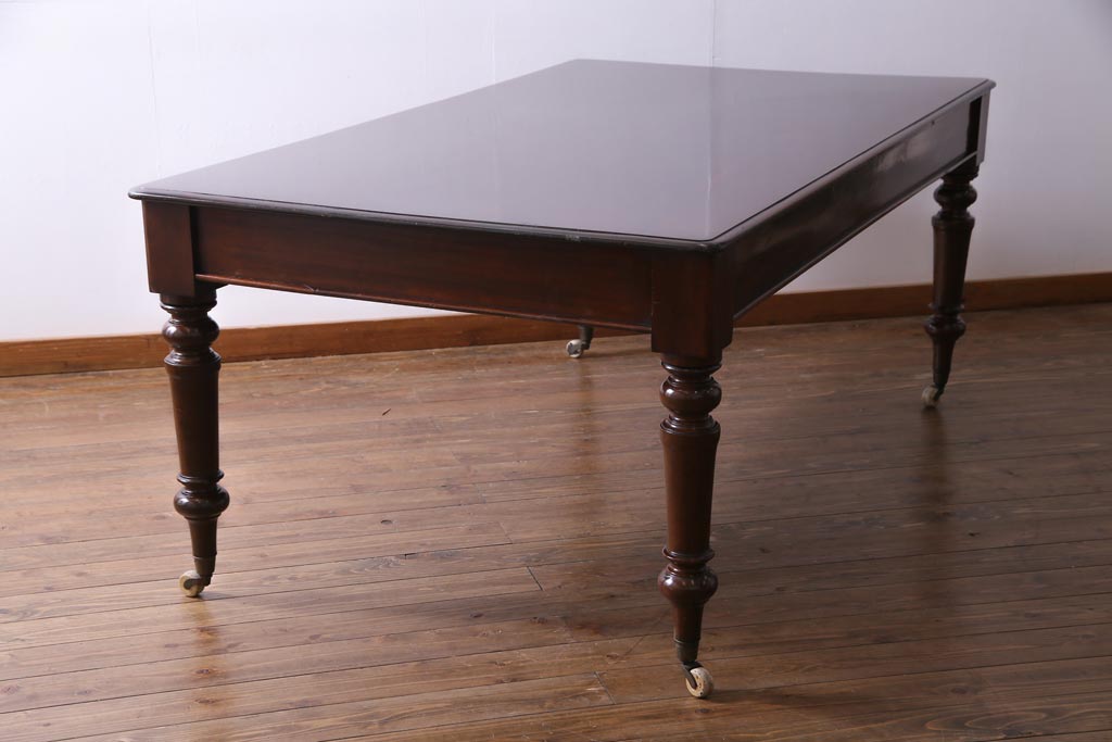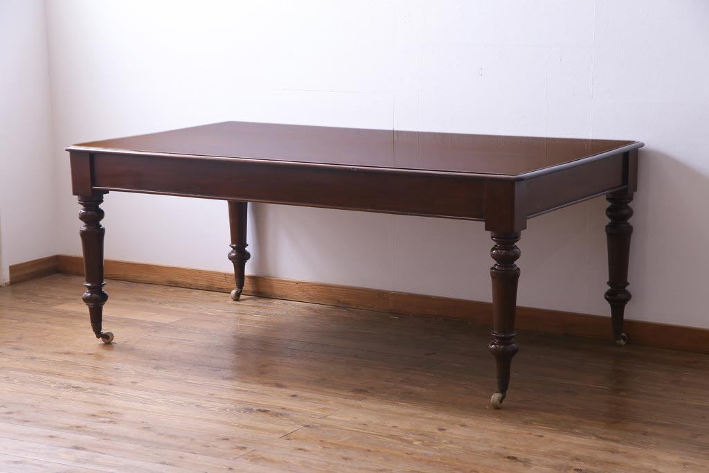 アンティーク家具 フランスアンティーク マホガニー無垢材 キャスター付き 洗練された高級感が漂う6人掛けダイニングテーブル