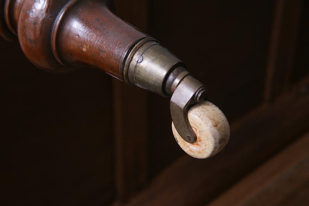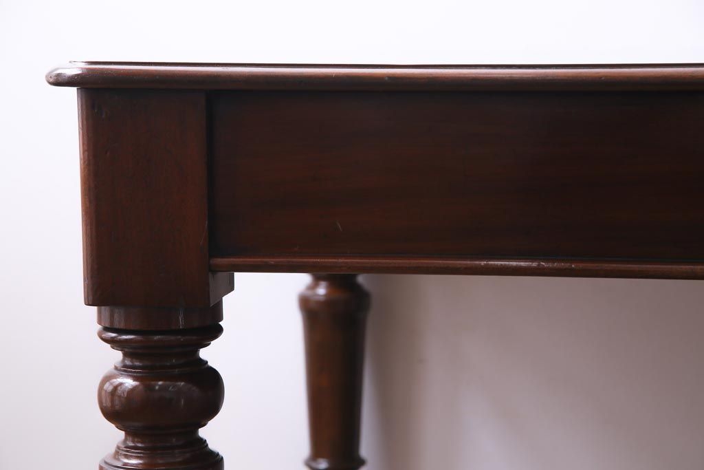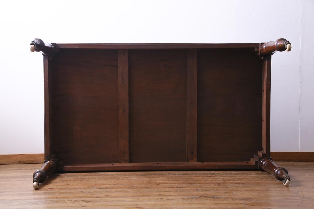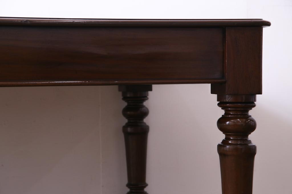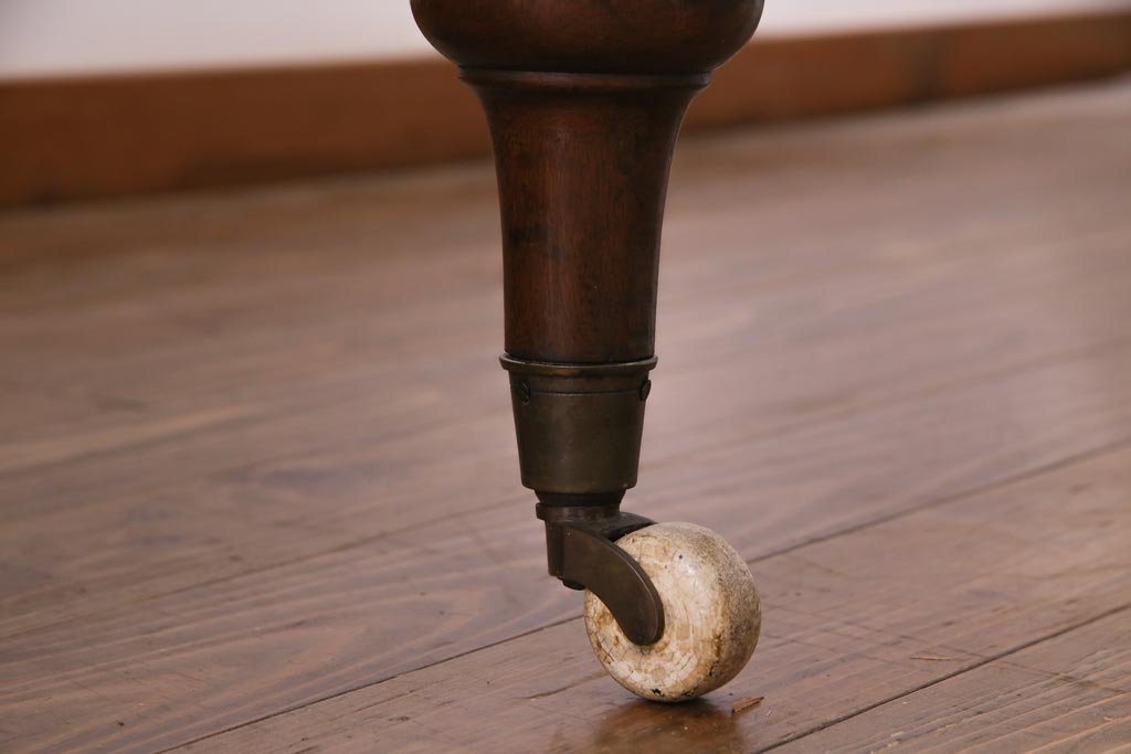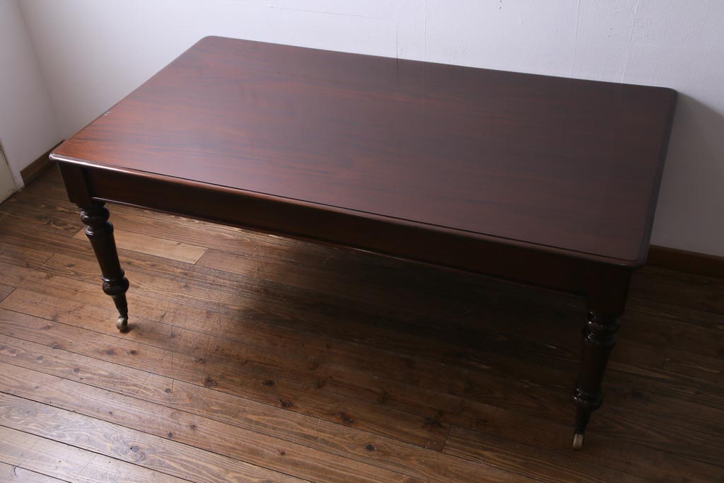 アンティーク家具 フランスアンティーク マホガニー無垢材 キャスター付き 洗練された高級感が漂う6人掛けダイニングテーブル