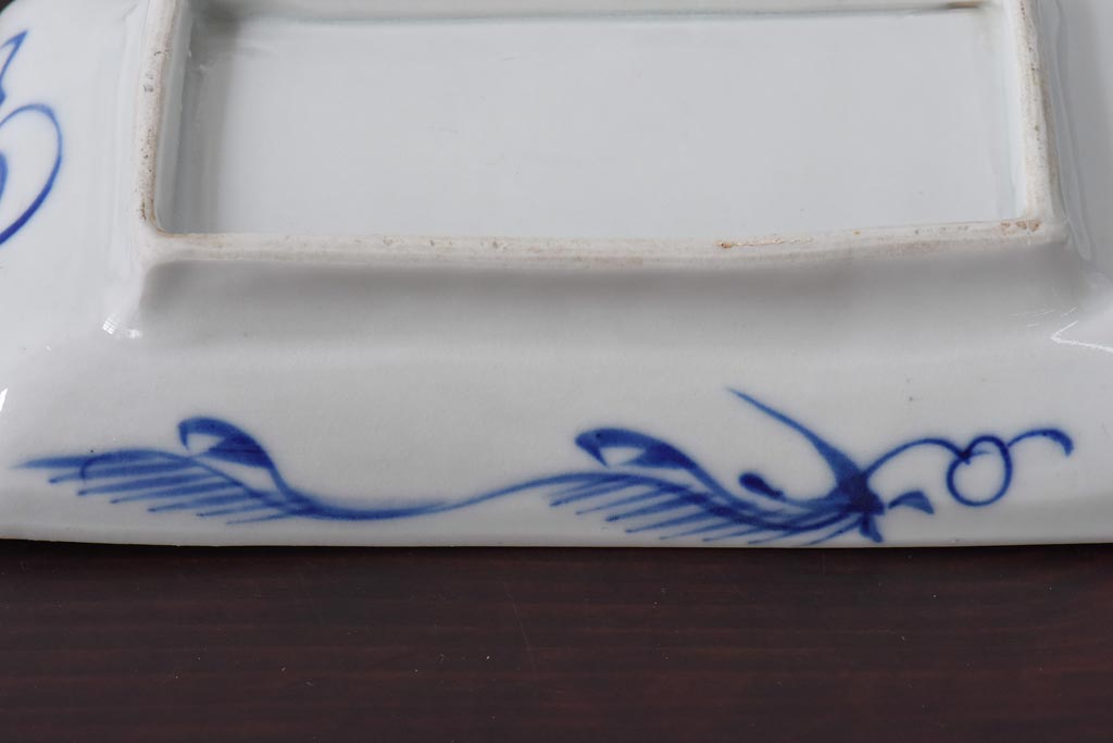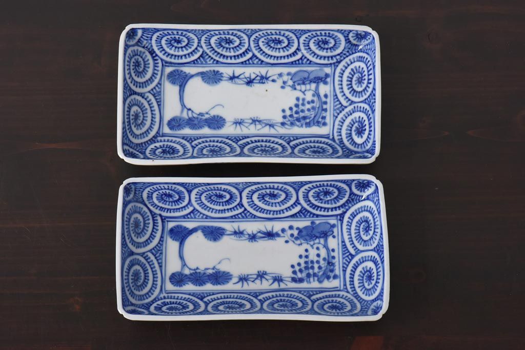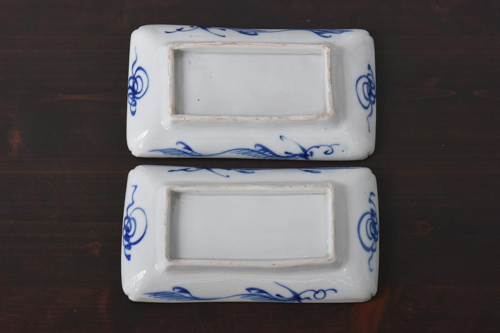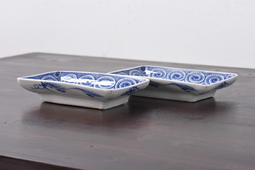 ラフジュ工房> 和食器・茶道具> 皿 > 古民具・骨董 染付 蛸唐草紋 はっきりとした藍が美しい角皿2枚セット(長皿)(3)