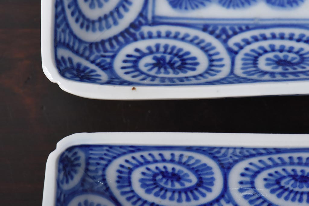 古民具・骨董 染付 蛸唐草紋 はっきりとした藍が美しい角皿2枚セット(長皿)(3)