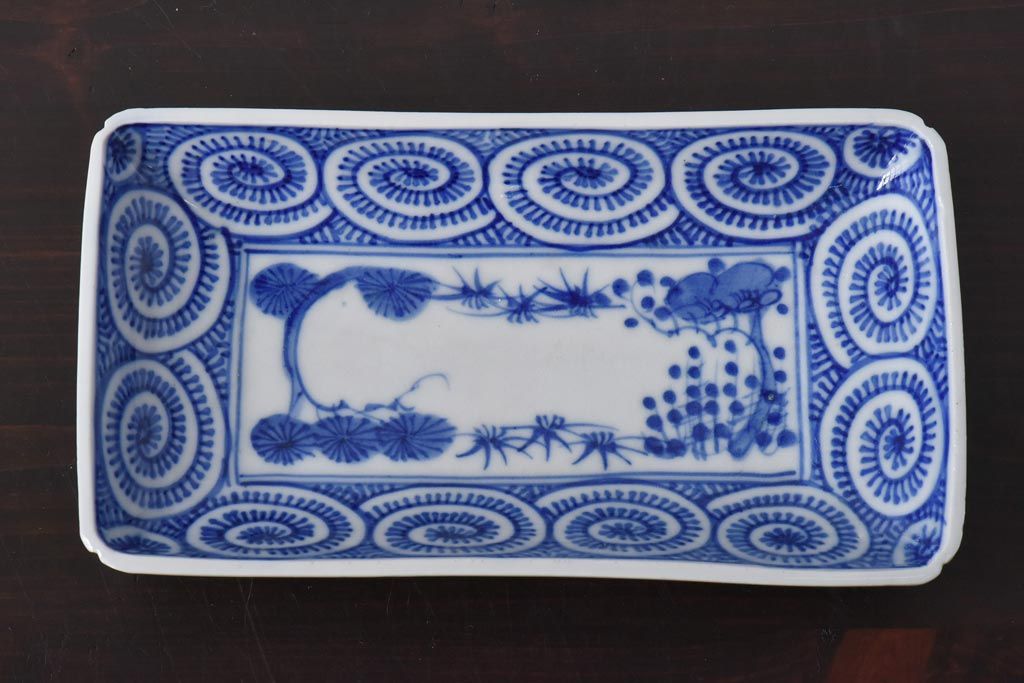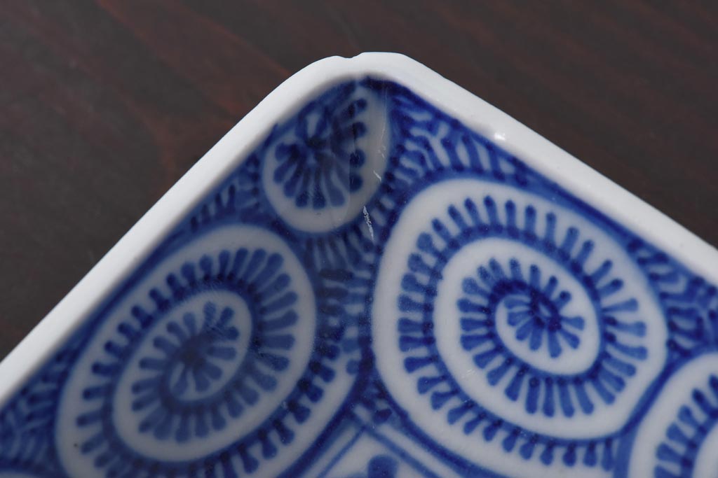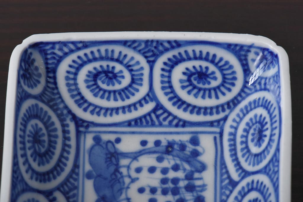 ラフジュ工房> 和食器・茶道具 > 古民具・骨董 染付 蛸唐草紋 はっきりとした藍が美しい角皿2枚セット(長皿)(3)