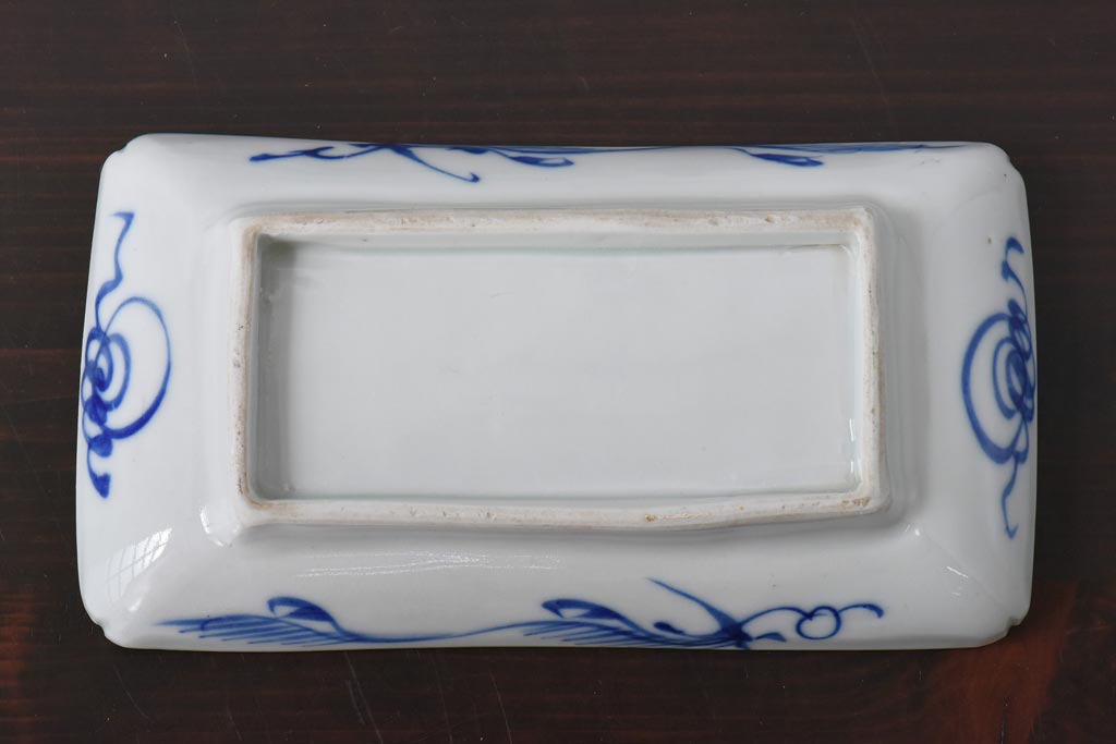 ラフジュ工房> 骨董・美術品 > 古民具・骨董 染付 蛸唐草紋 はっきりとした藍が美しい角皿2枚セット(長皿)(3)