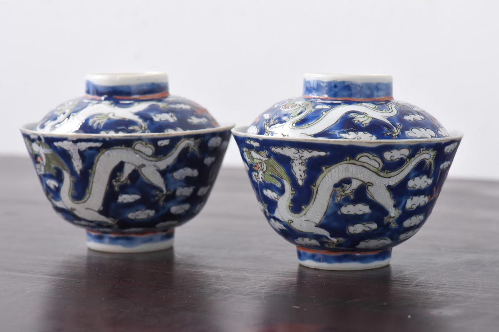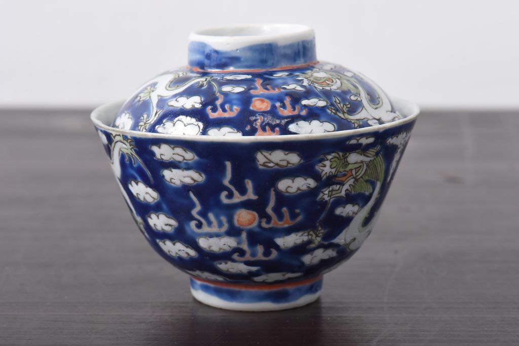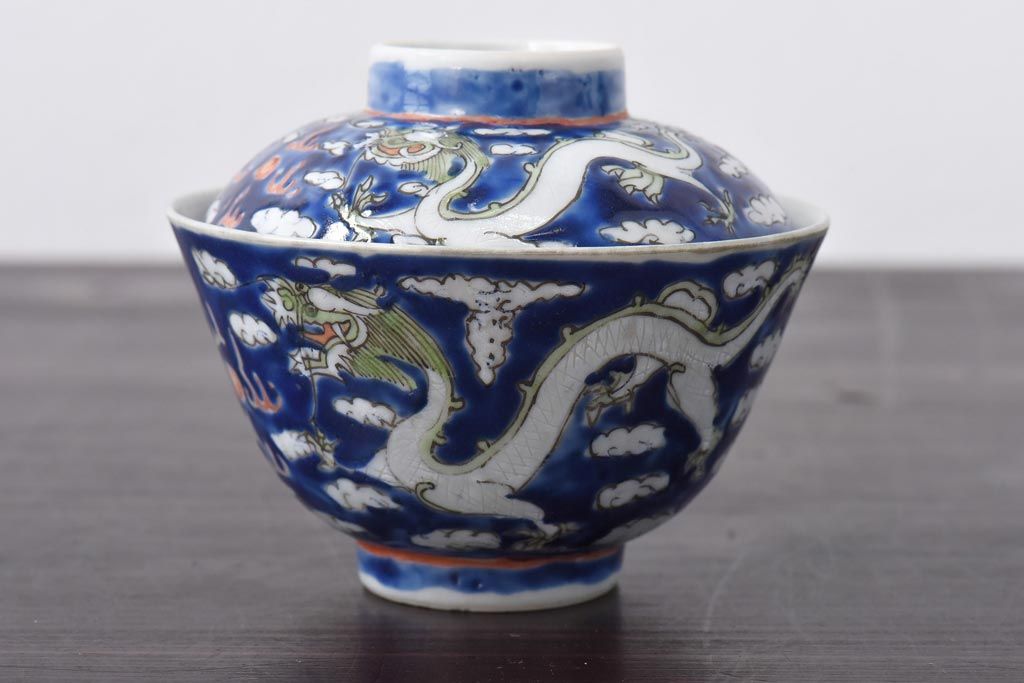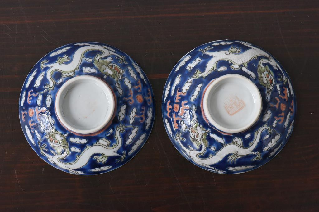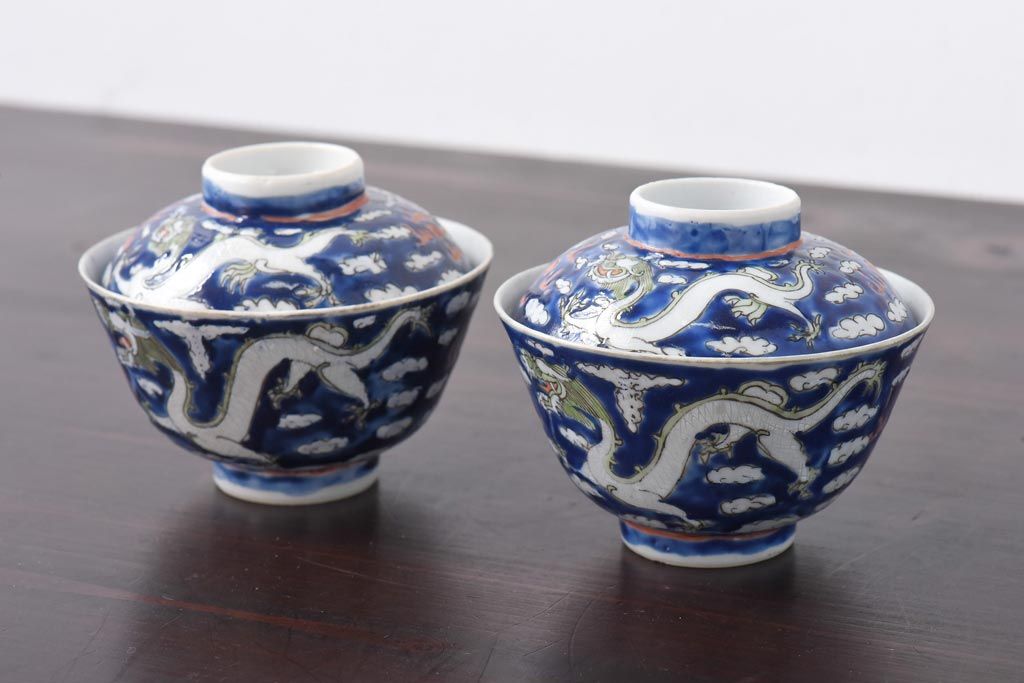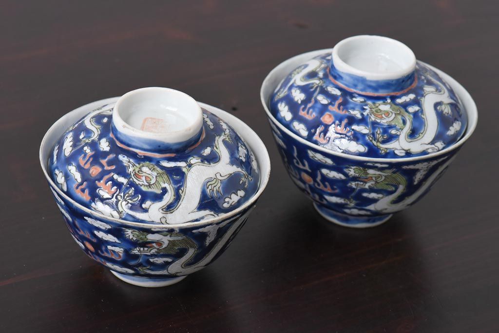 ラフジュ工房> 骨董・美術品 > 古民具・骨董 龍の図 色絵 独特な絵柄の蓋付き茶碗2客セット(和食器)(3)