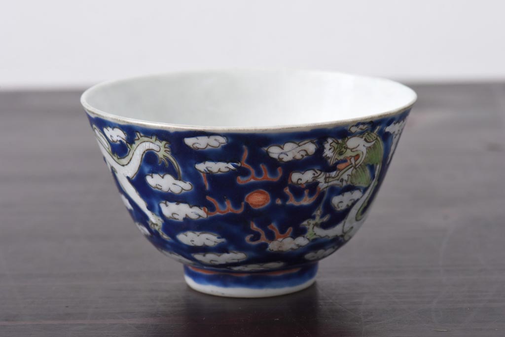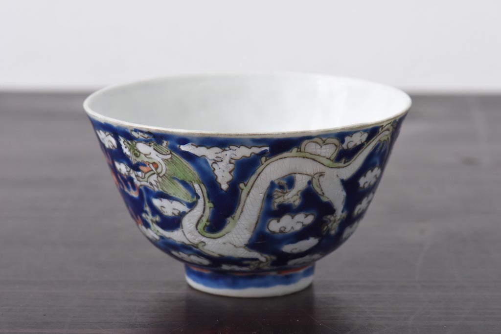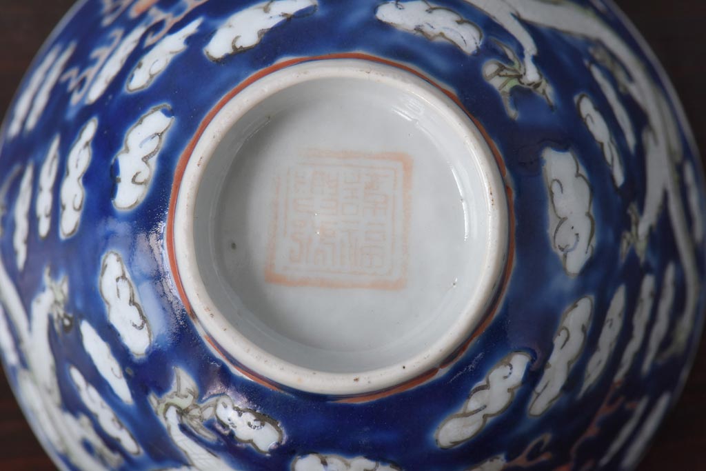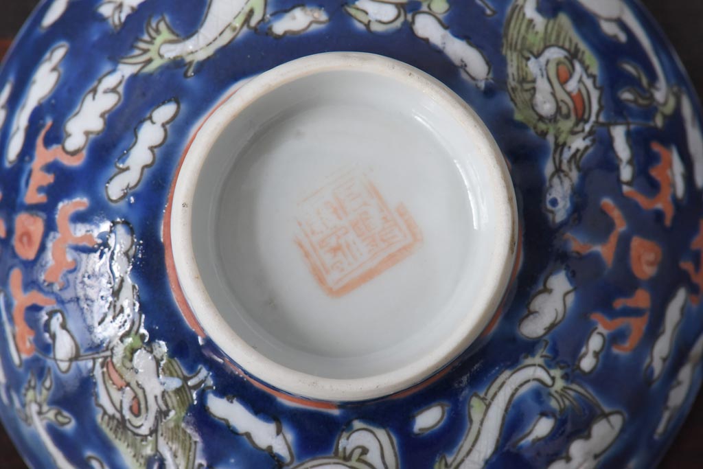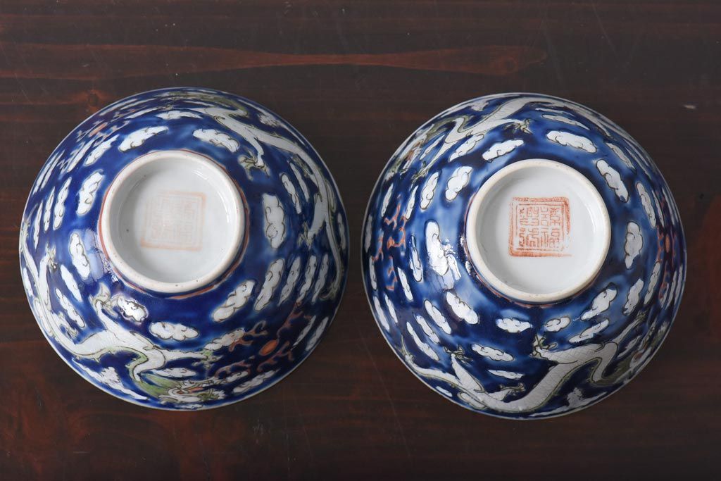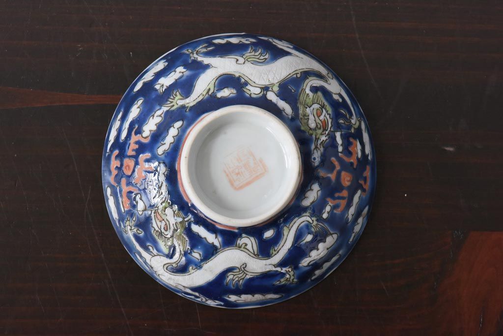 ラフジュ工房> 骨董・美術品 > 古民具・骨董 龍の図 色絵 独特な絵柄の蓋付き茶碗2客セット(和食器)(3)