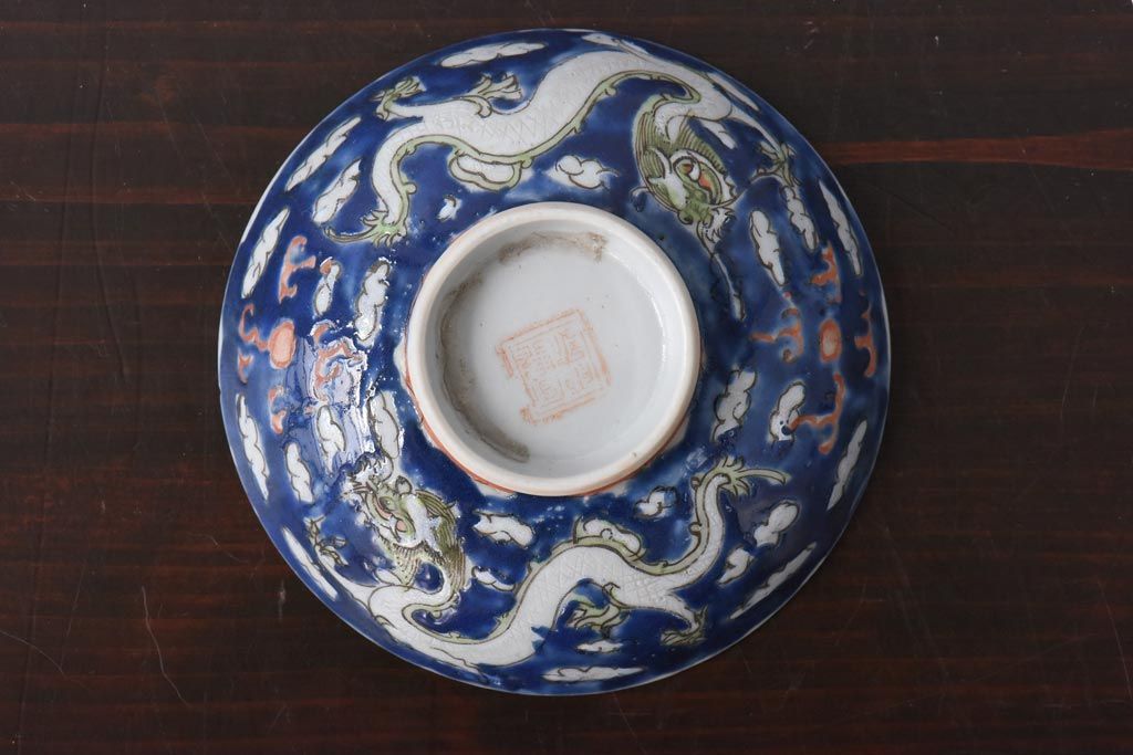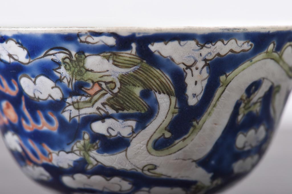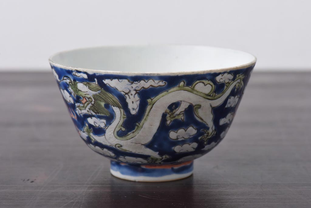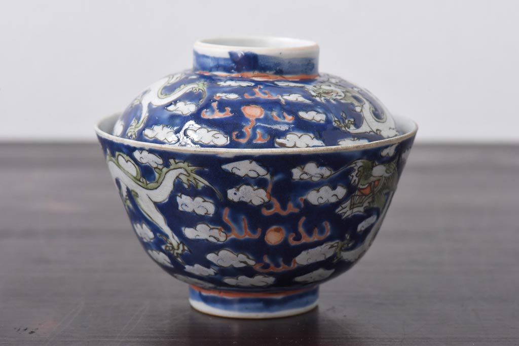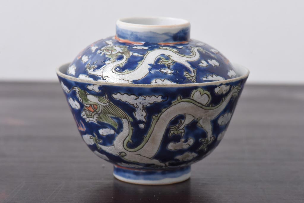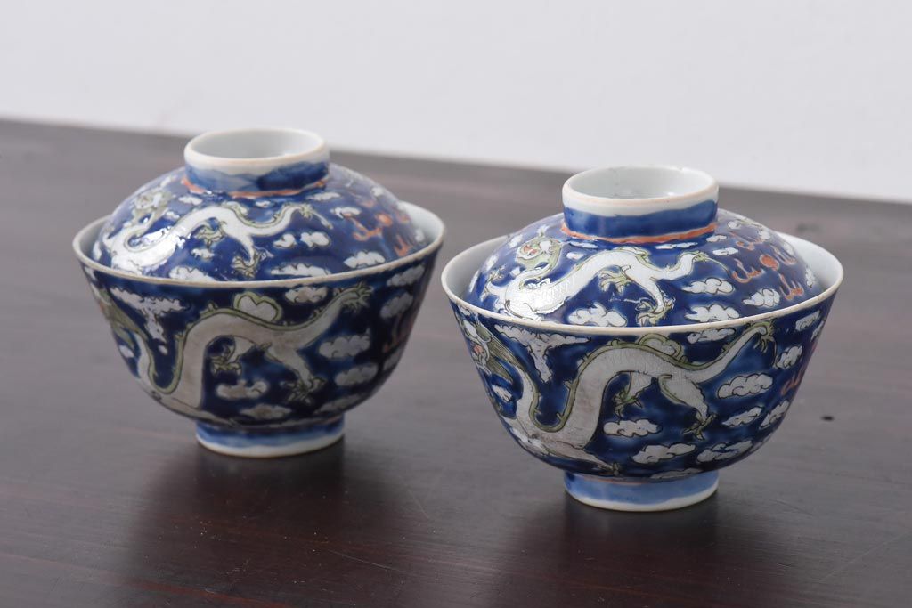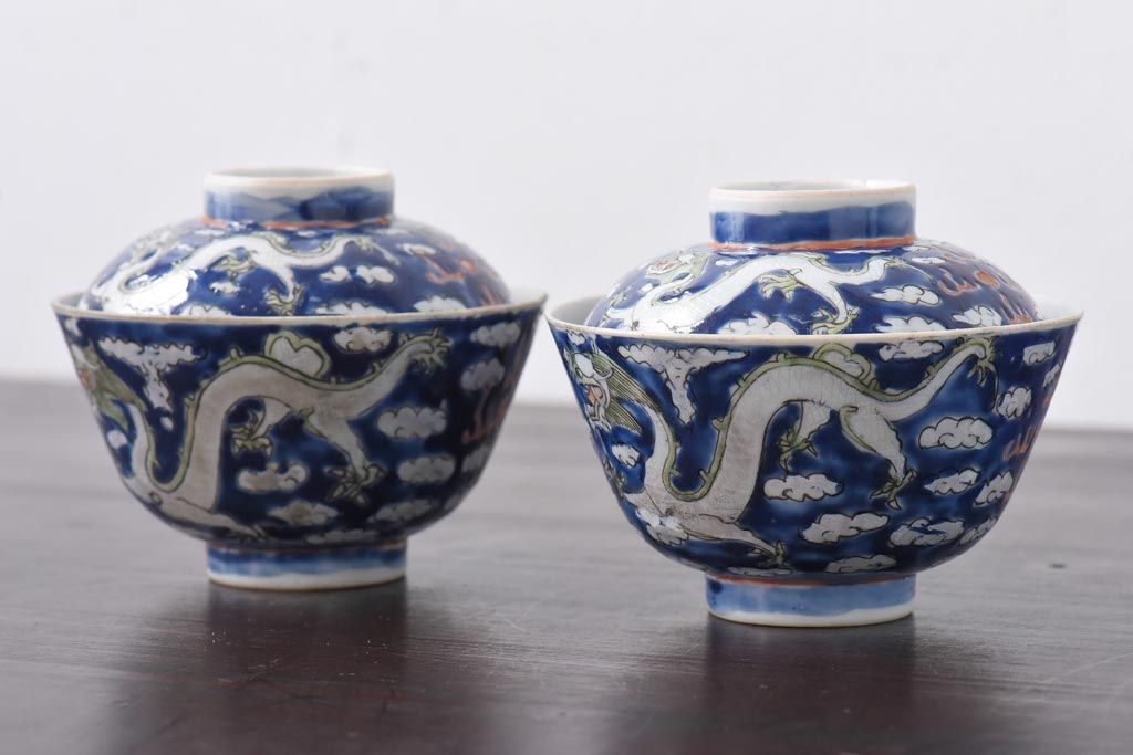 ラフジュ工房> 骨董・美術品 > 古民具・骨董 龍の図 色絵 独特な絵柄の蓋付き茶碗2客セット(和食器)