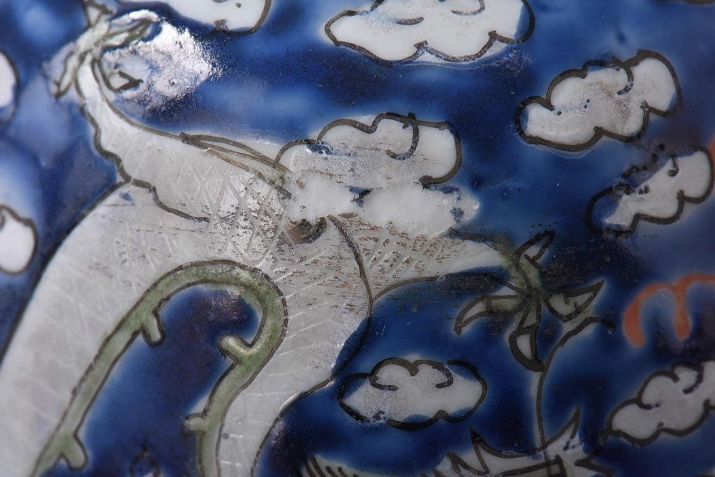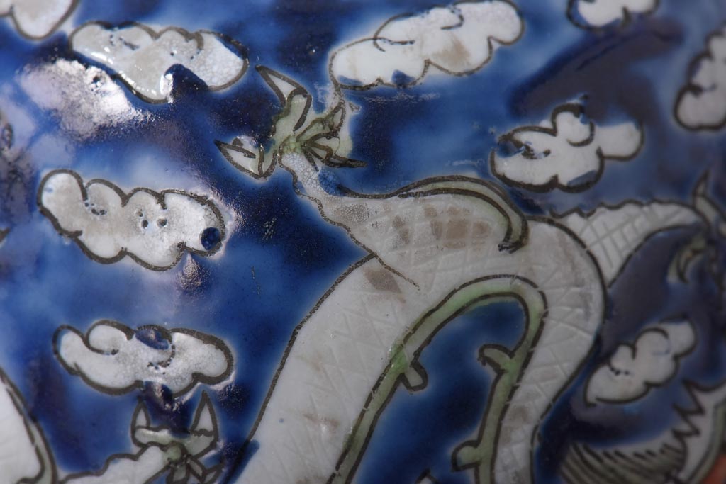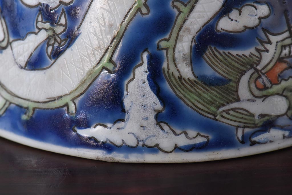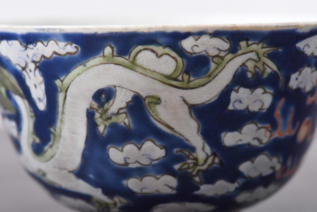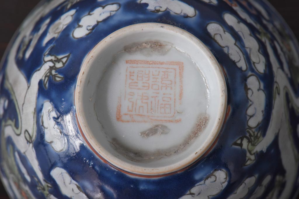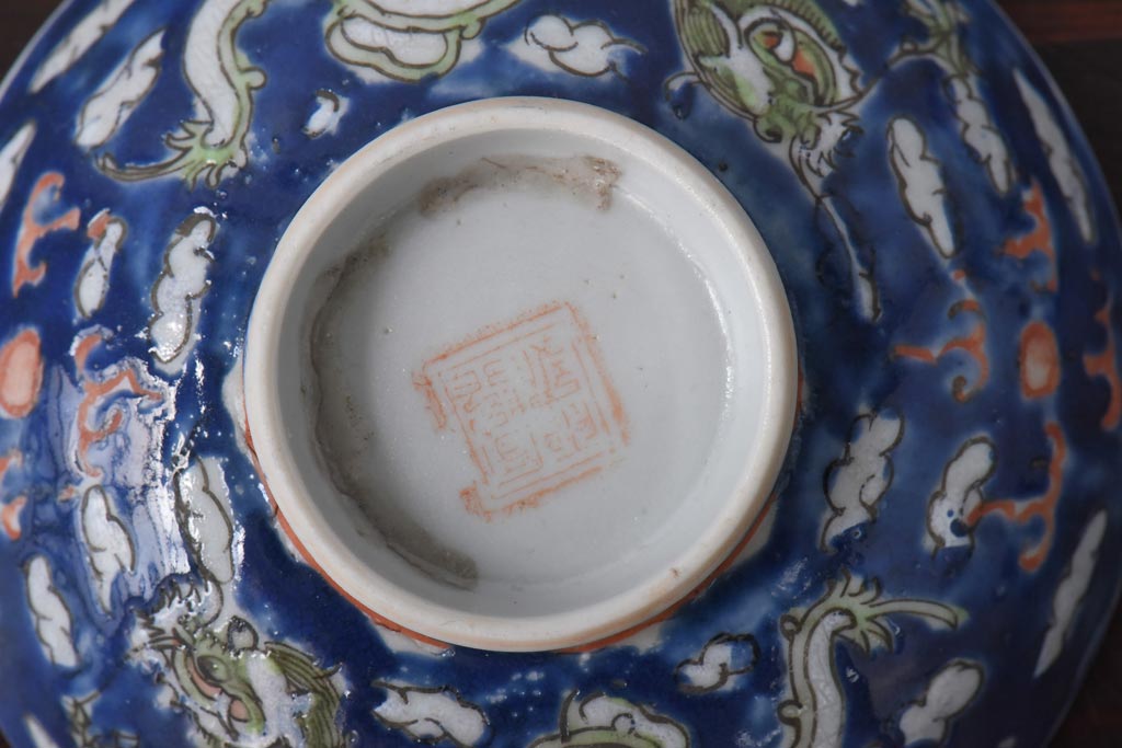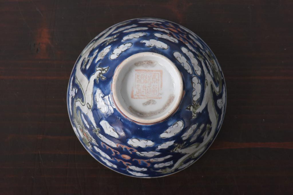 ラフジュ工房> 骨董・美術品 > 古民具・骨董 龍の図 色絵 独特な絵柄の蓋付き茶碗2客セット(和食器)