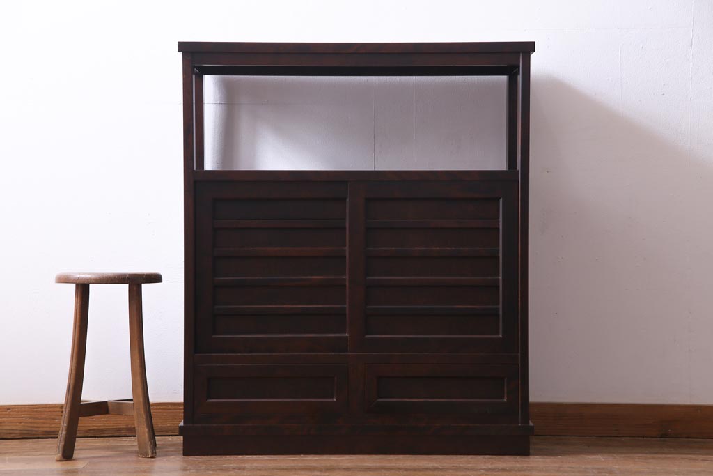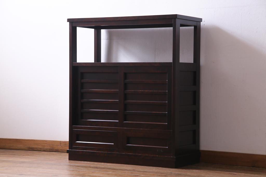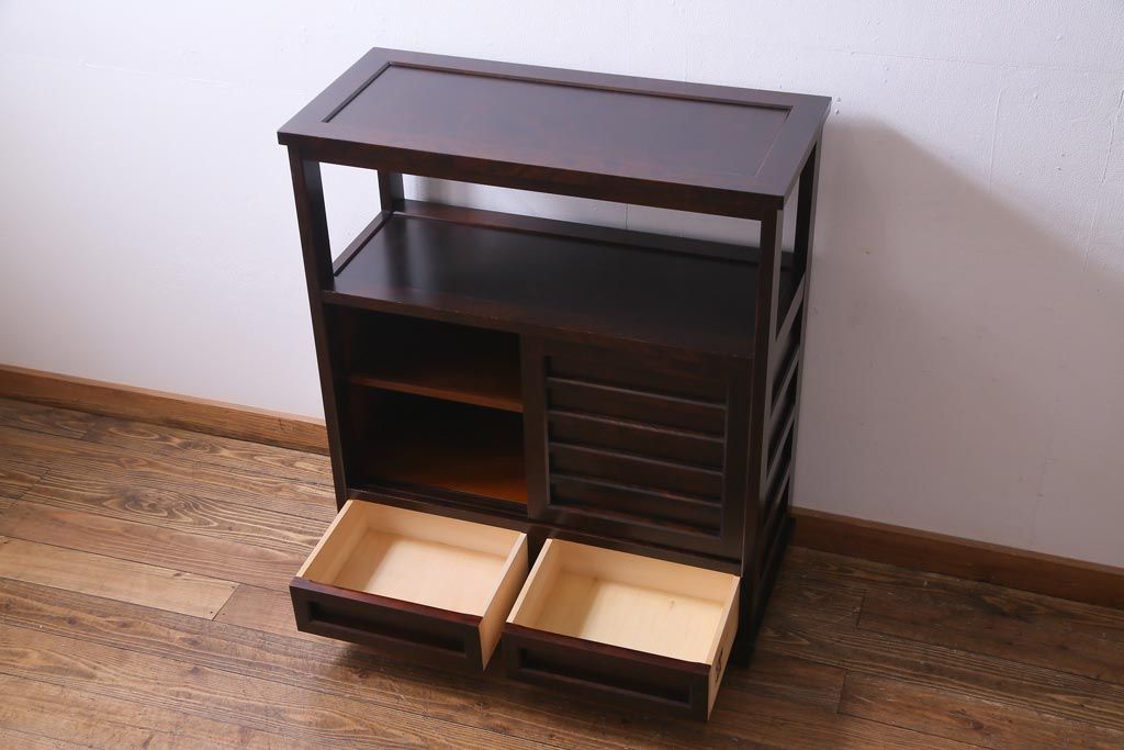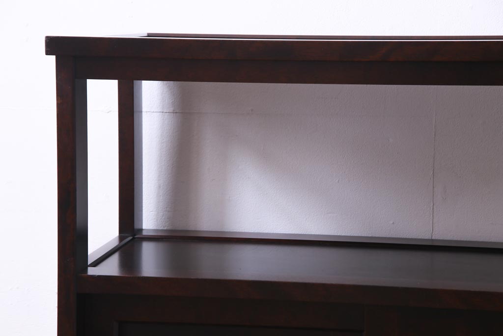 中古 北海道民芸家具 HM105 モダンなデザインの茶タンス(茶棚、飾り棚)(定価約23万円)