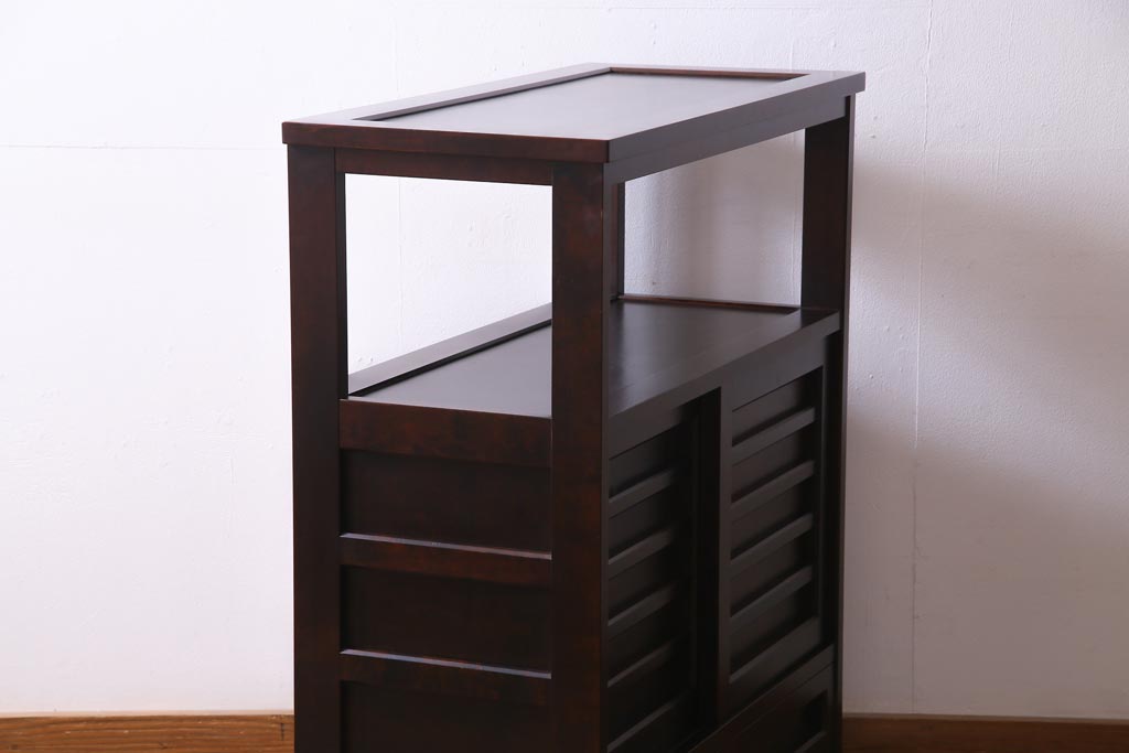 中古 北海道民芸家具 HM105 モダンなデザインの茶タンス(茶棚、飾り棚)(定価約23万円)です。