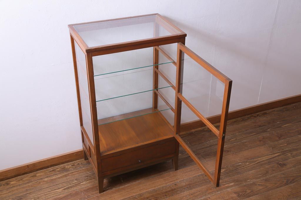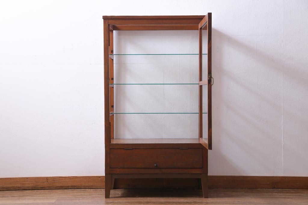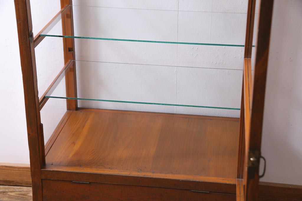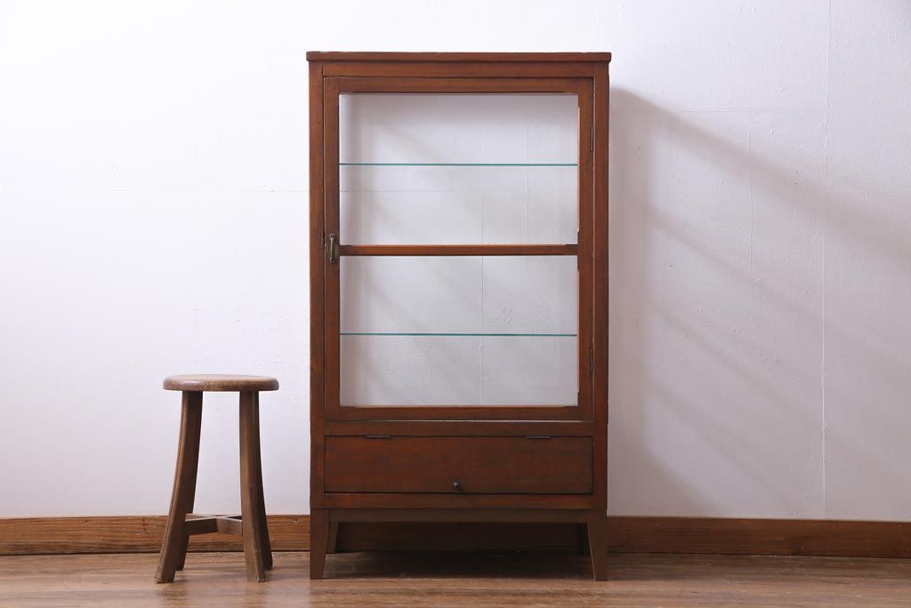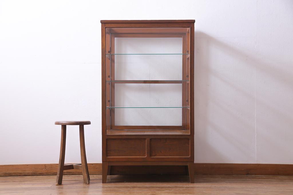 ラフジュ工房> 店舗什器 > レトロ家具 和製アンティーク パタパタ扉付き! レトロで可愛らしい脚付きガラスケース(ショーケース)