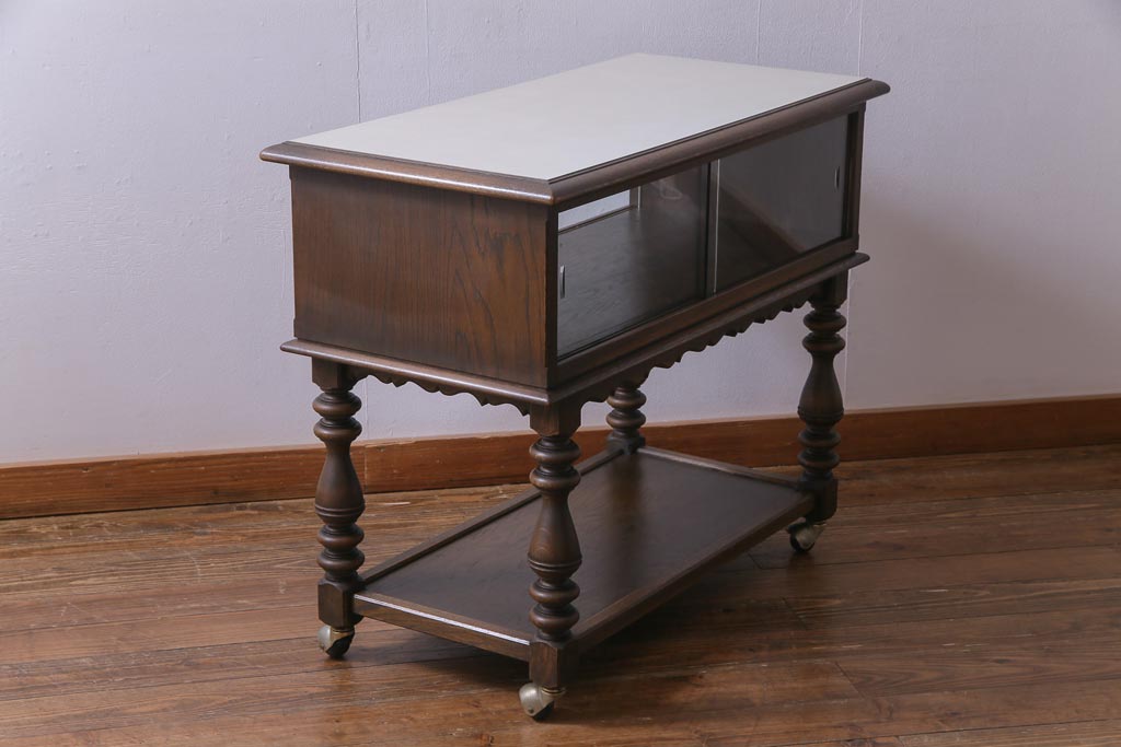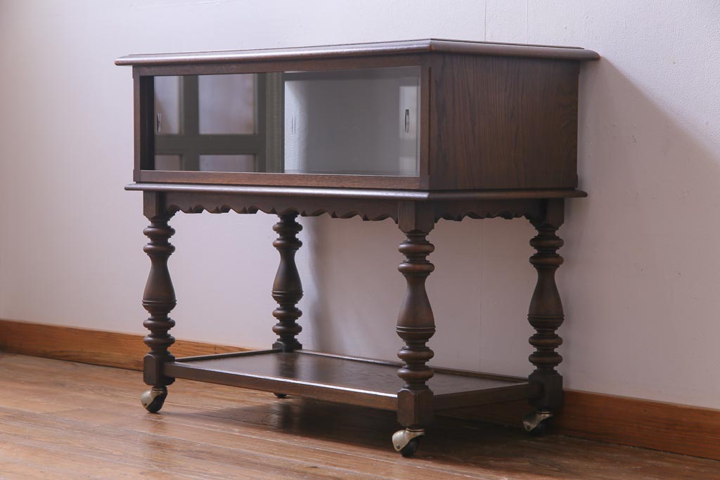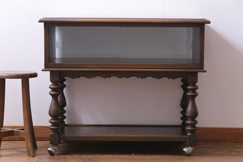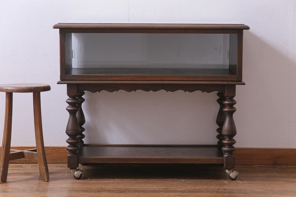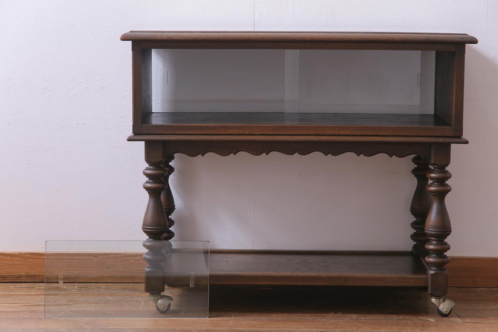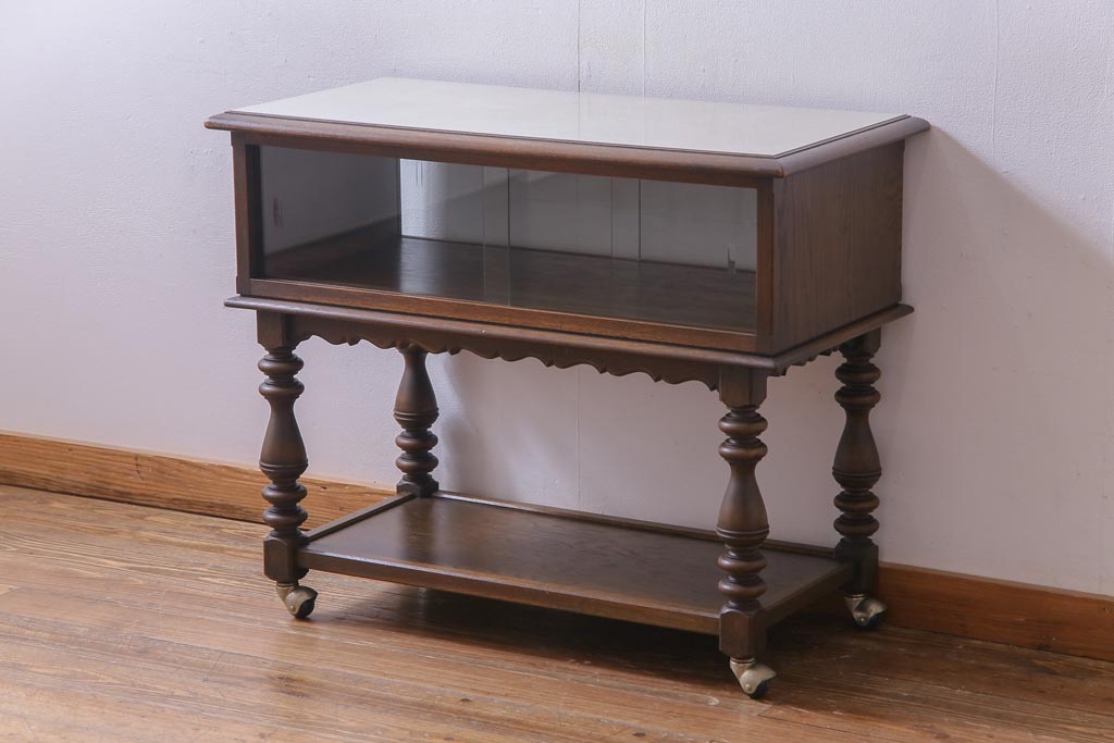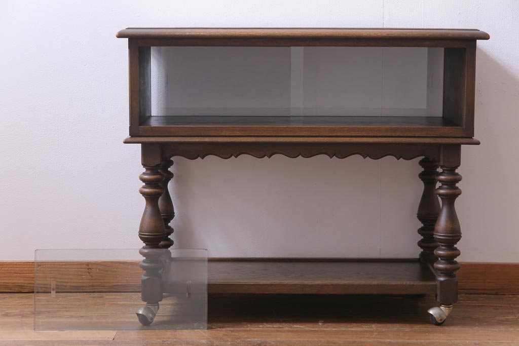中古 神戸洋家具 永田良介商店 ガラスケースを兼ねたキャスター付きサイドテーブル(ディスプレイケース、サイドキャビネット)