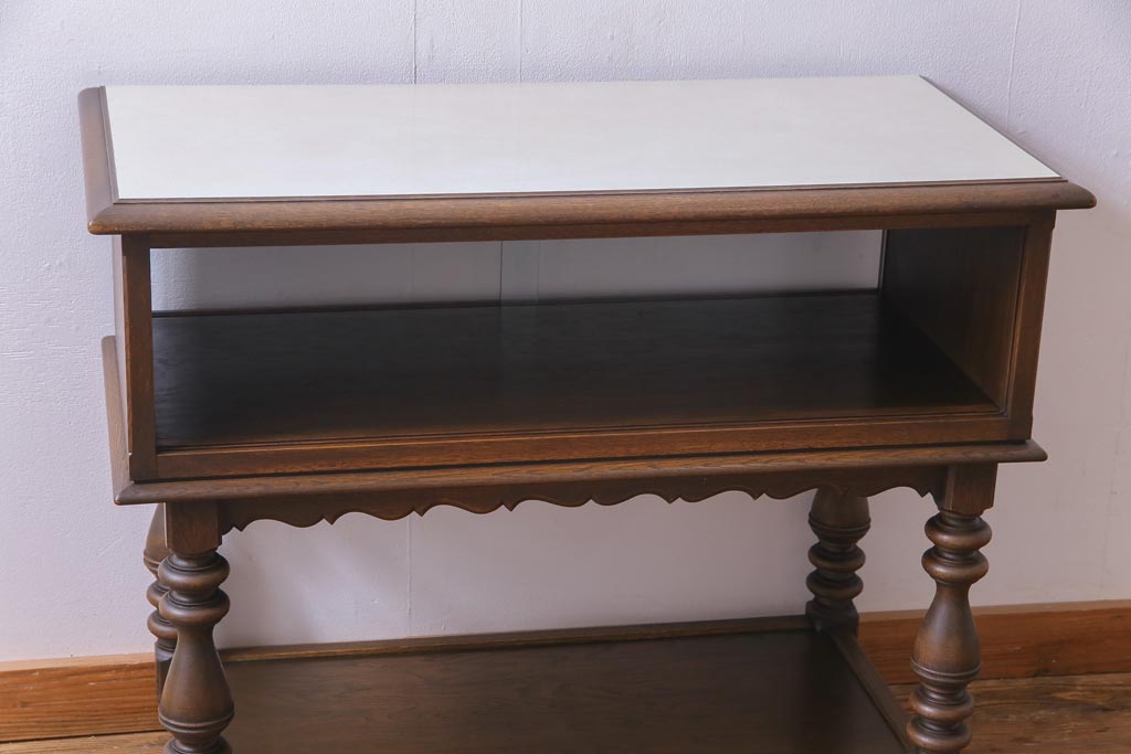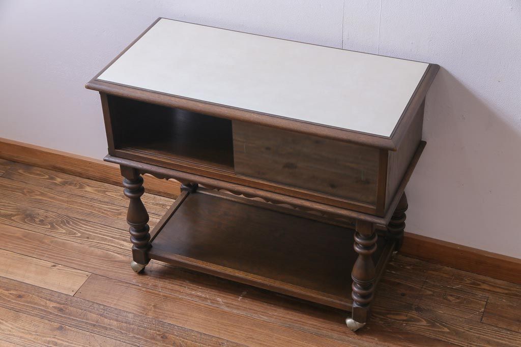 テーブル> サイドテーブル > 中古 神戸洋家具 永田良介商店 ガラスケースを兼ねたキャスター付きサイドテーブル(ディスプレイケース、サイドキャビネット)