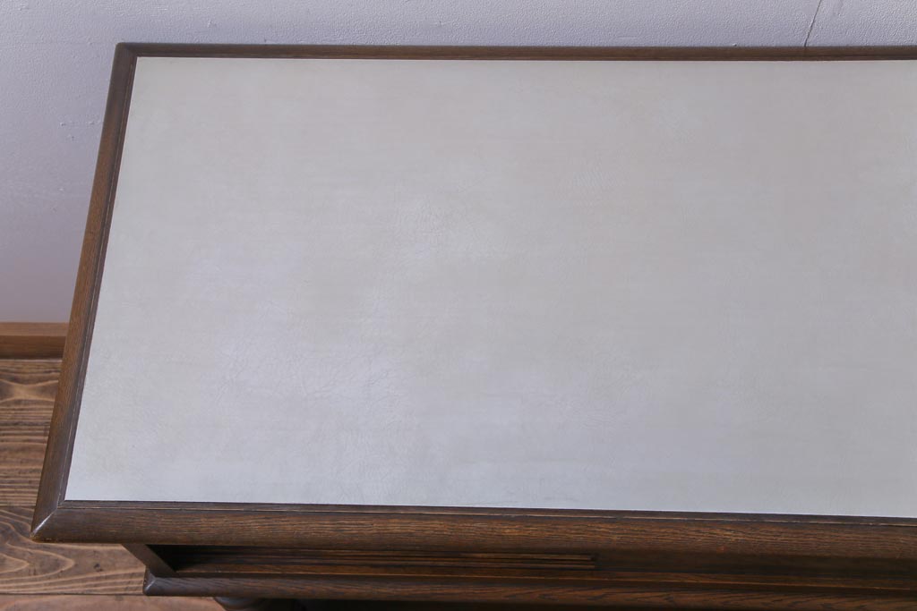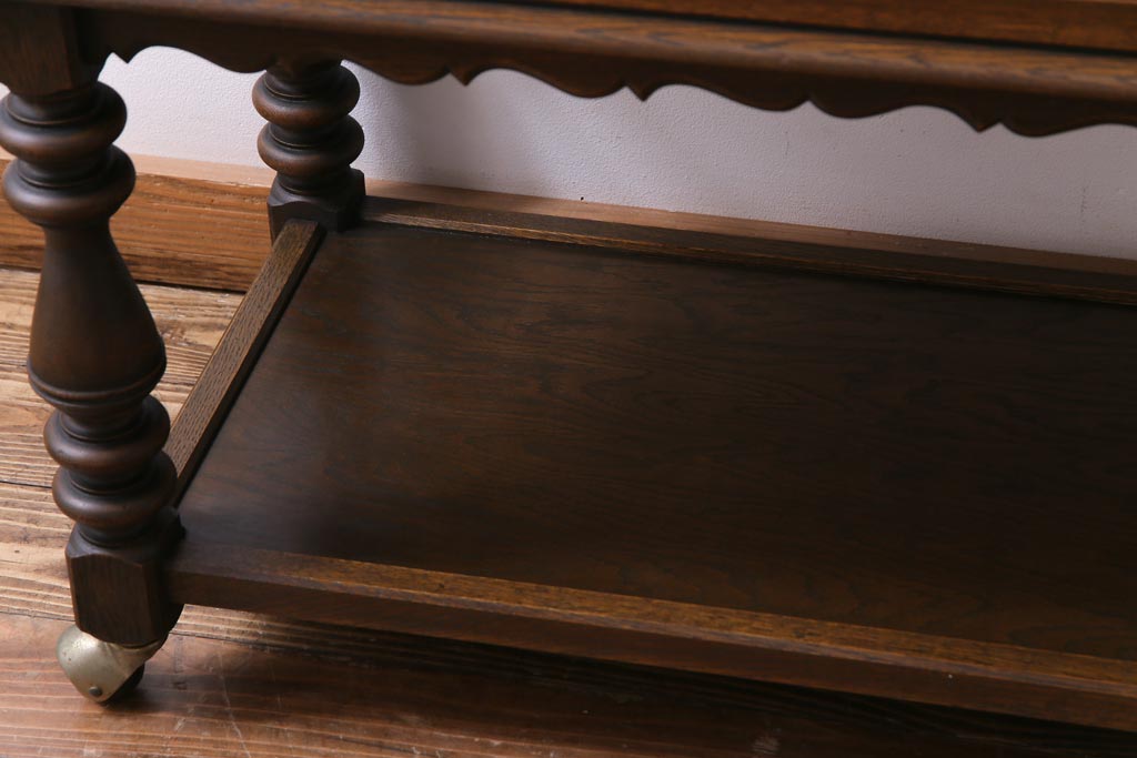 中古 神戸洋家具 永田良介商店 ガラスケースを兼ねたキャスター付きサイドテーブル(ディスプレイケース、サイドキャビネット)です。