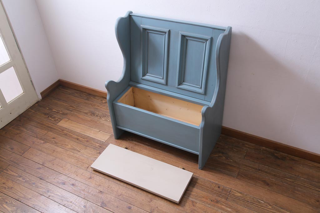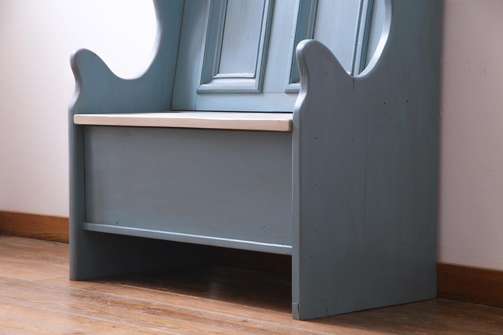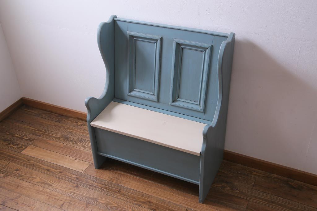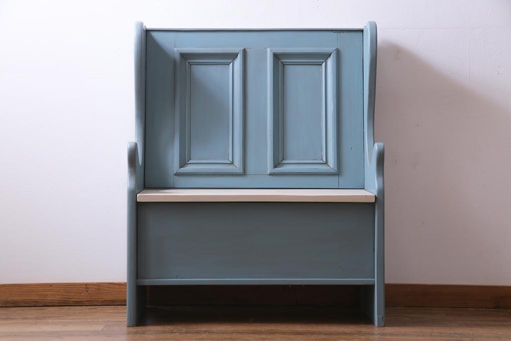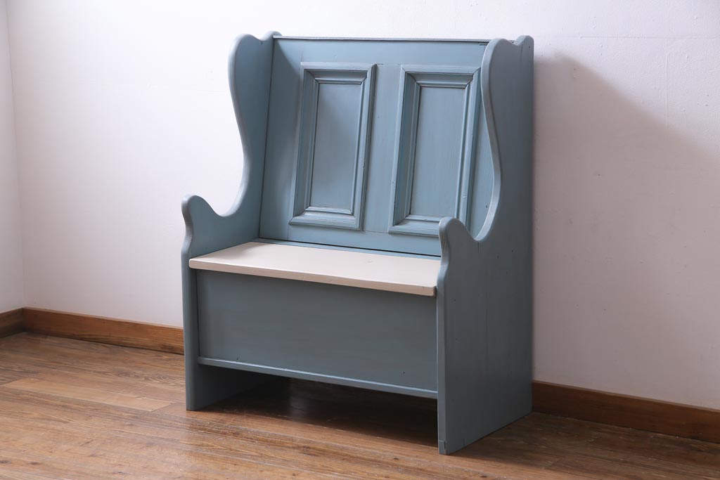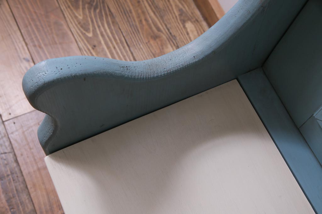 アンティーク家具 フランスアンティーク パイン材 爽やかなペイントカラーが可愛らしい木製ベンチ(チャーチベンチ)