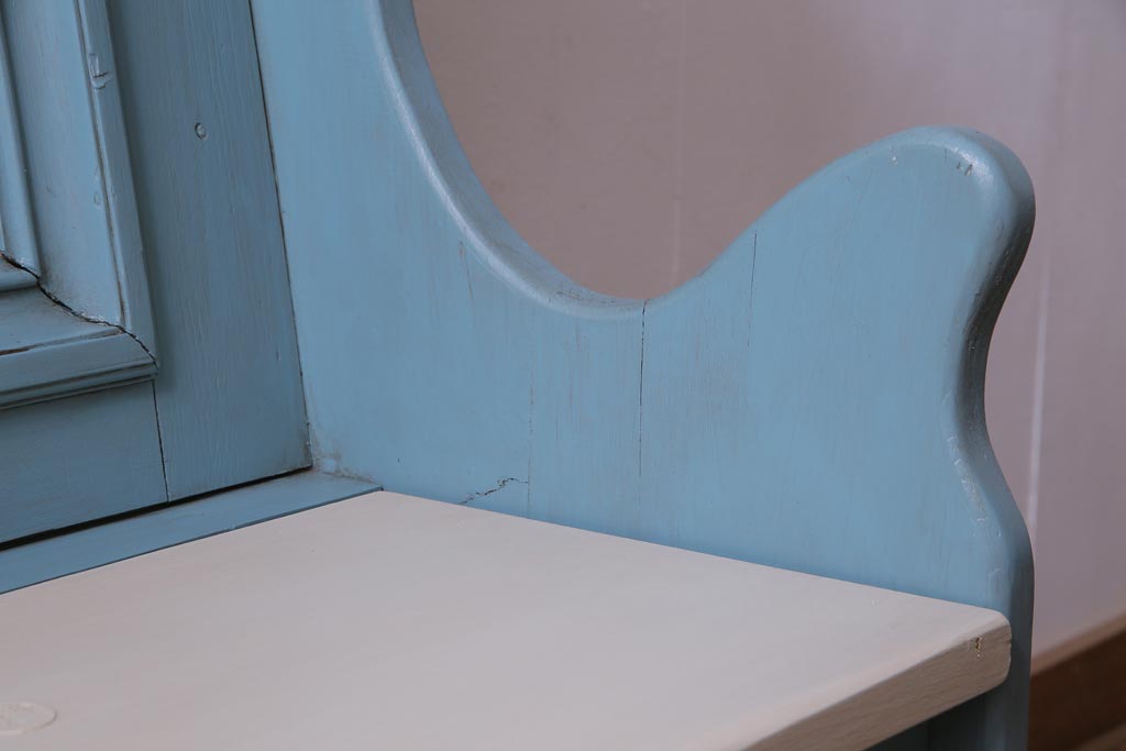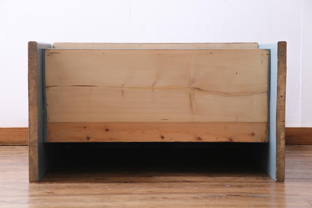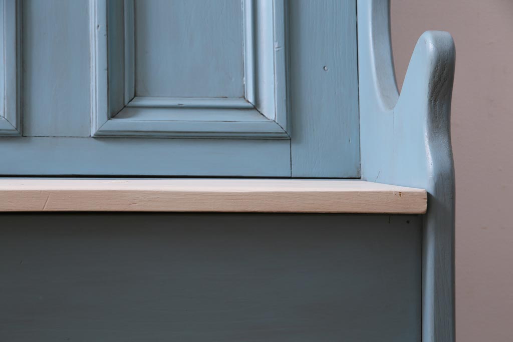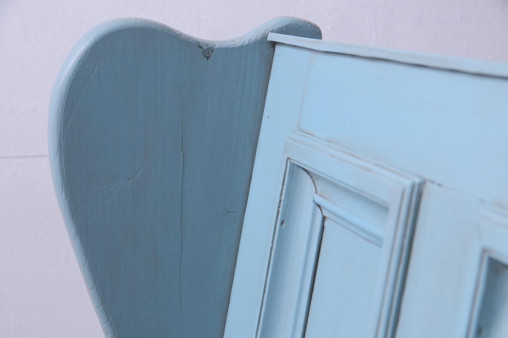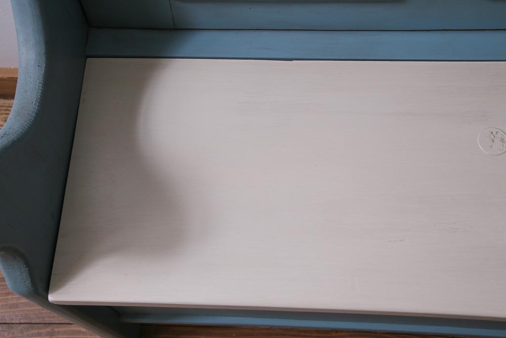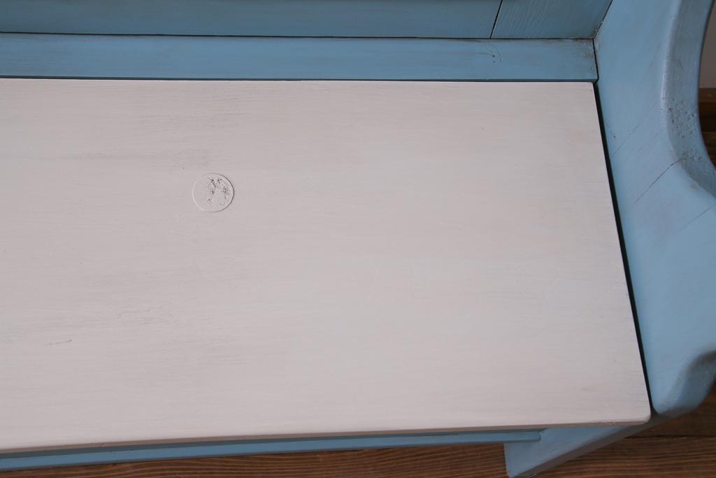 アンティーク家具 フランスアンティーク パイン材 爽やかなペイントカラーが可愛らしい木製ベンチ(チャーチベンチ)