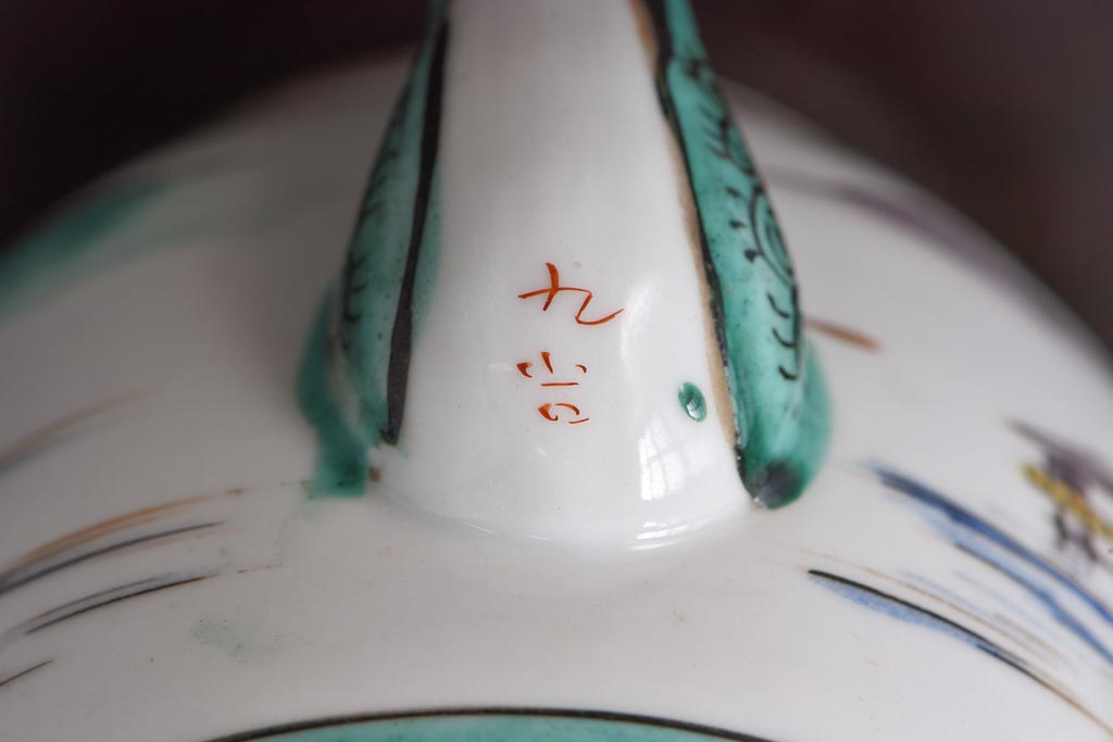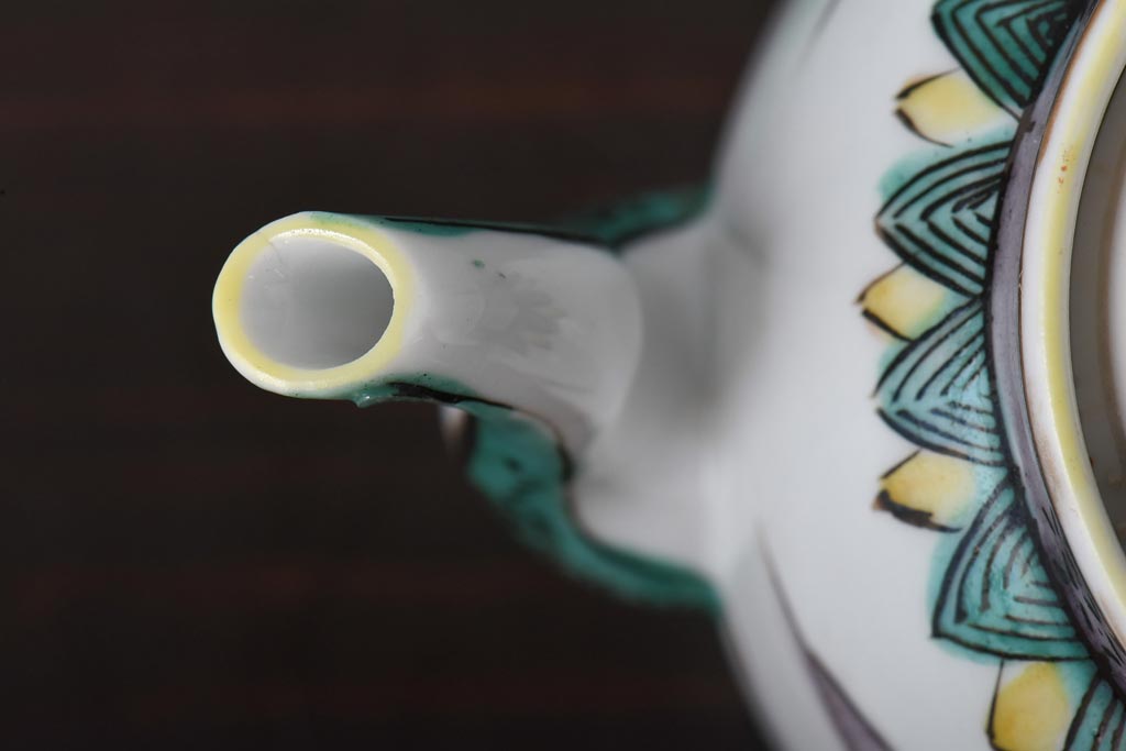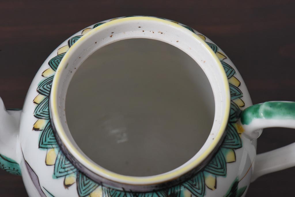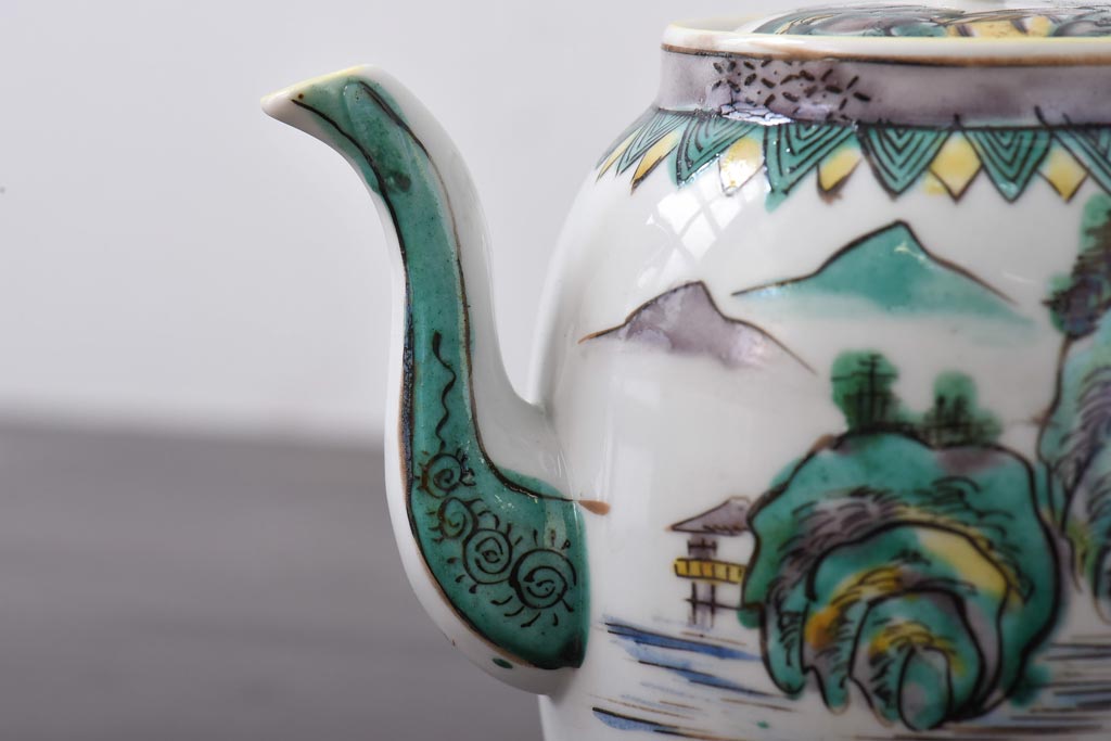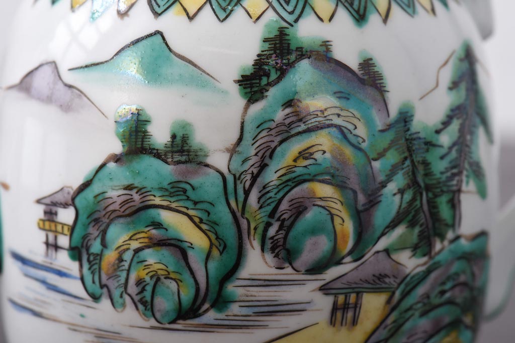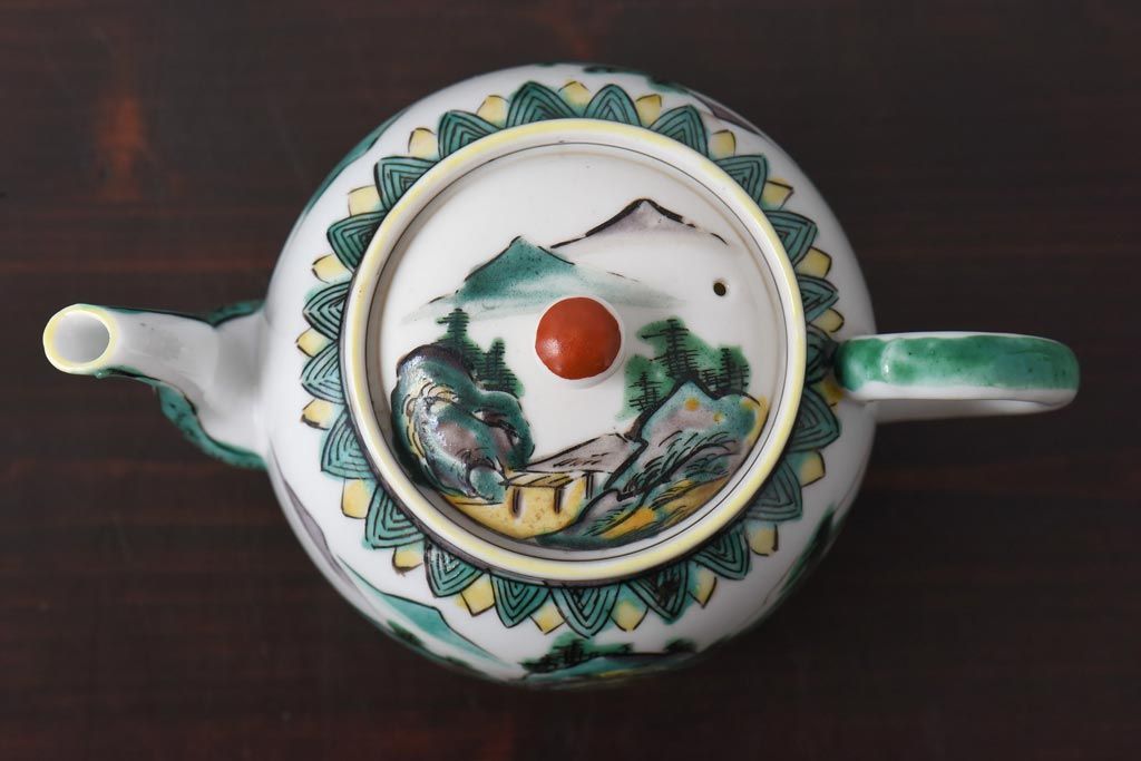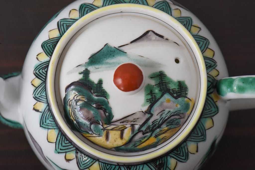 和製アンティーク 明治期 山水画 鮮やかな色彩が美しい九谷焼急須(水注、ポット)