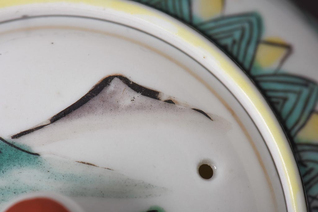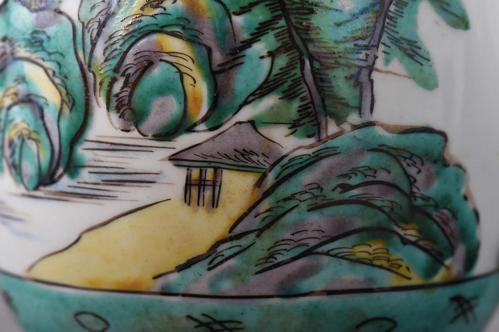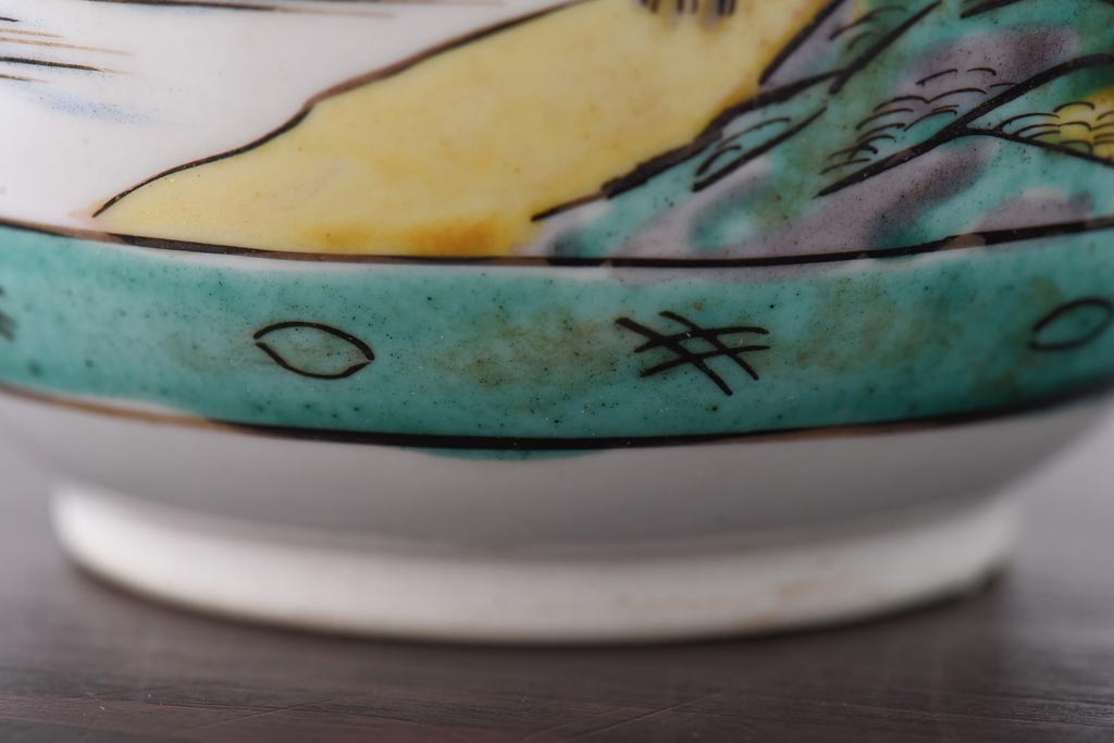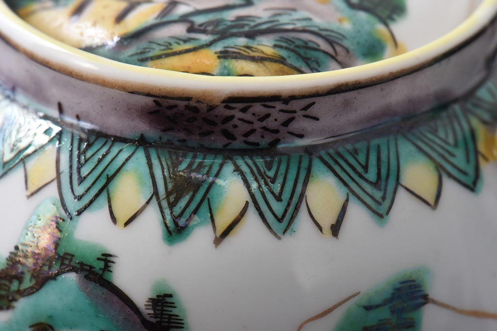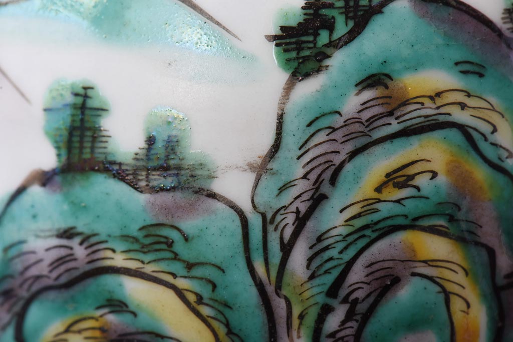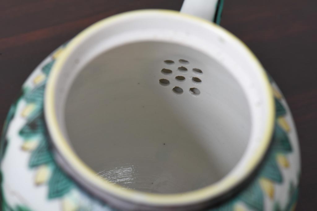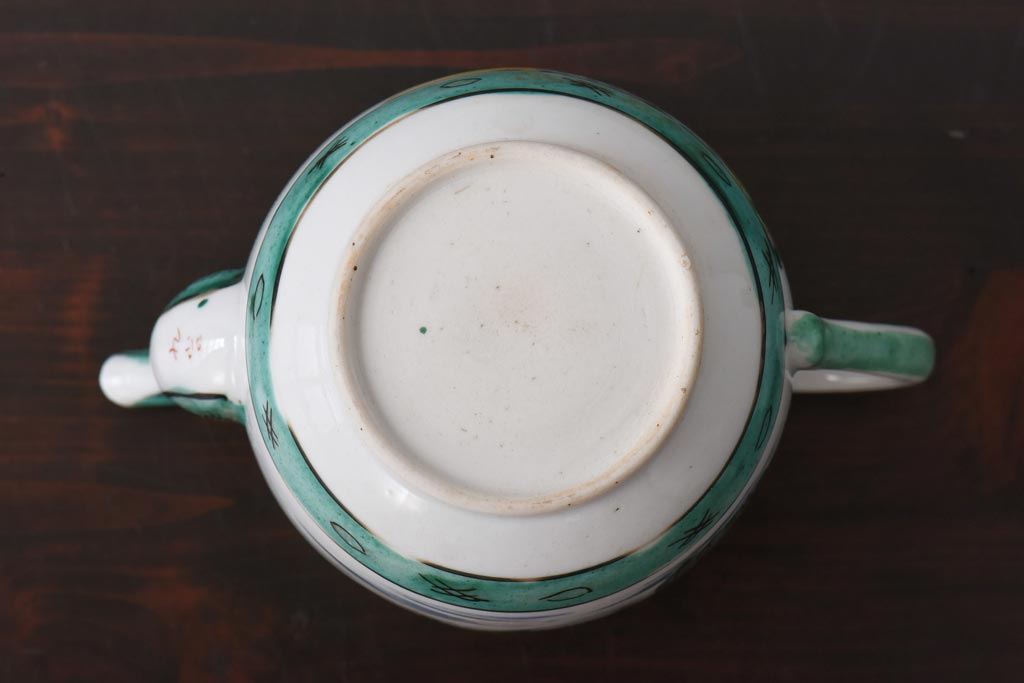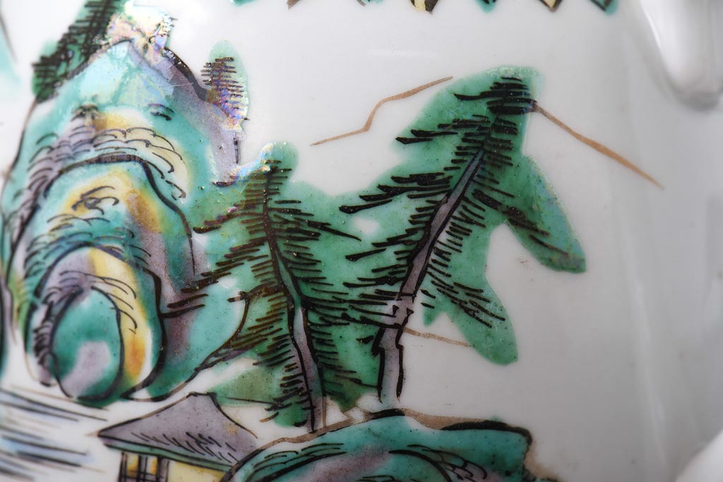 和製アンティーク 明治期 山水画 鮮やかな色彩が美しい九谷焼急須(水注、ポット)