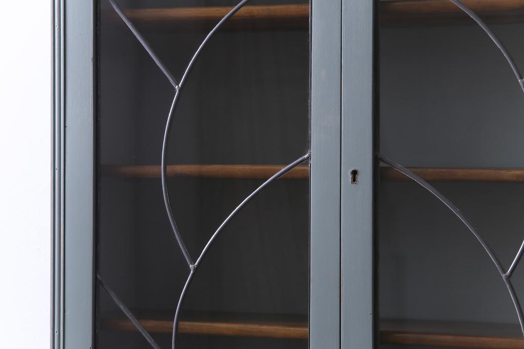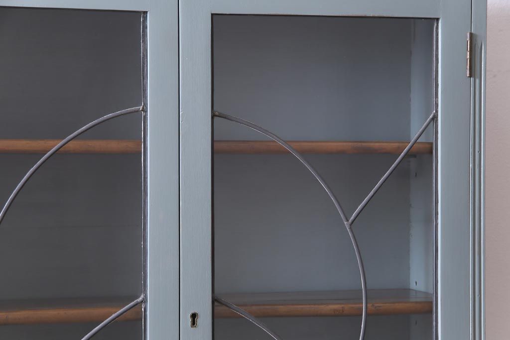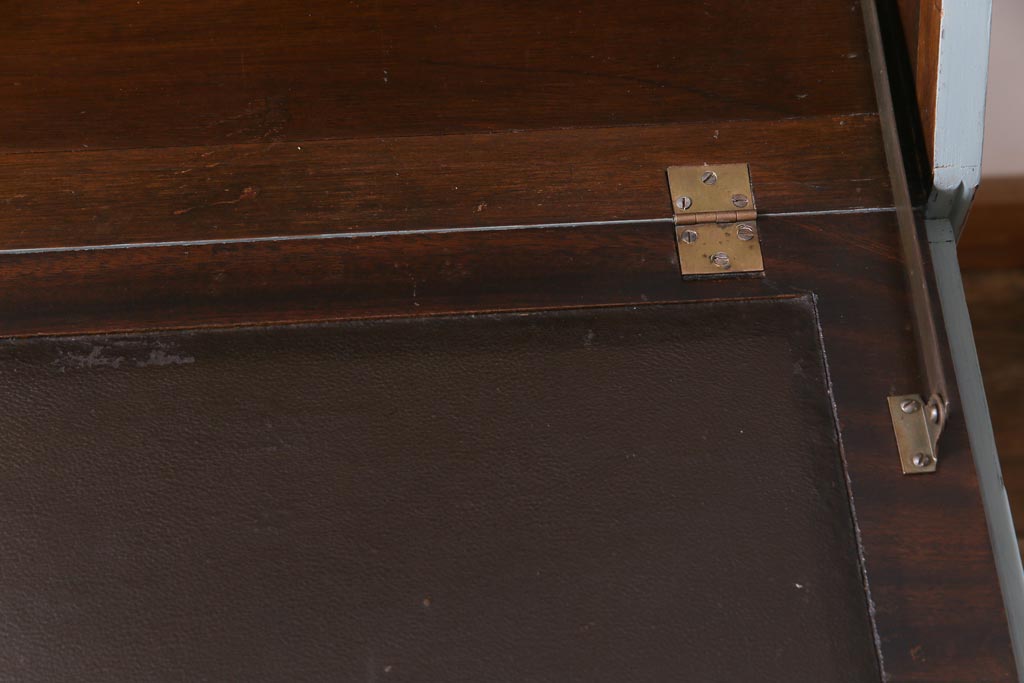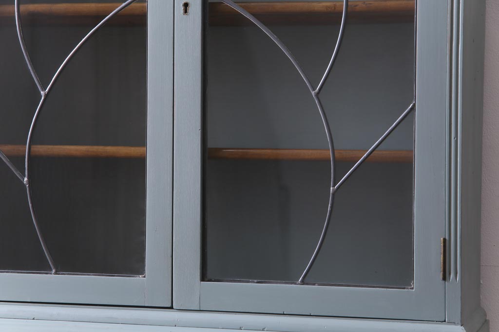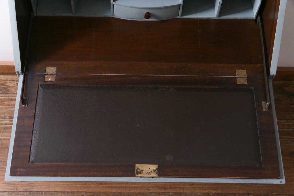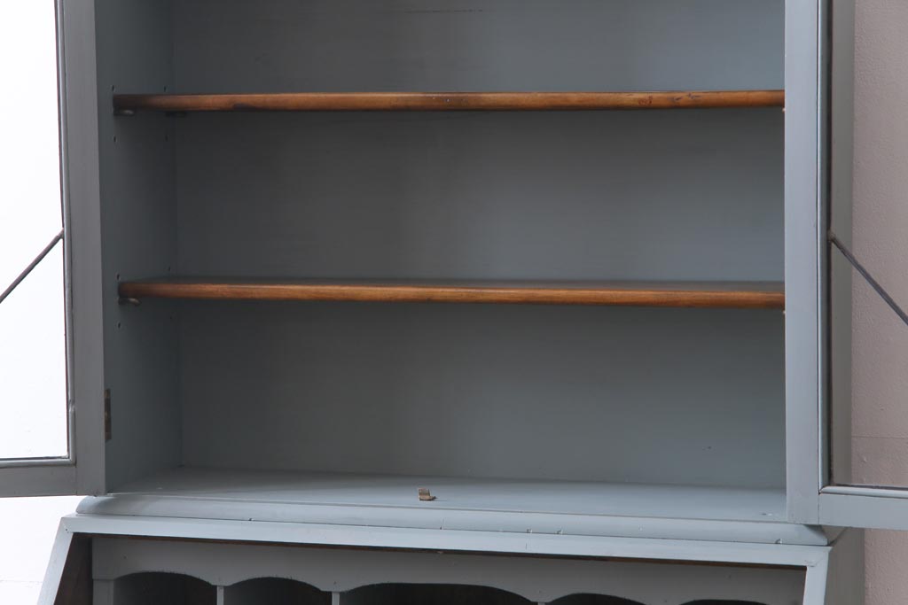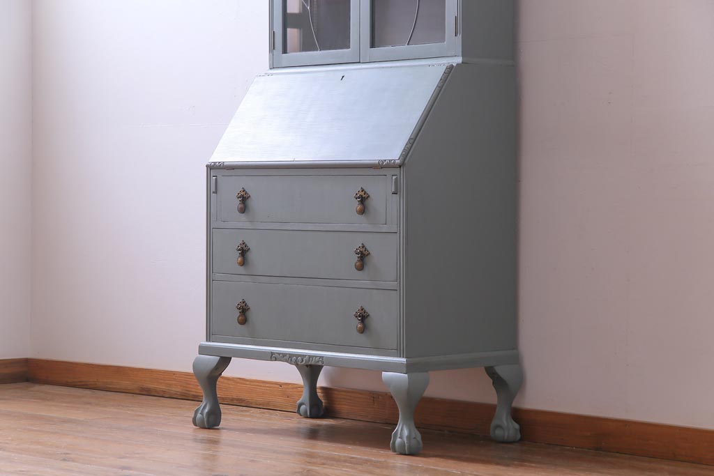 ペイント ステンドグラス扉がお洒落なアンティークのライティングビューロー(ビューローブックケース)です。