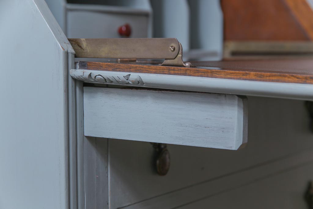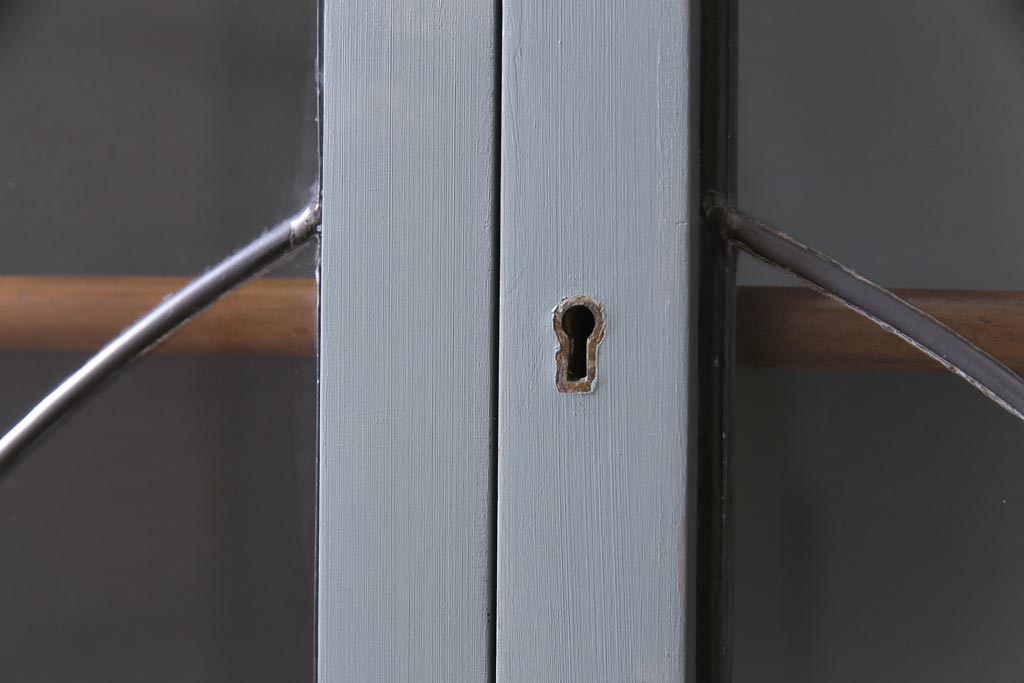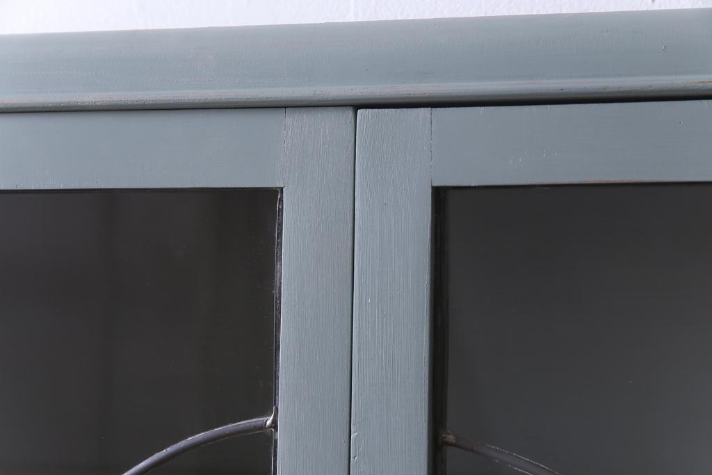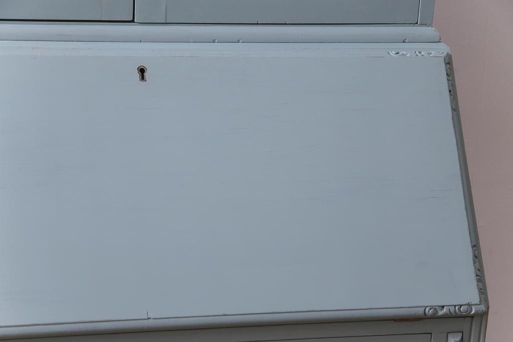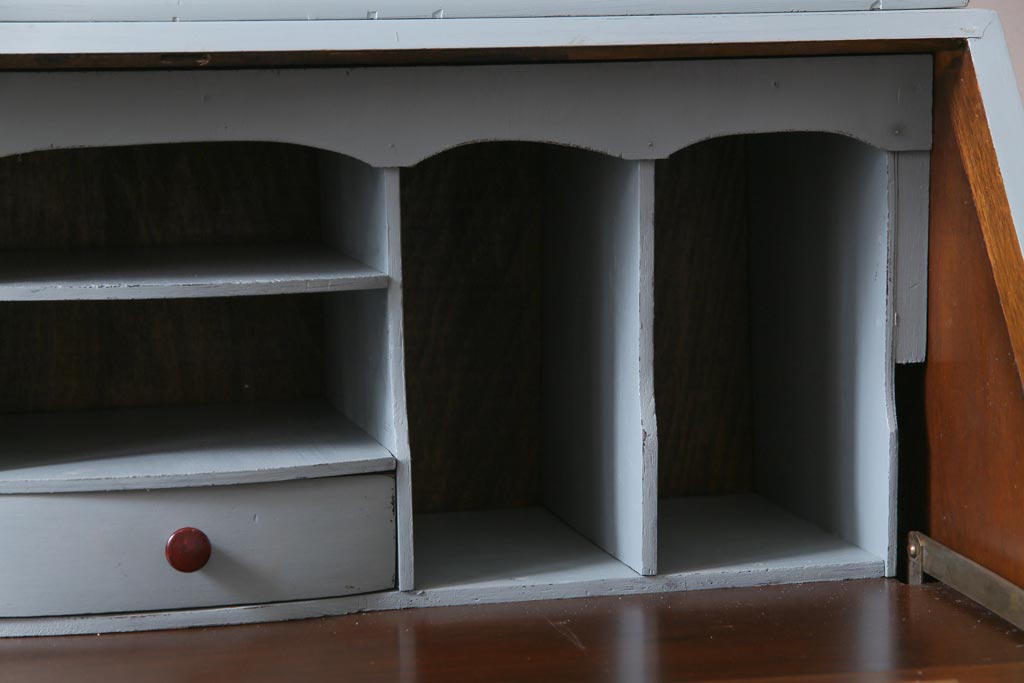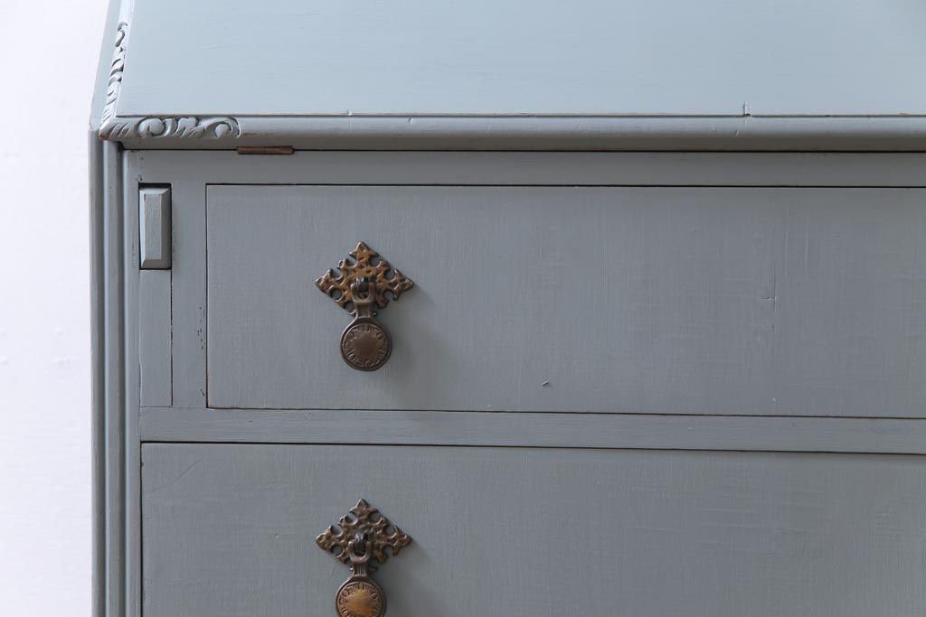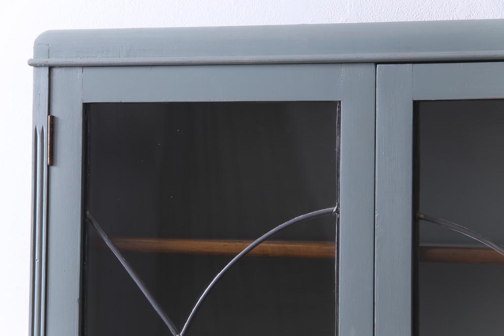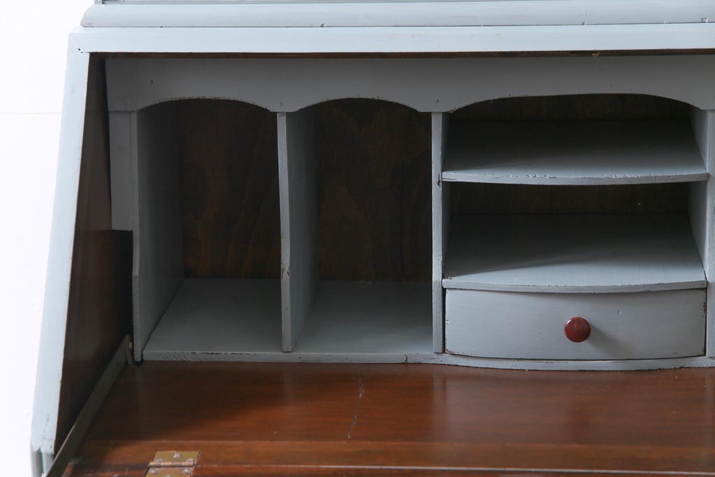 ペイント ステンドグラス扉がお洒落なアンティークのライティングビューロー(ビューローブックケース)です。