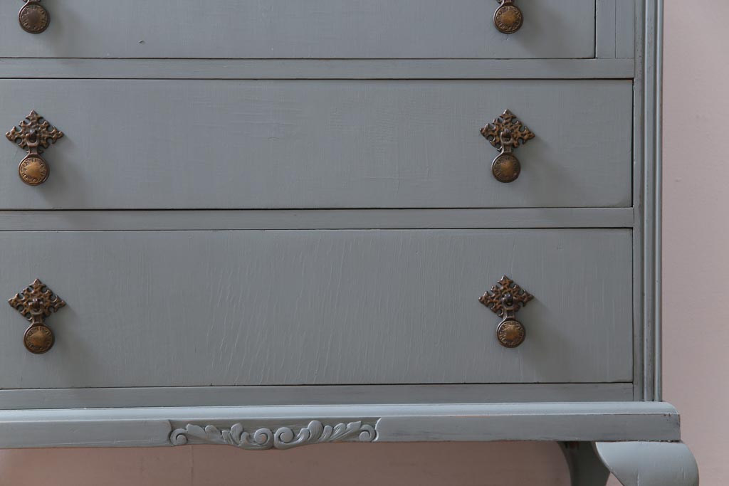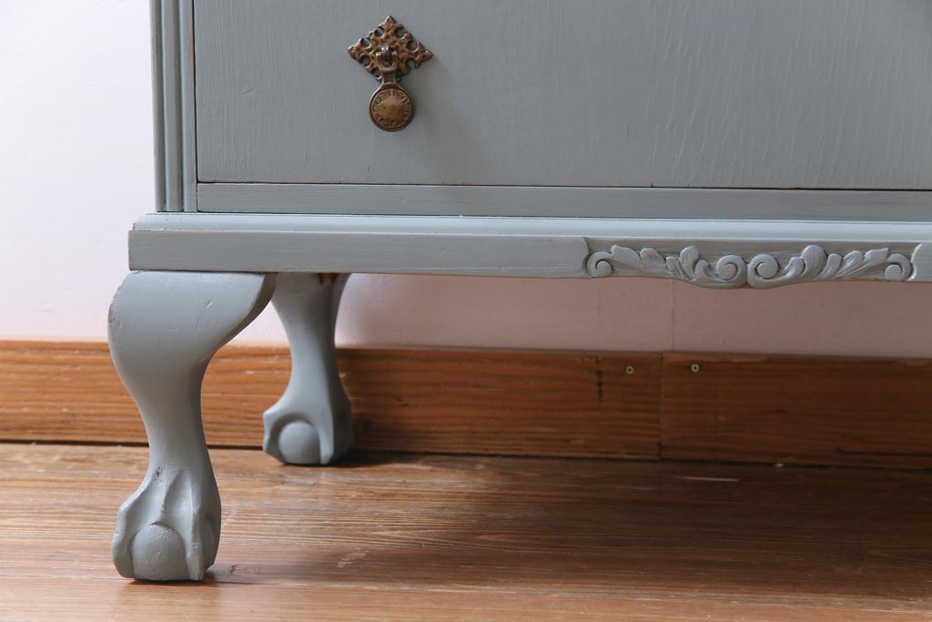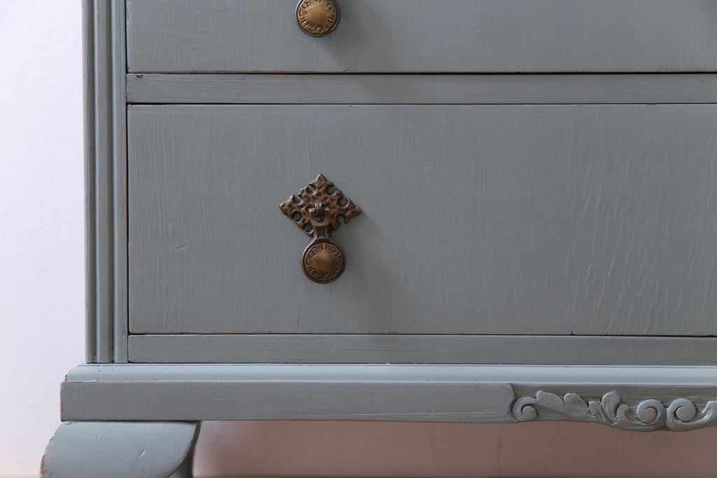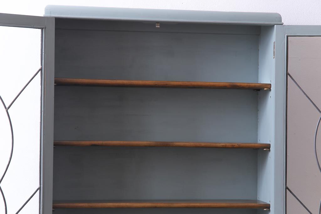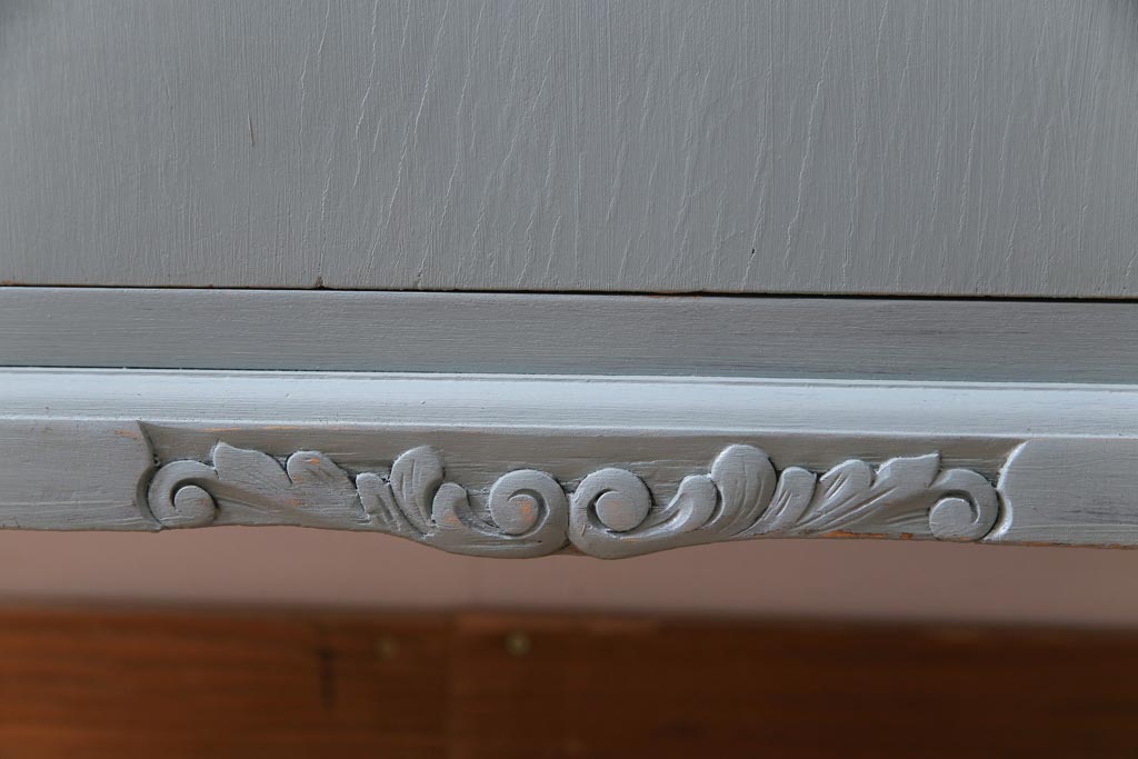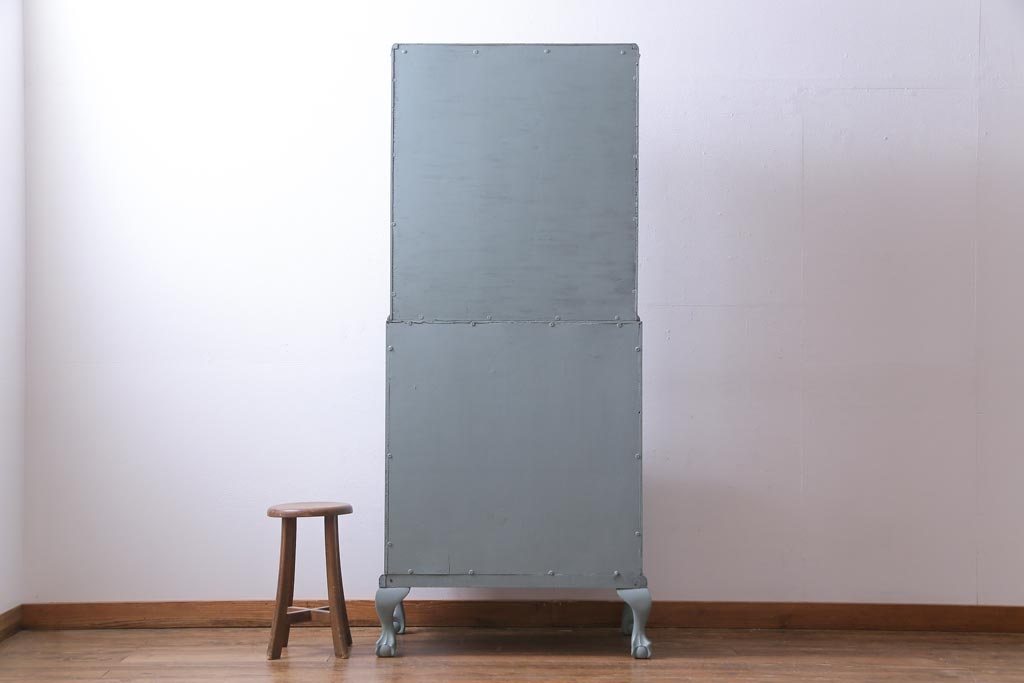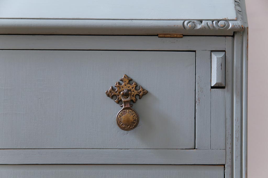 ペイント ステンドグラス扉がお洒落なアンティークのライティングビューロー(ビューローブックケース)です。