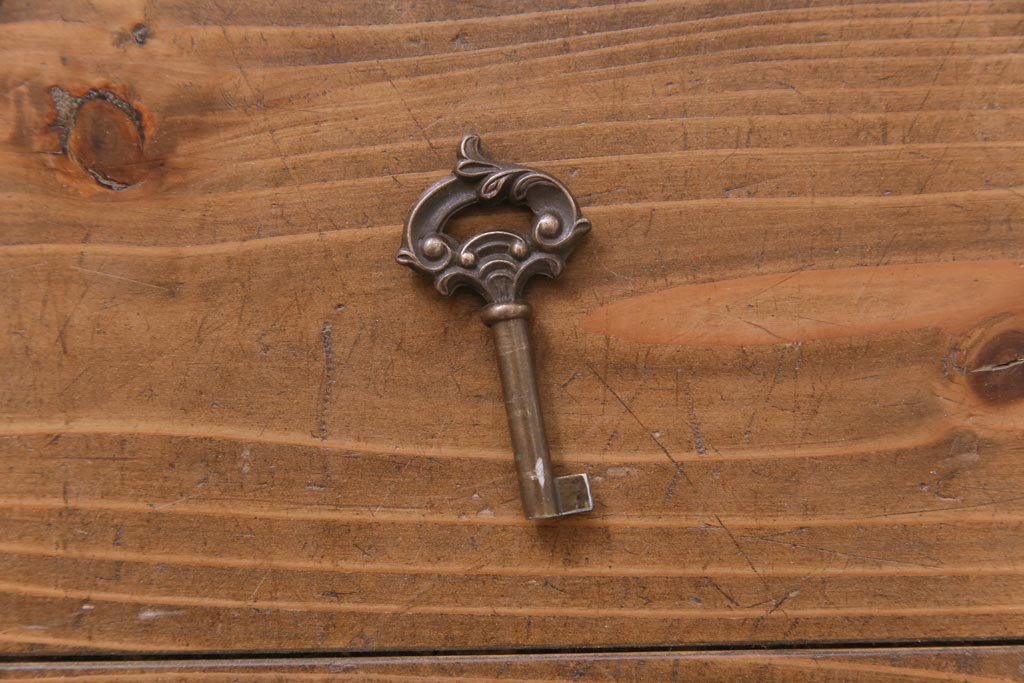 鍵は付属します。画像にありますように、袋に入れお付けします。スムーズに動くように調整していますが、あくまでも古いものや中古品ですので、長期の使用保証は出来かねます。ご購入後不具合が発生した場合は、当店でサポートさせていただきますので、お気軽にご相談くださいませ。