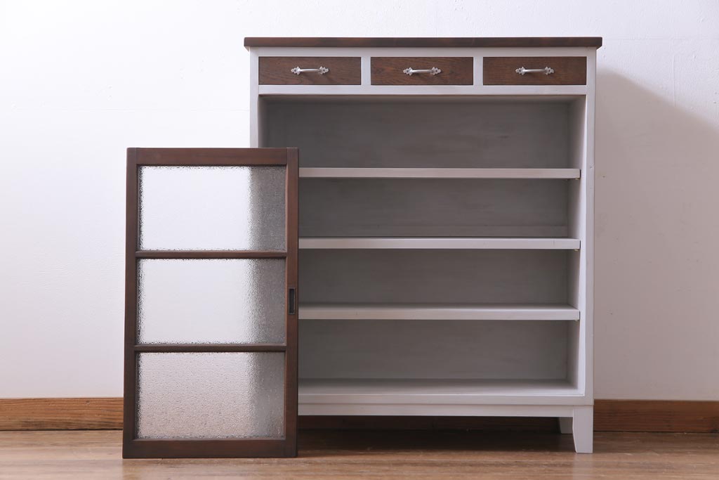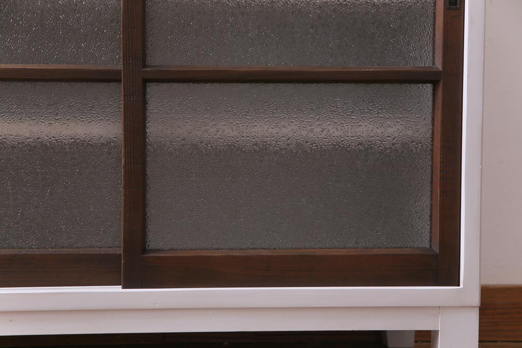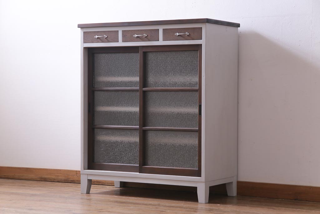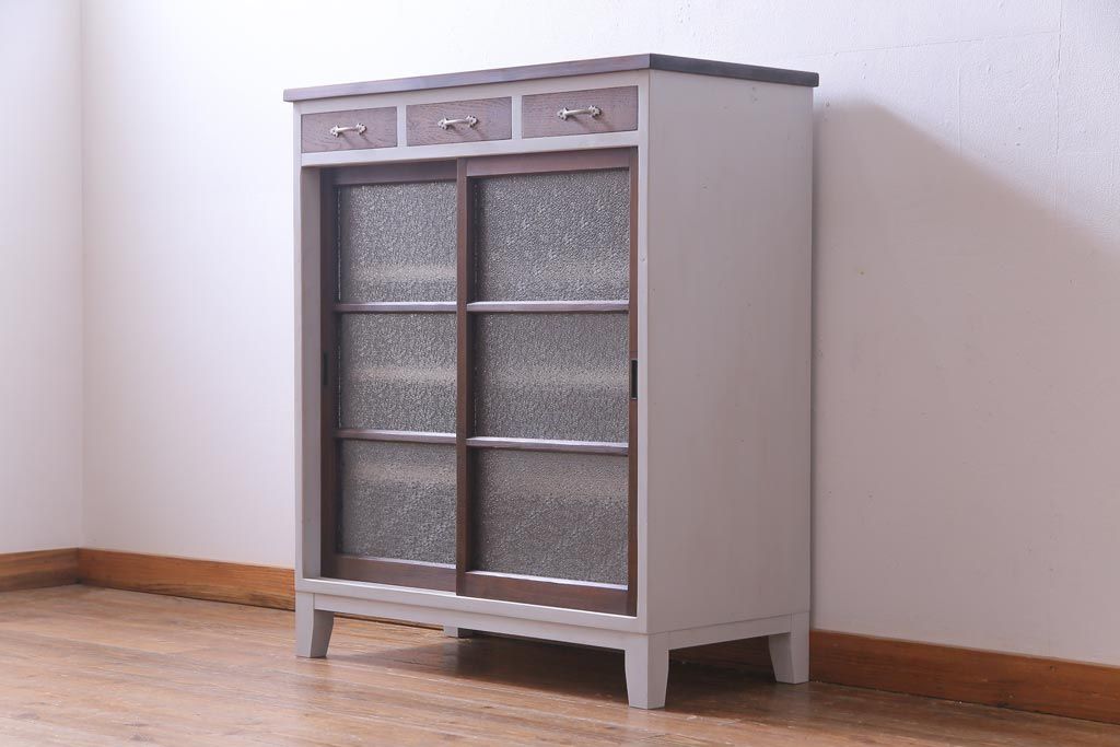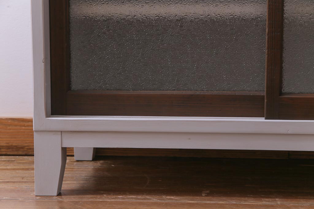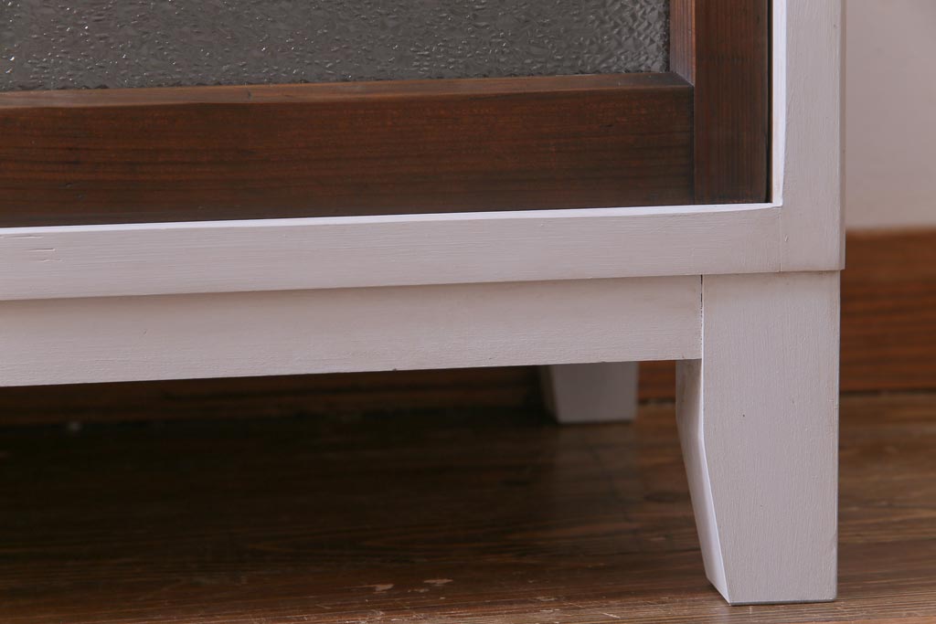 ラフジュ工房オリジナル ダイヤガラス 古建具リメイク ノスタルジックな脚付きペイント収納棚(戸棚)