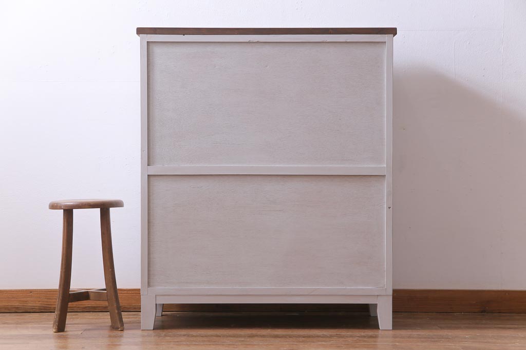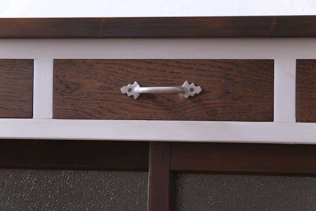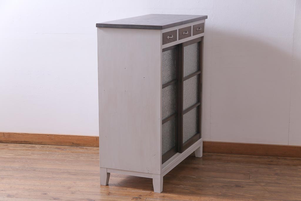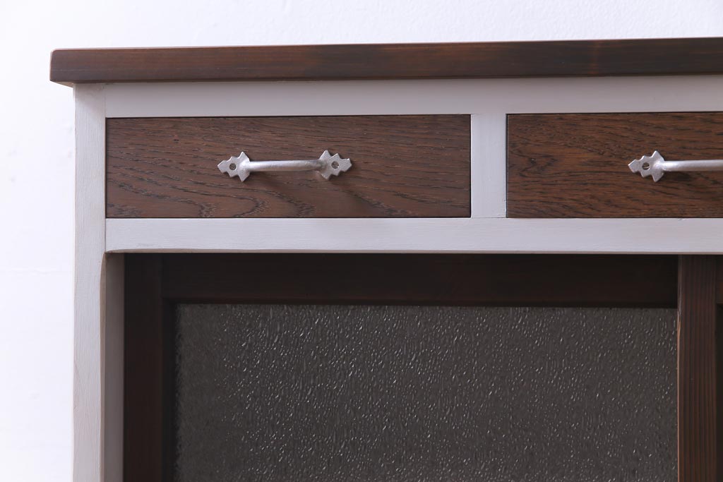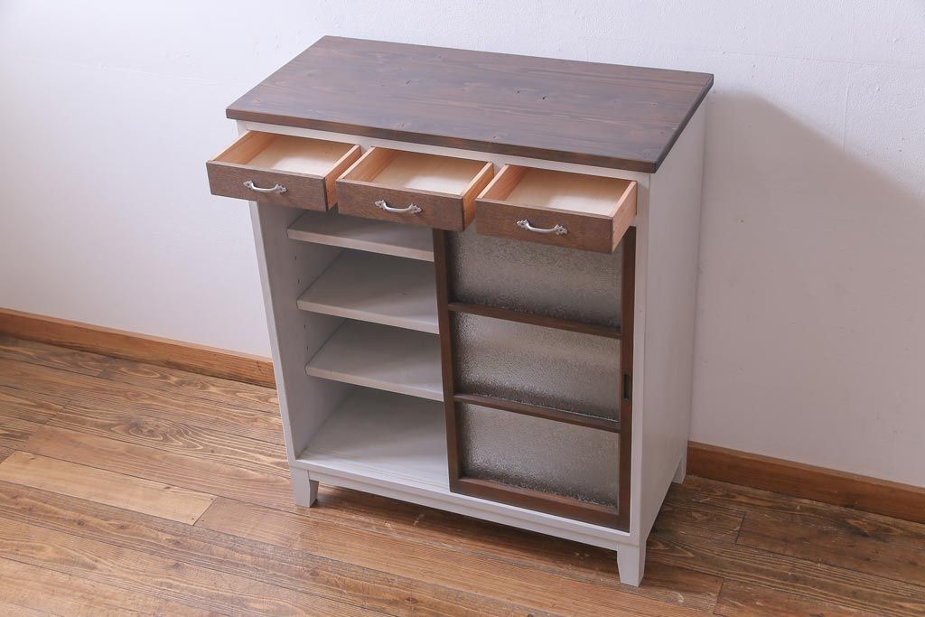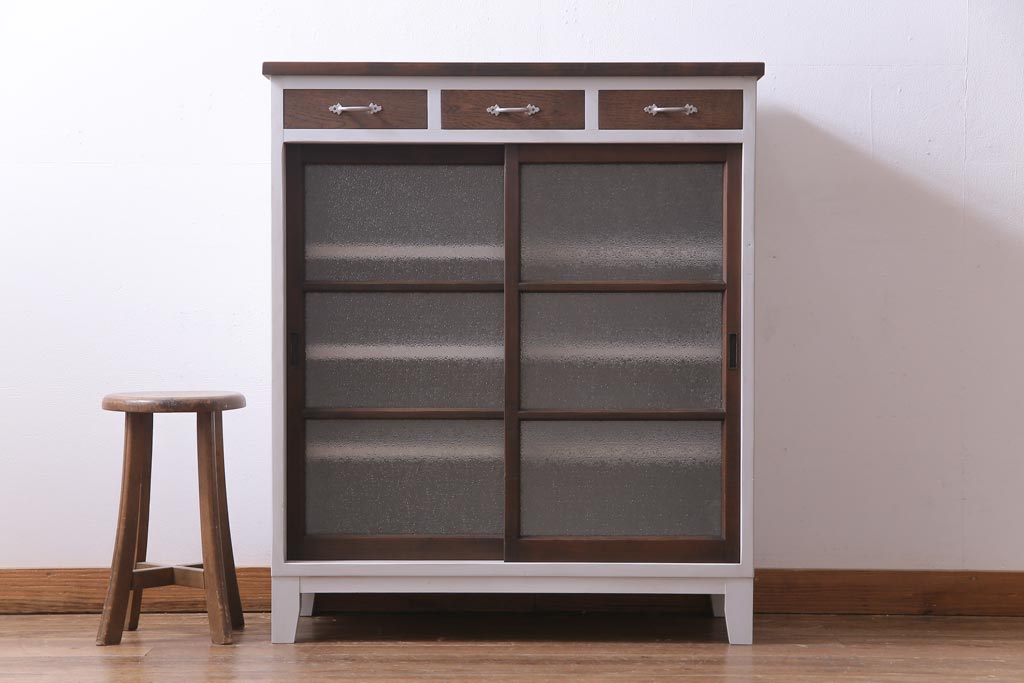 ラフジュ工房オリジナル ダイヤガラス 古建具リメイク ノスタルジックな脚付きペイント収納棚(戸棚)