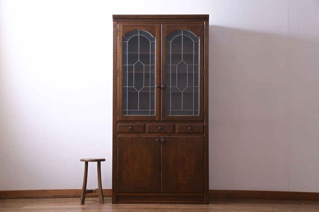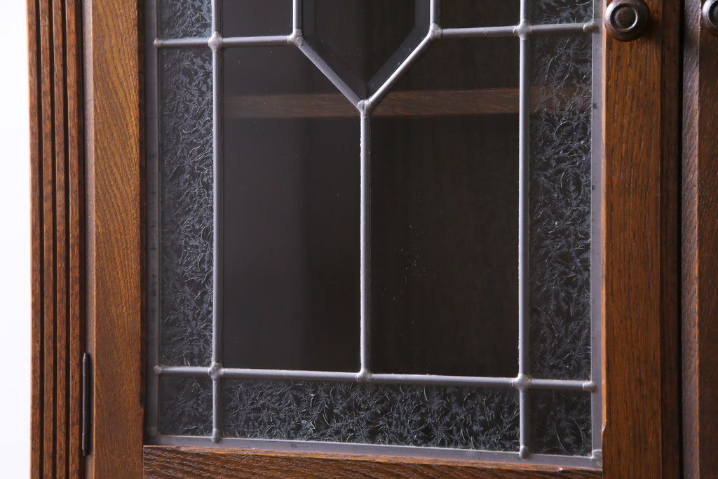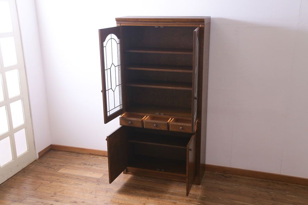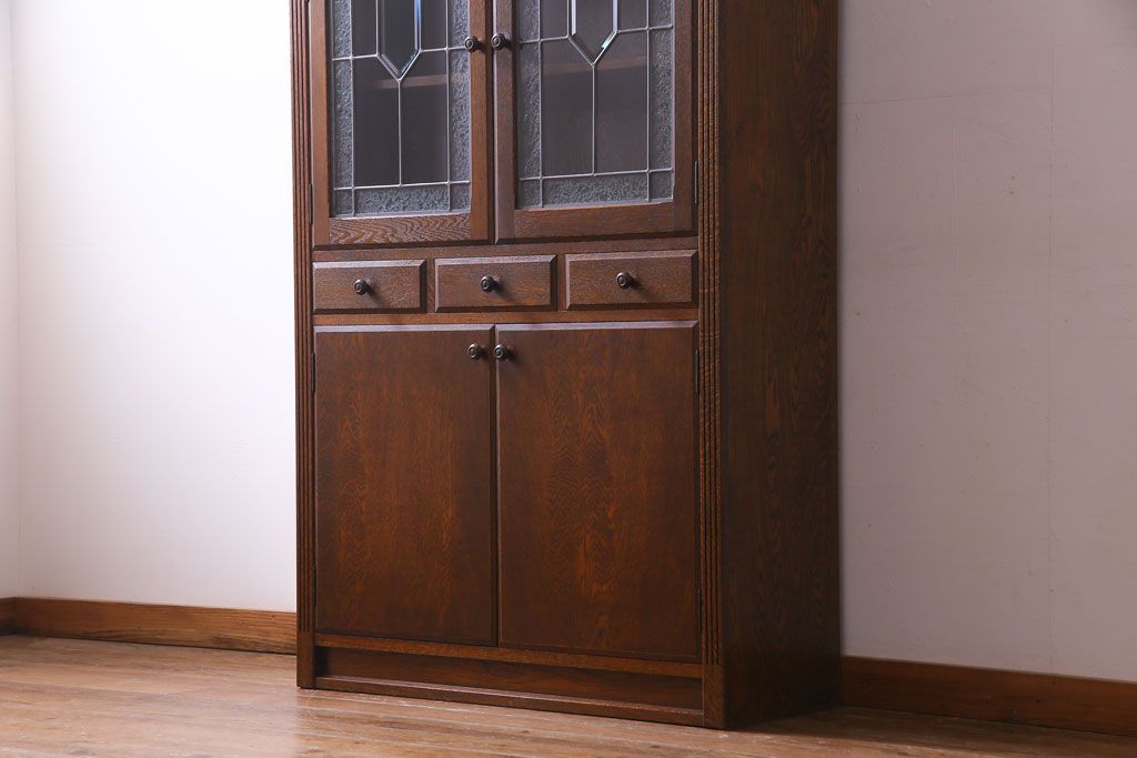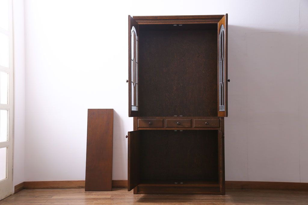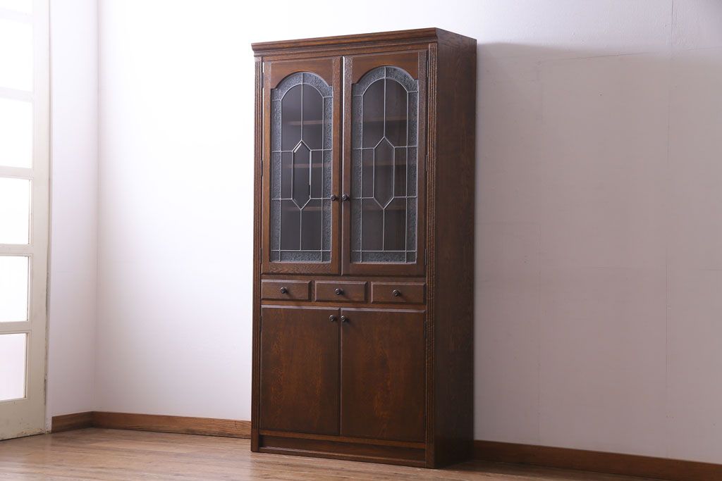 中古美品 三越Brugge(ブルージュ)シリーズ 上品なステンドグラス扉のキャビネット(食器棚、飾り棚、戸棚)