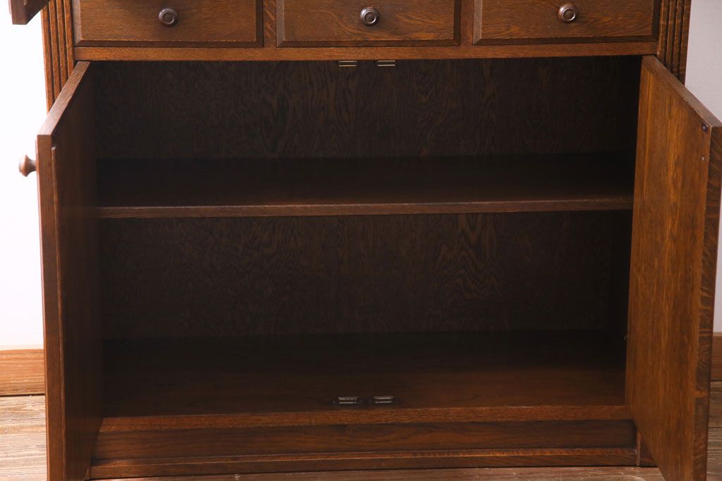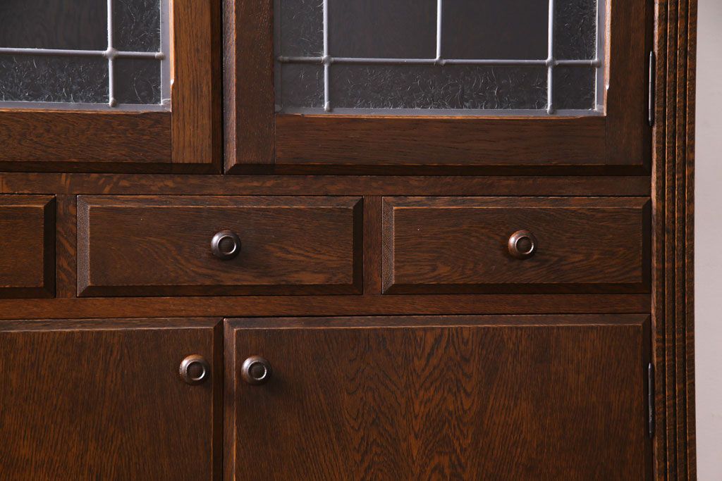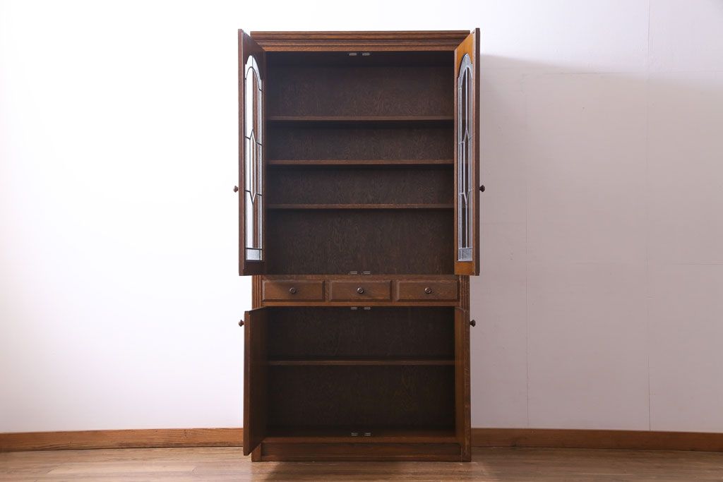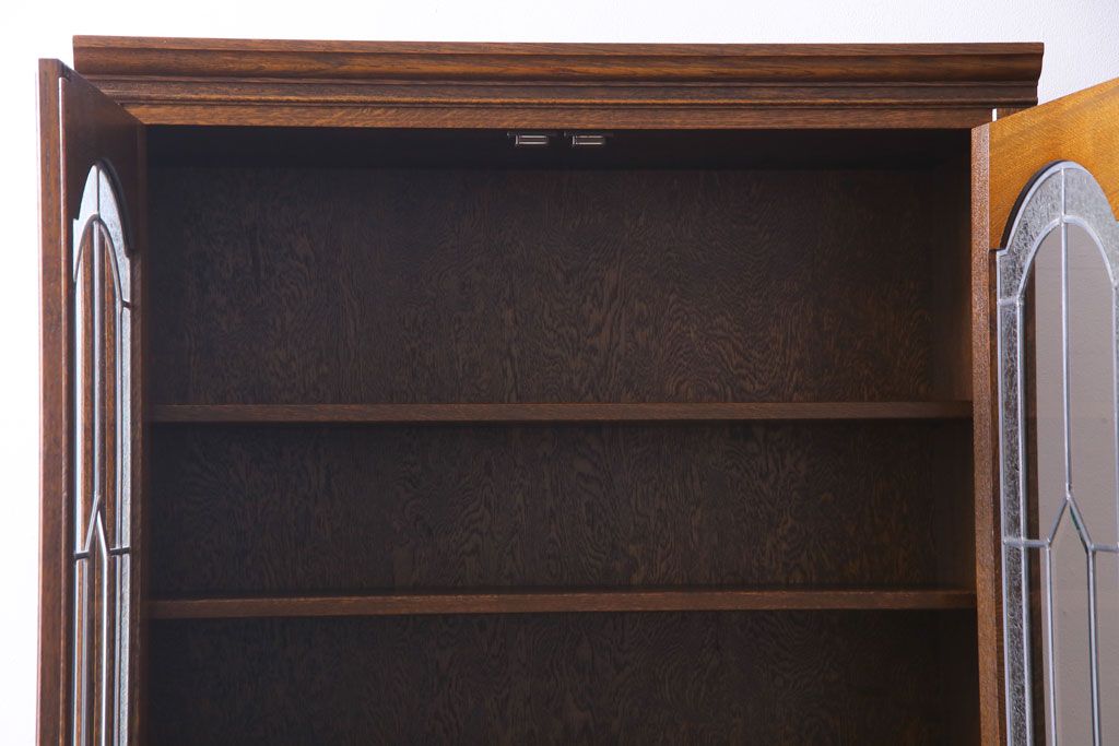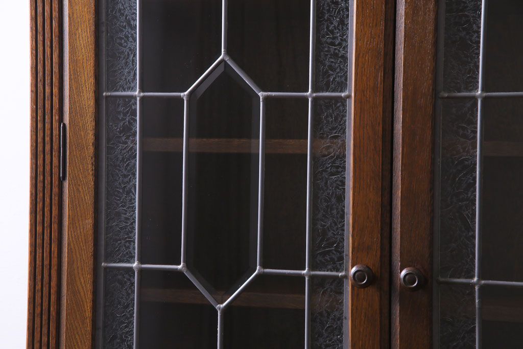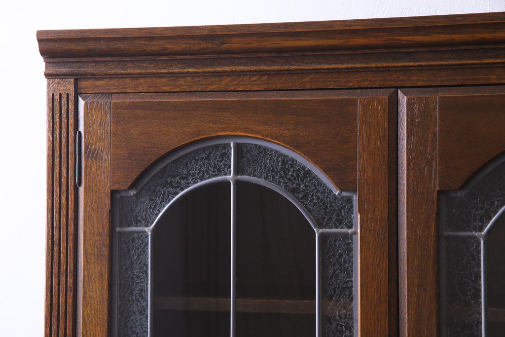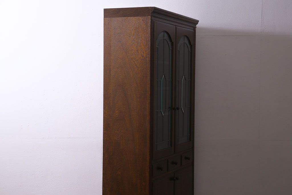 中古美品 三越Brugge(ブルージュ)シリーズ 上品なステンドグラス扉のキャビネット(食器棚、飾り棚、戸棚)