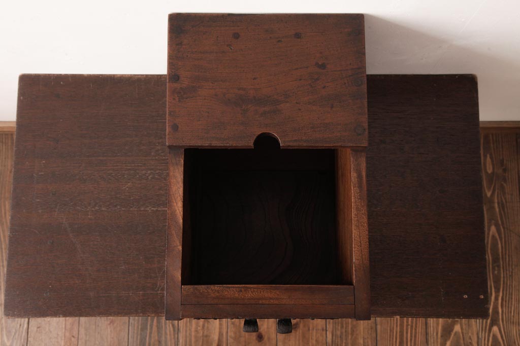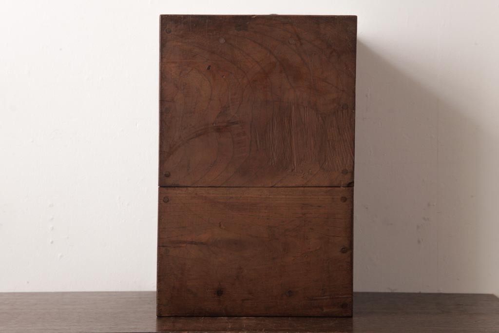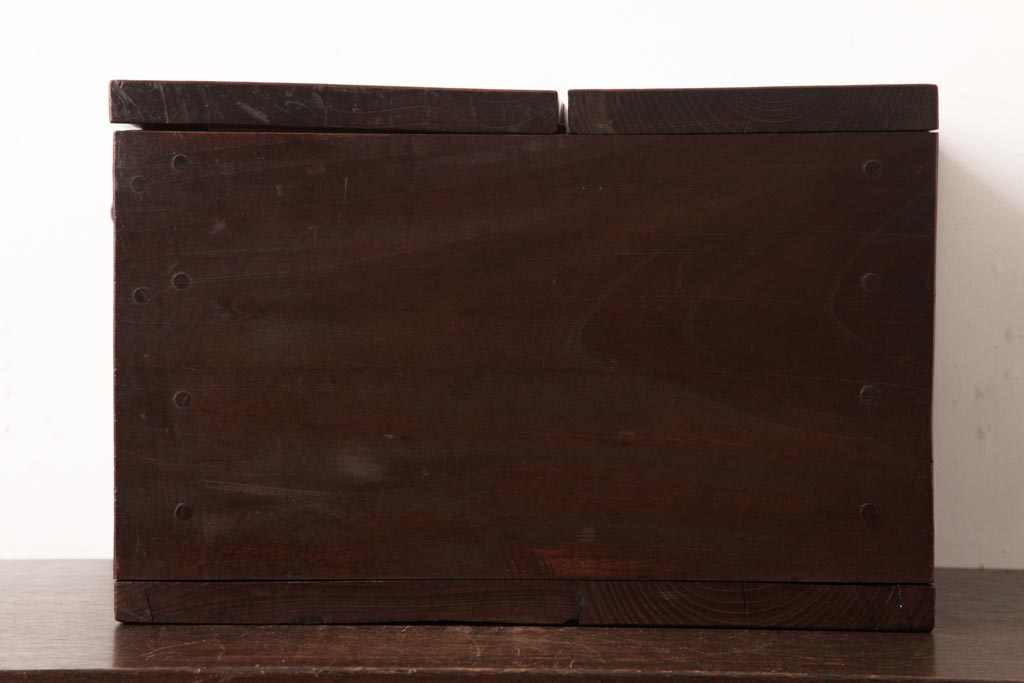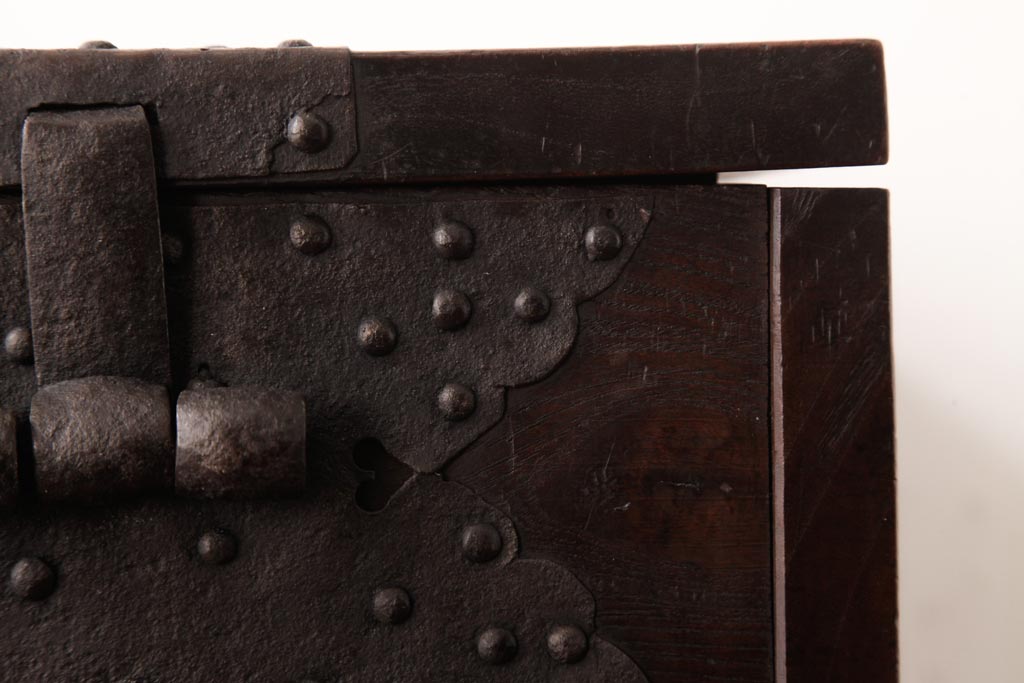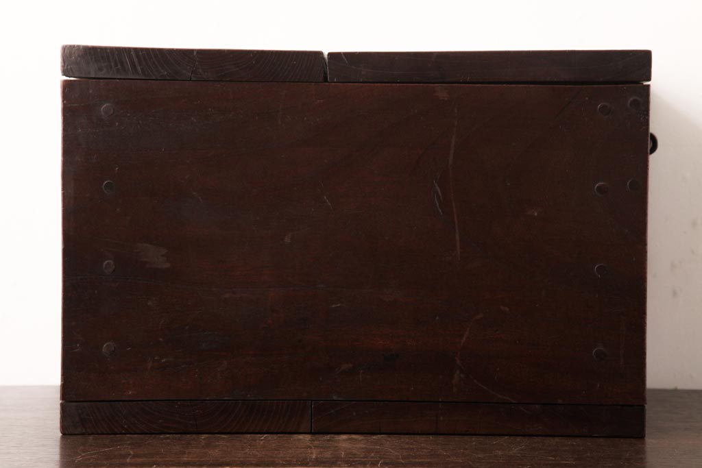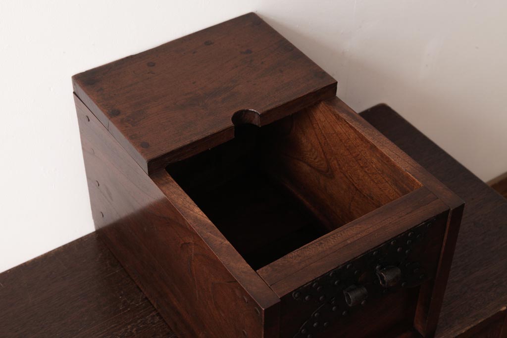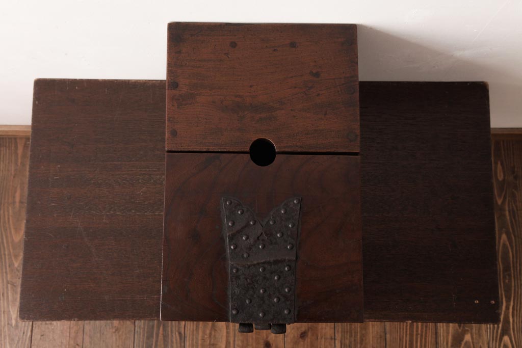 アンティーク雑貨 古民具・骨董 総ケヤキ材 金具が風格を漂わせる銭箱(銭函)