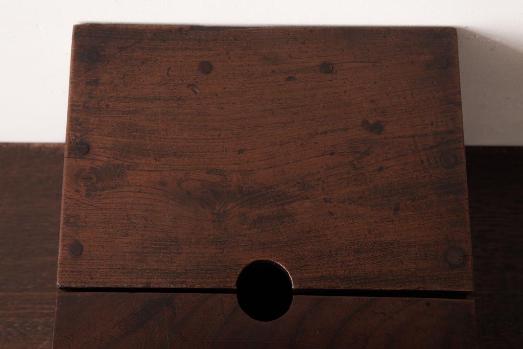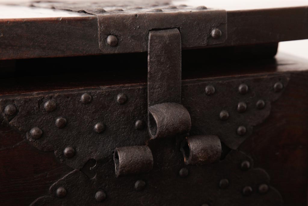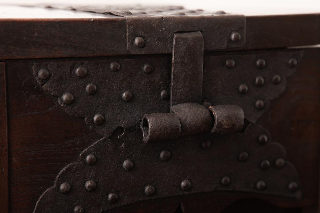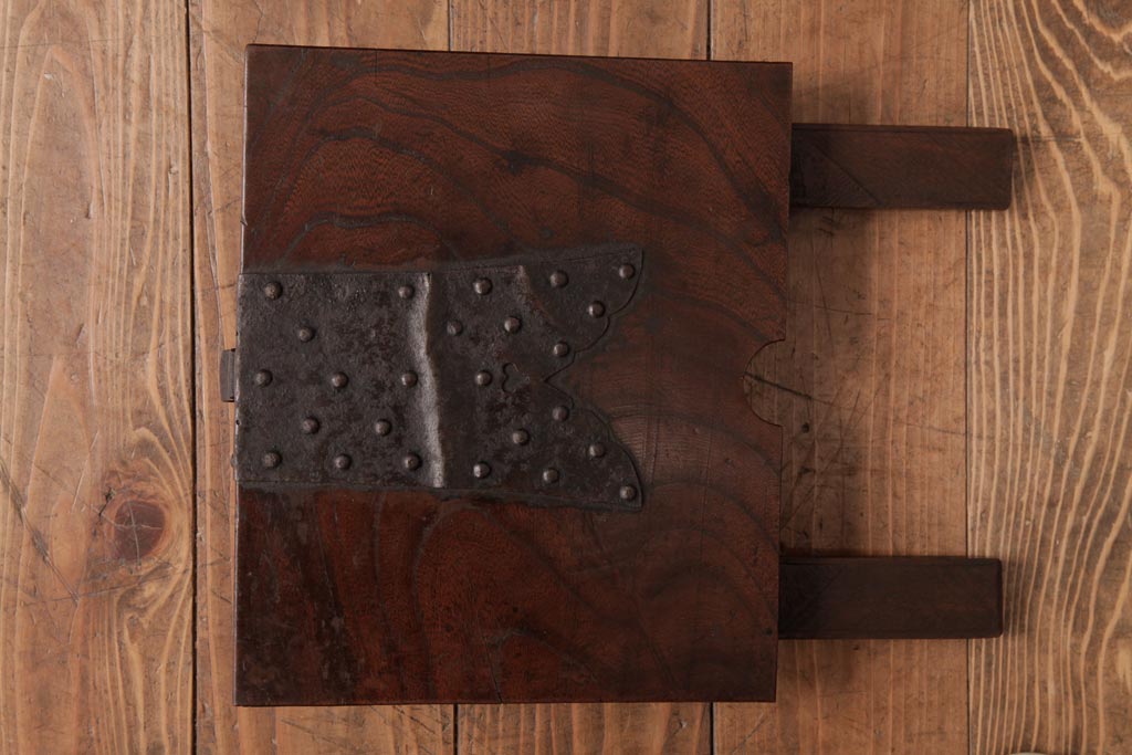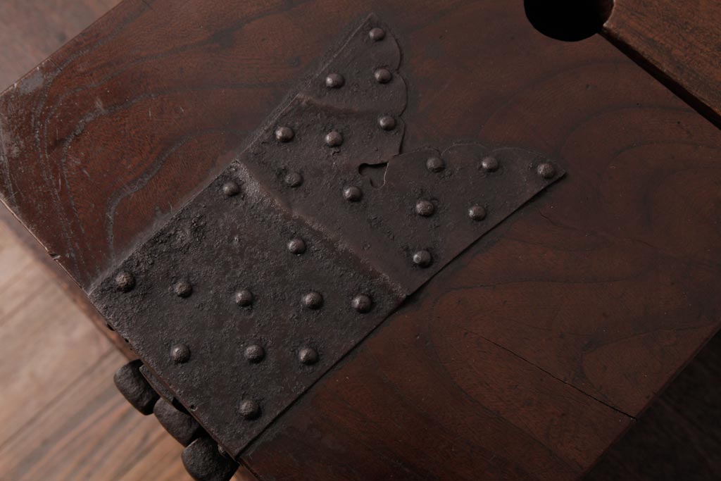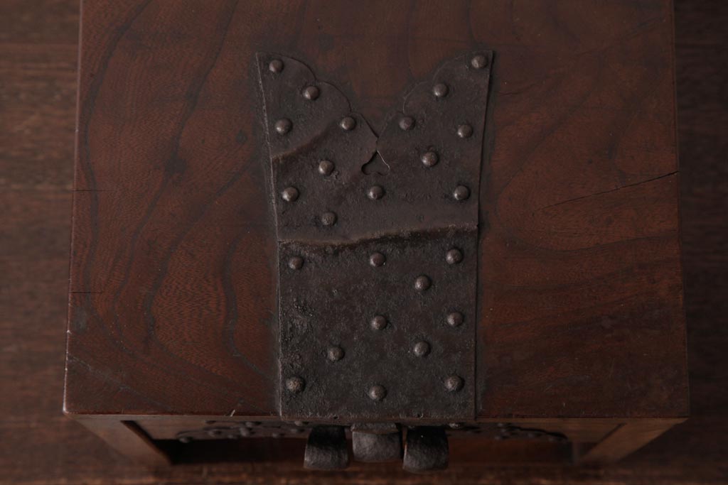 古民具・骨董 総ケヤキ材 金具が風格を漂わせる銭箱(銭函)です。