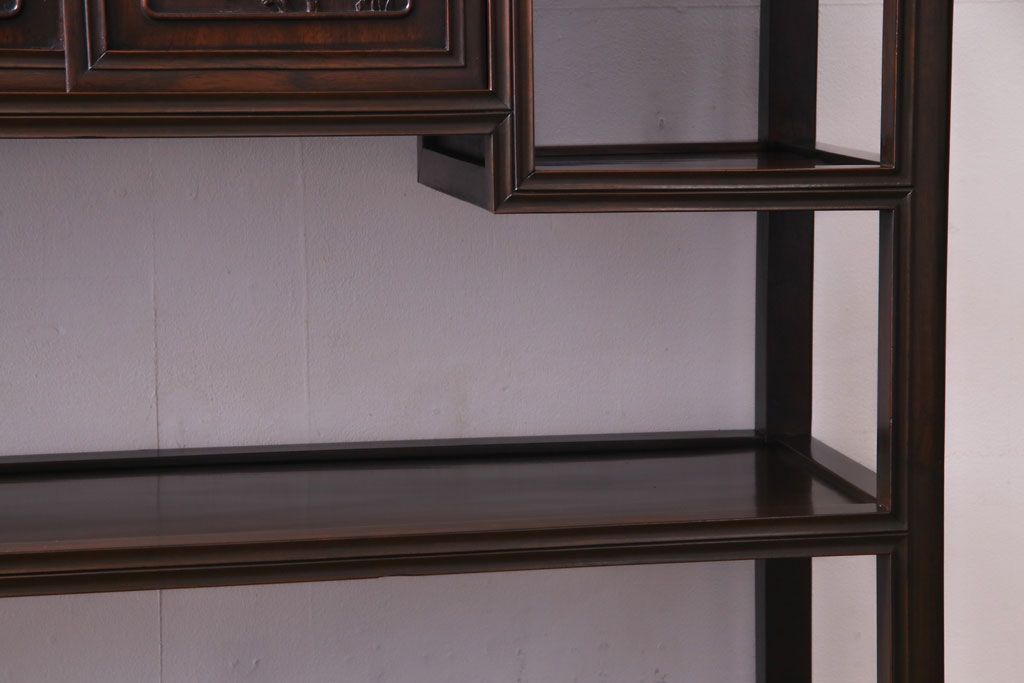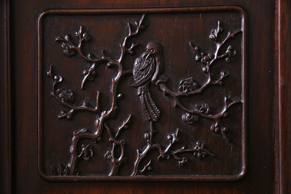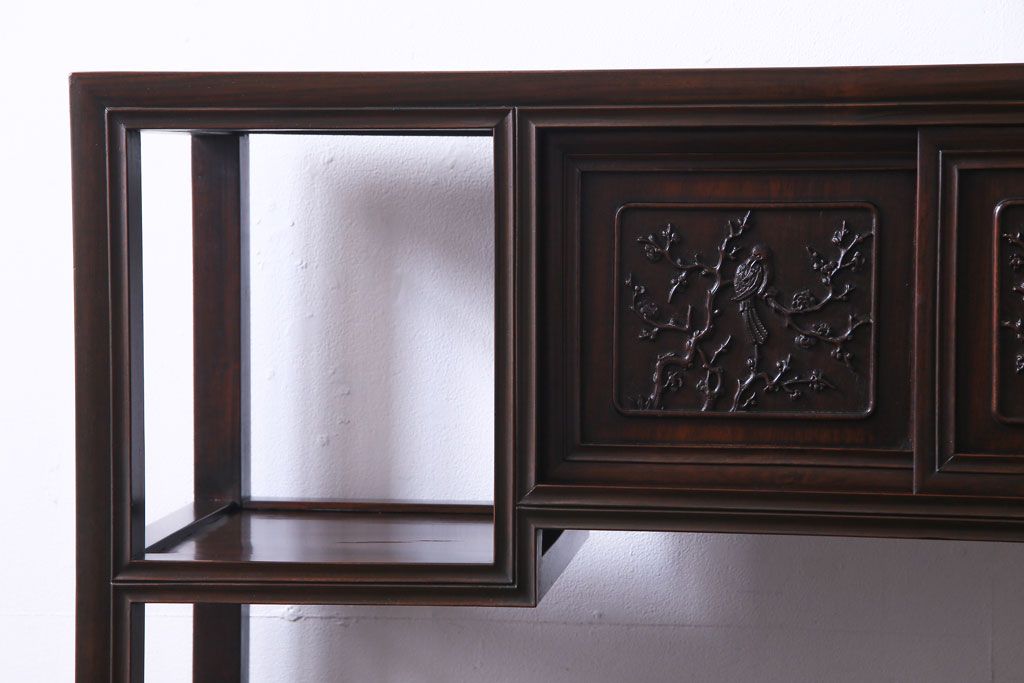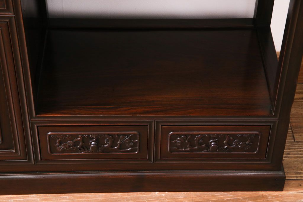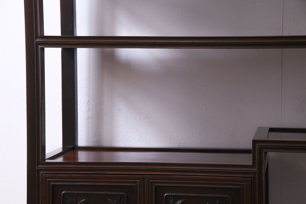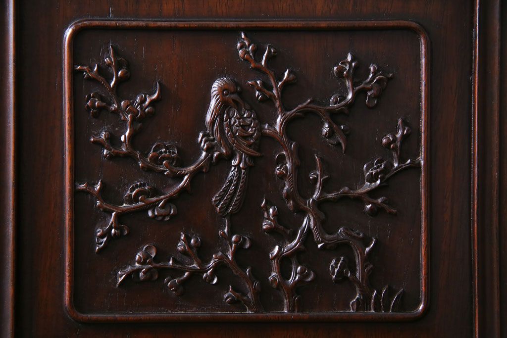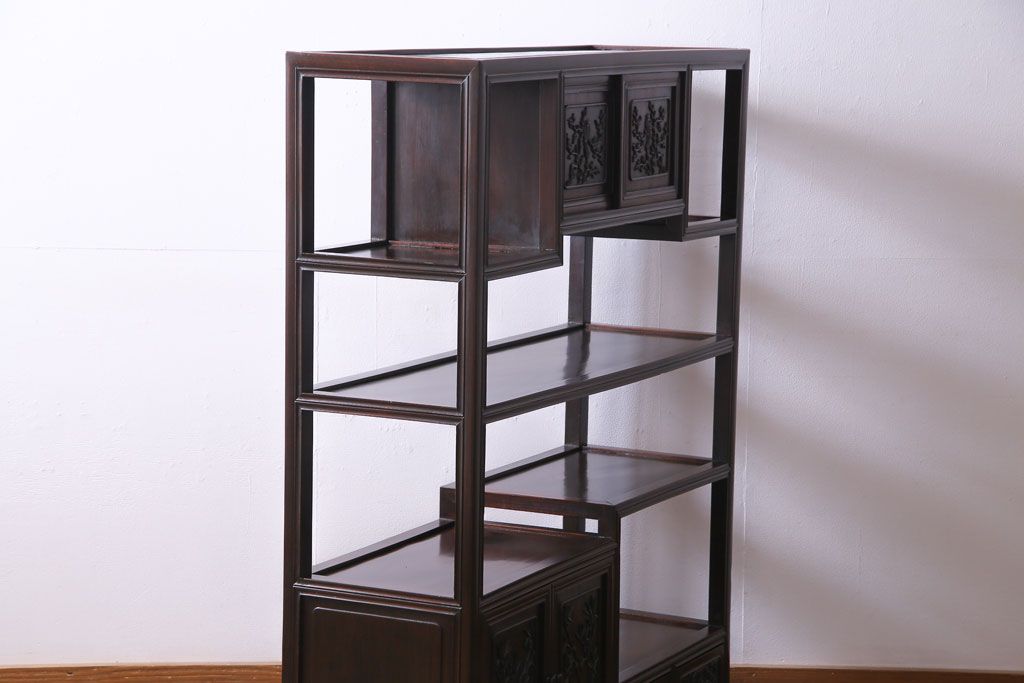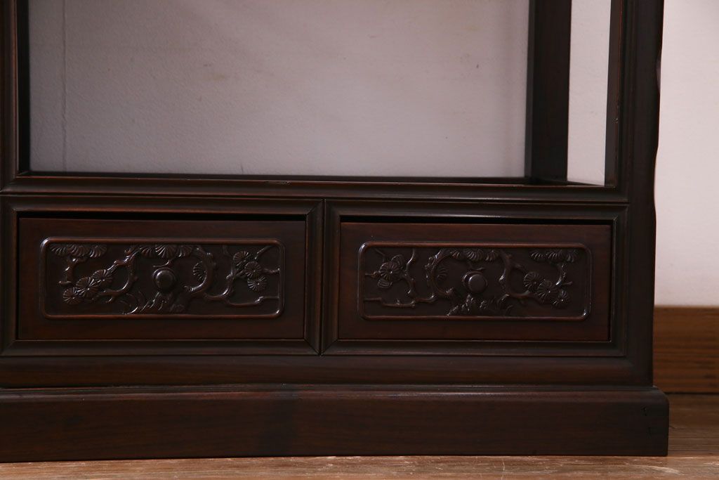 アンティーク家具 和製アンティーク 紫檀 花鳥図 縁取りが存在感を引き立てる時代物の飾り棚(飾棚、茶棚)