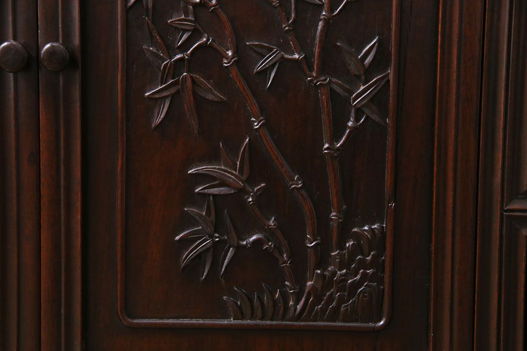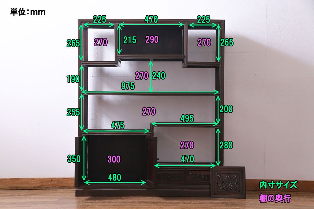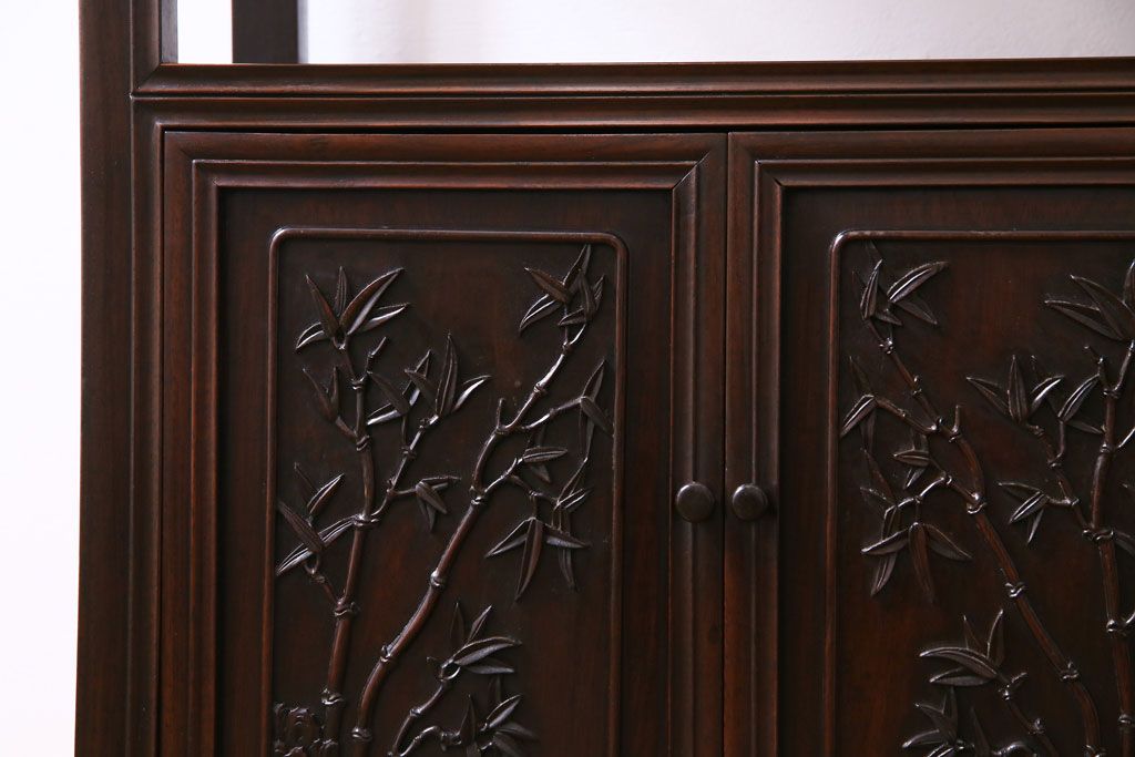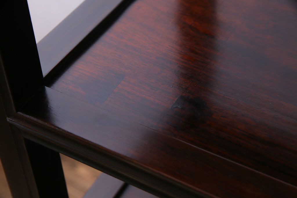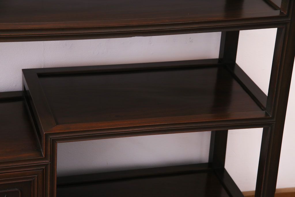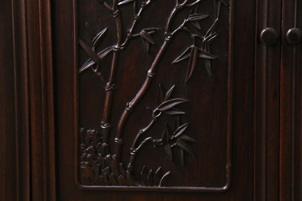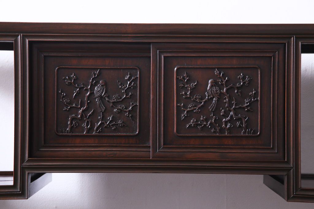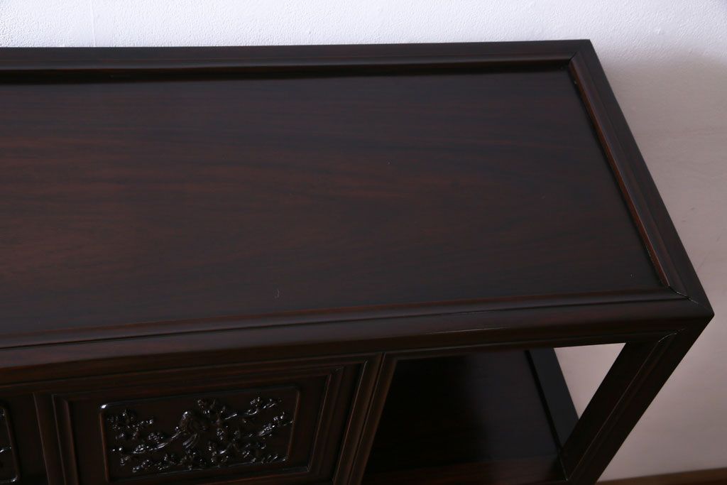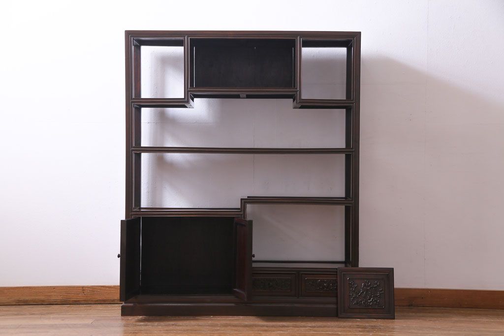 アンティーク家具 和製アンティーク 紫檀 花鳥図 縁取りが存在感を引き立てる時代物の飾り棚(飾棚、茶棚)