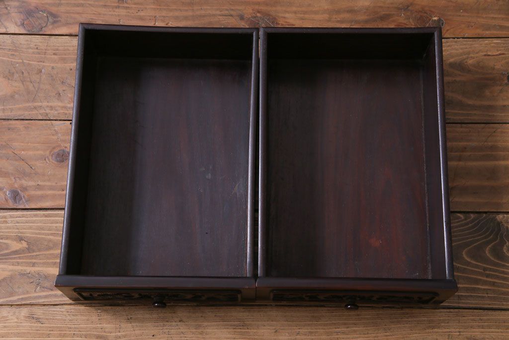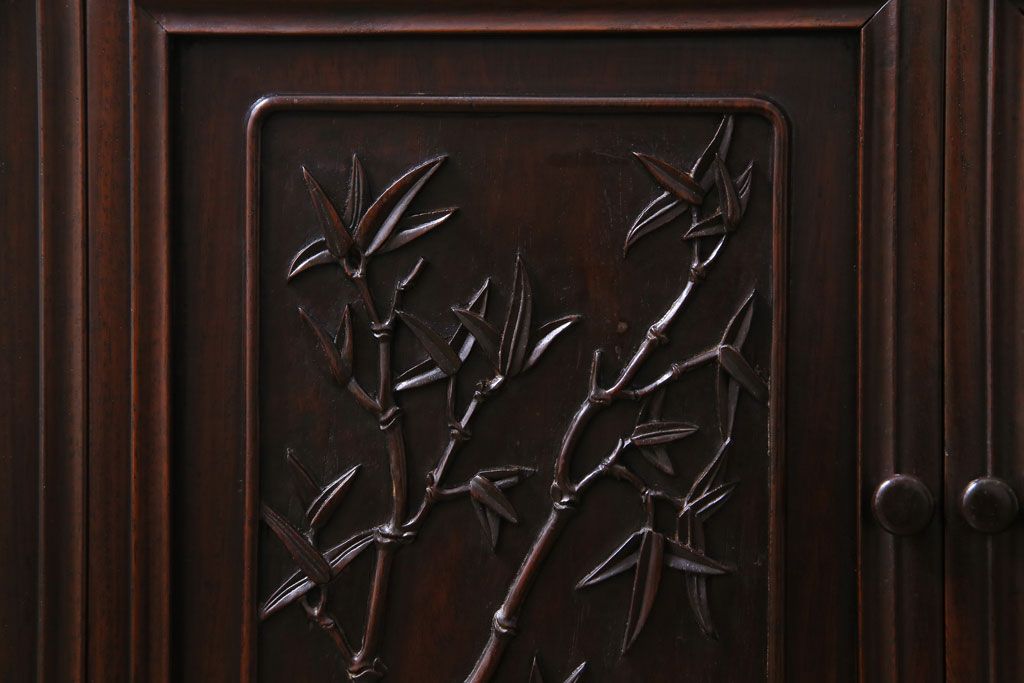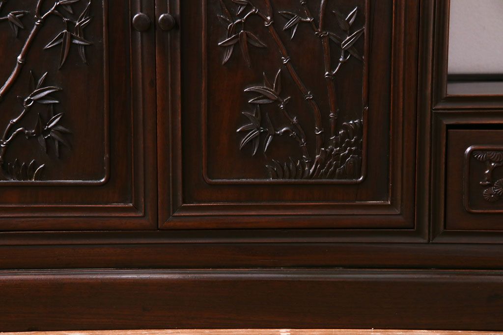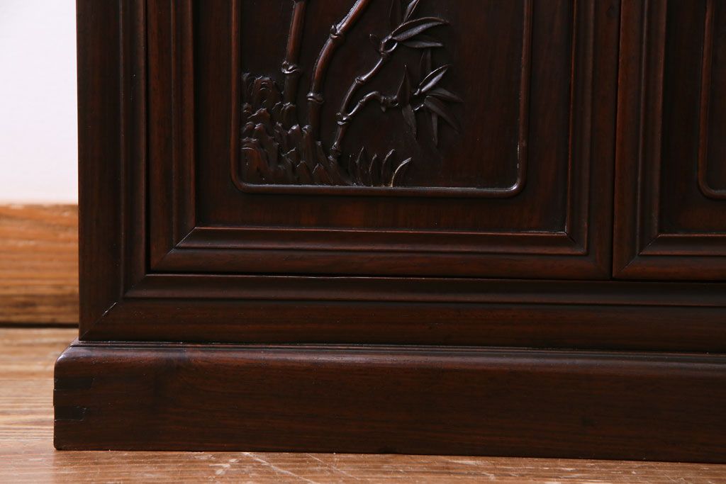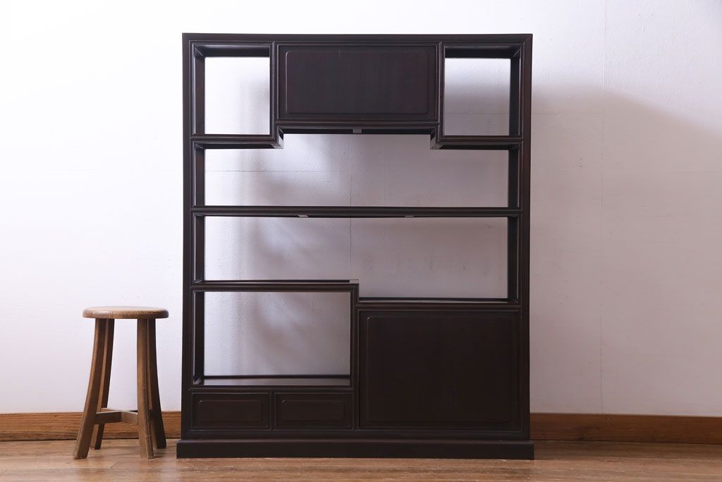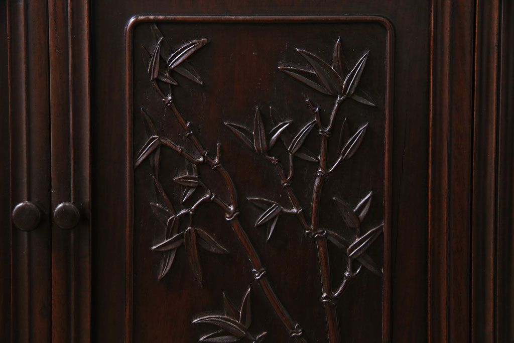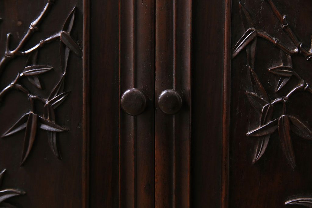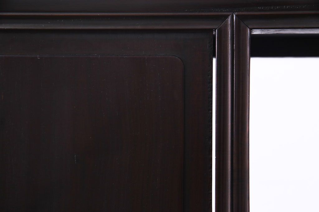 アンティーク家具 和製アンティーク 紫檀 花鳥図 縁取りが存在感を引き立てる時代物の飾り棚(飾棚、茶棚)