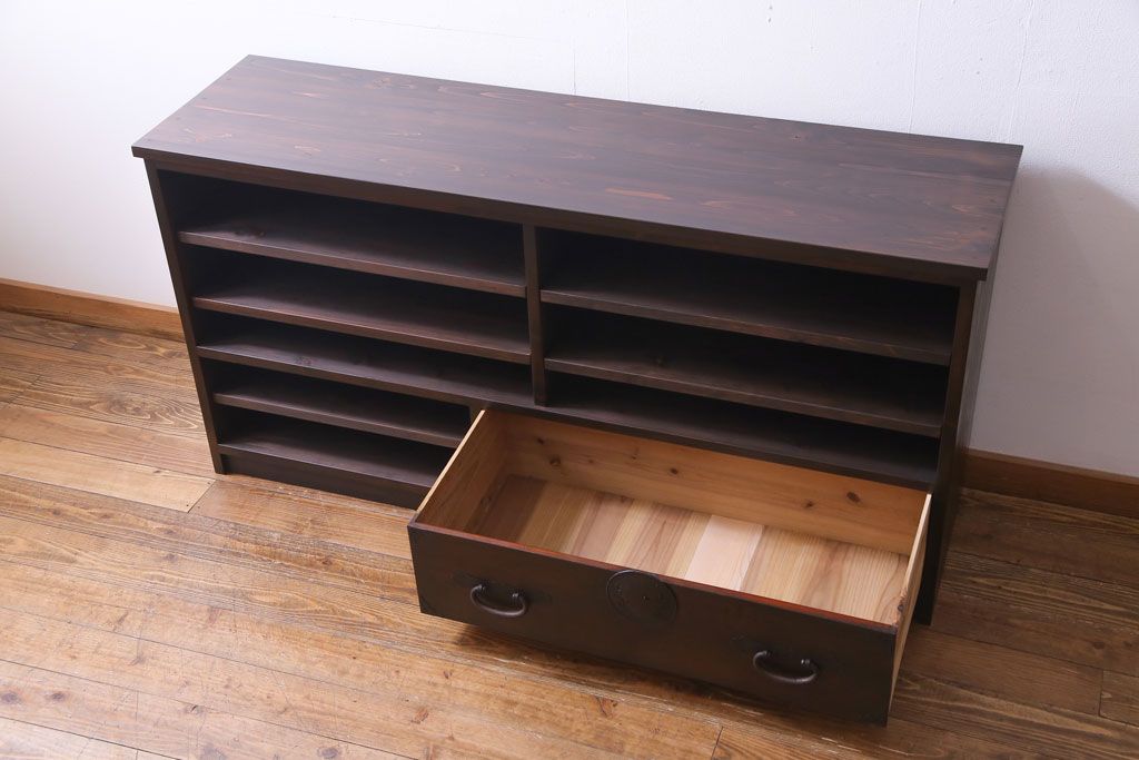ラフジュ工房> 和箪笥 > ラフジュ工房オリジナル 引き出しリメイク 素朴な丸金具のリビングボード(テレビボード、ローボード、収納棚)
