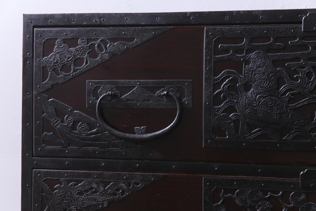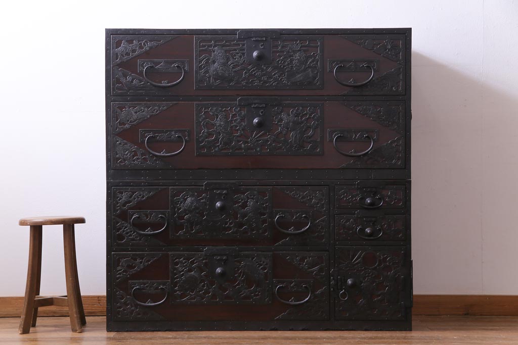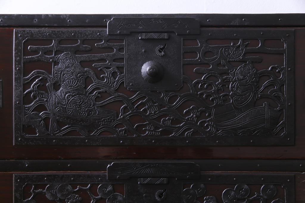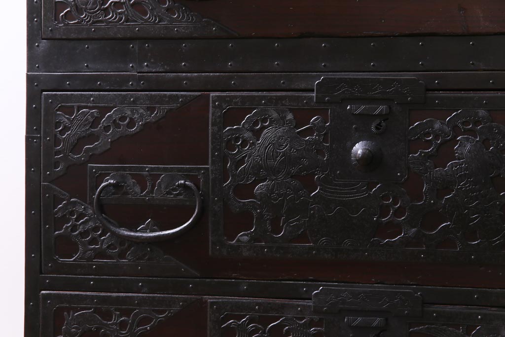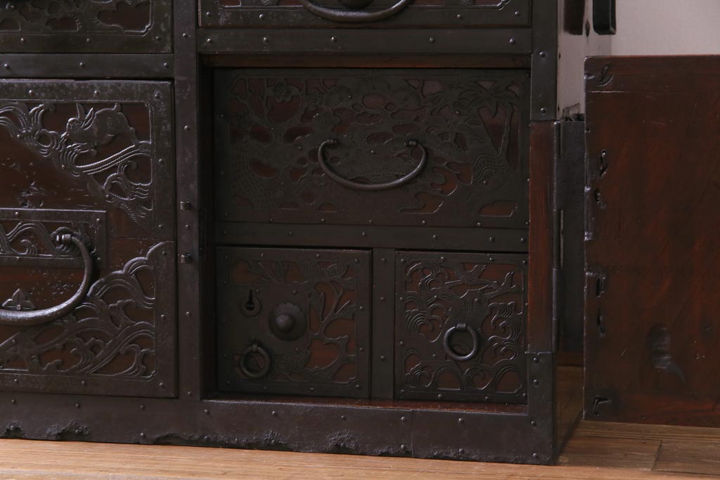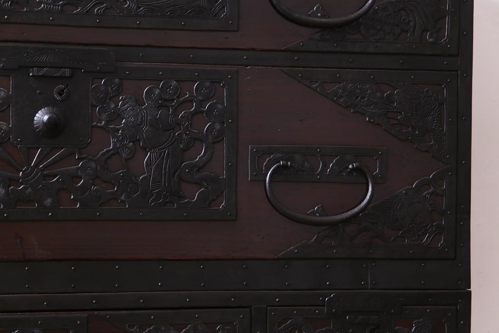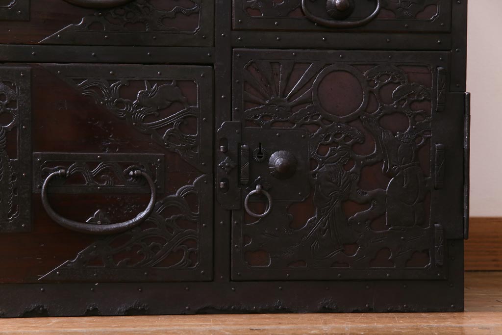 アンティーク家具 古民具 最高級品! 漆塗り 上出来な金具に目を見張る珠玉の佐渡箪笥(八幡箪笥、衣装箪笥)