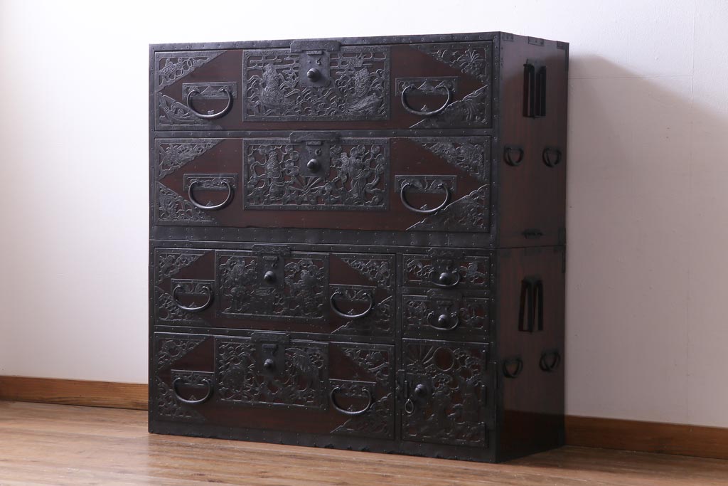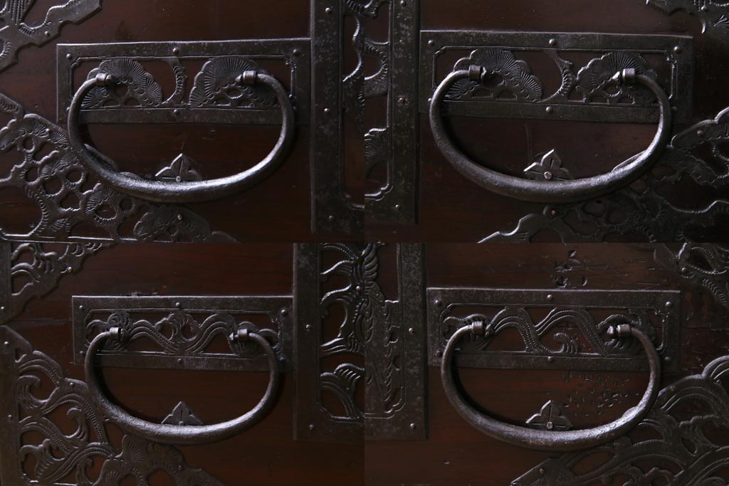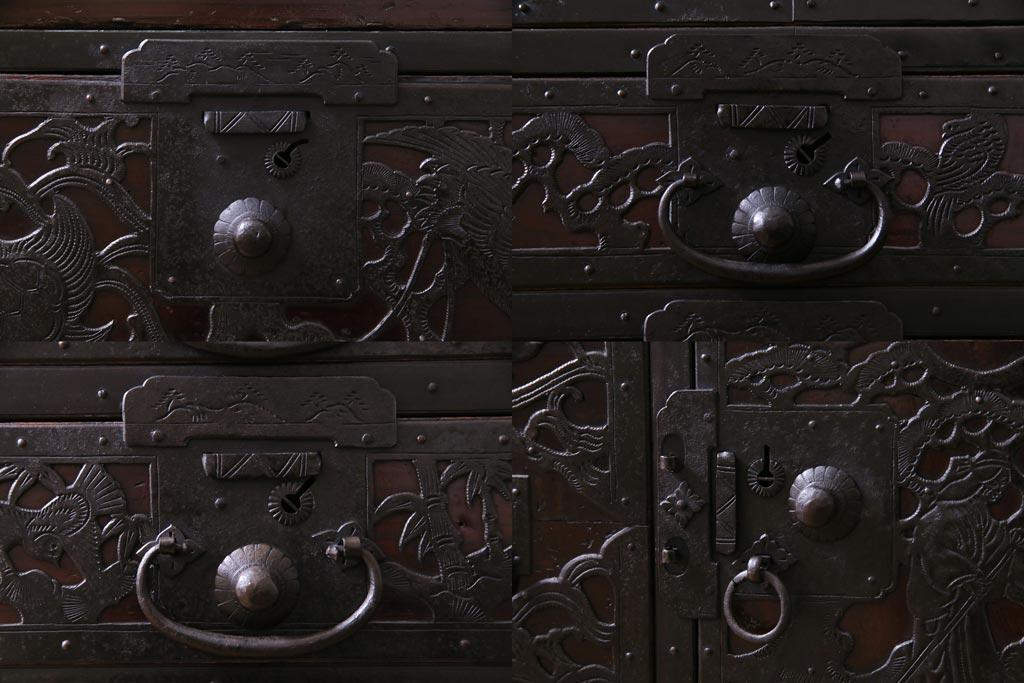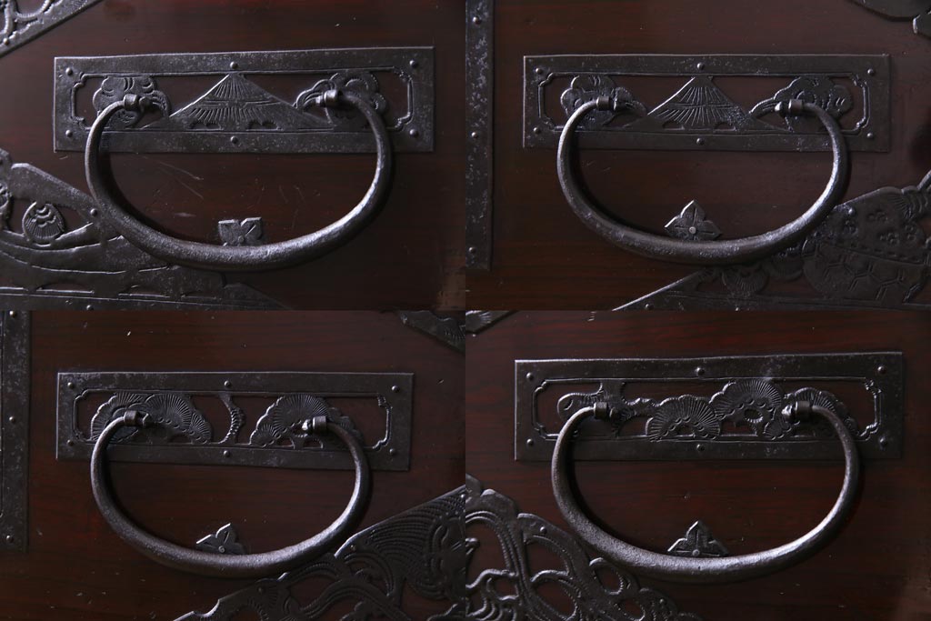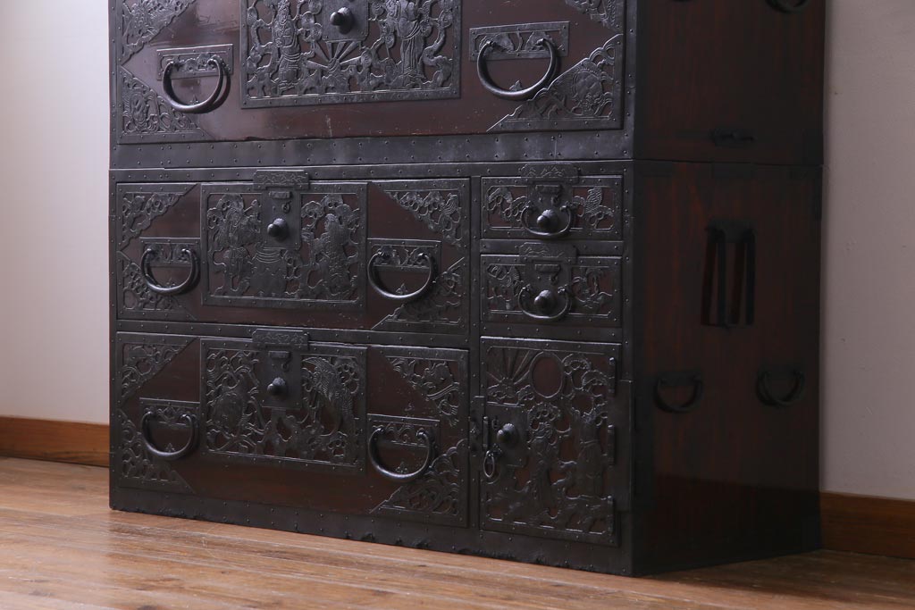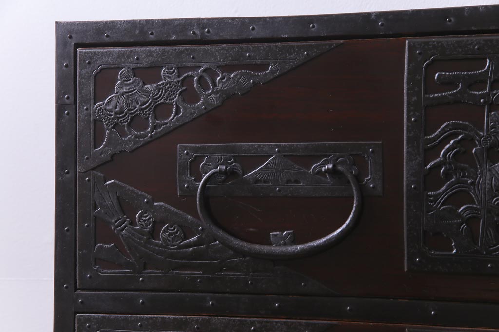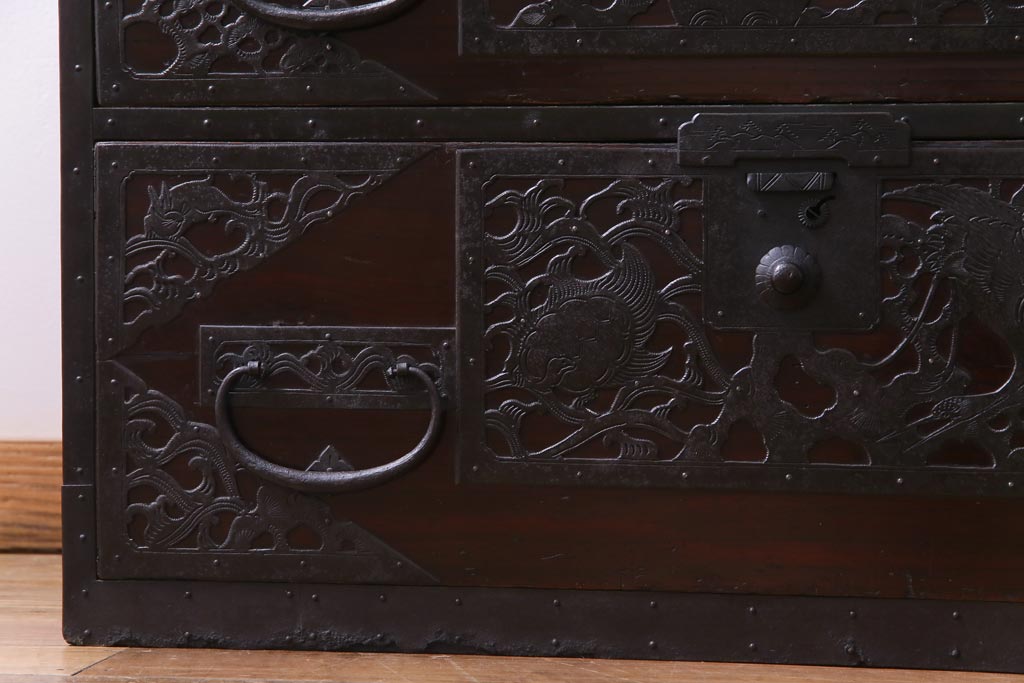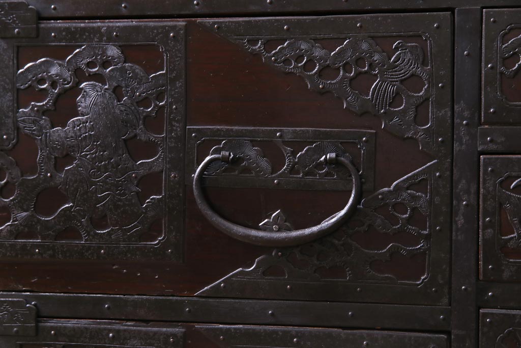 アンティーク家具 古民具 最高級品! 漆塗り 上出来な金具に目を見張る珠玉の佐渡箪笥(八幡箪笥、衣装箪笥)