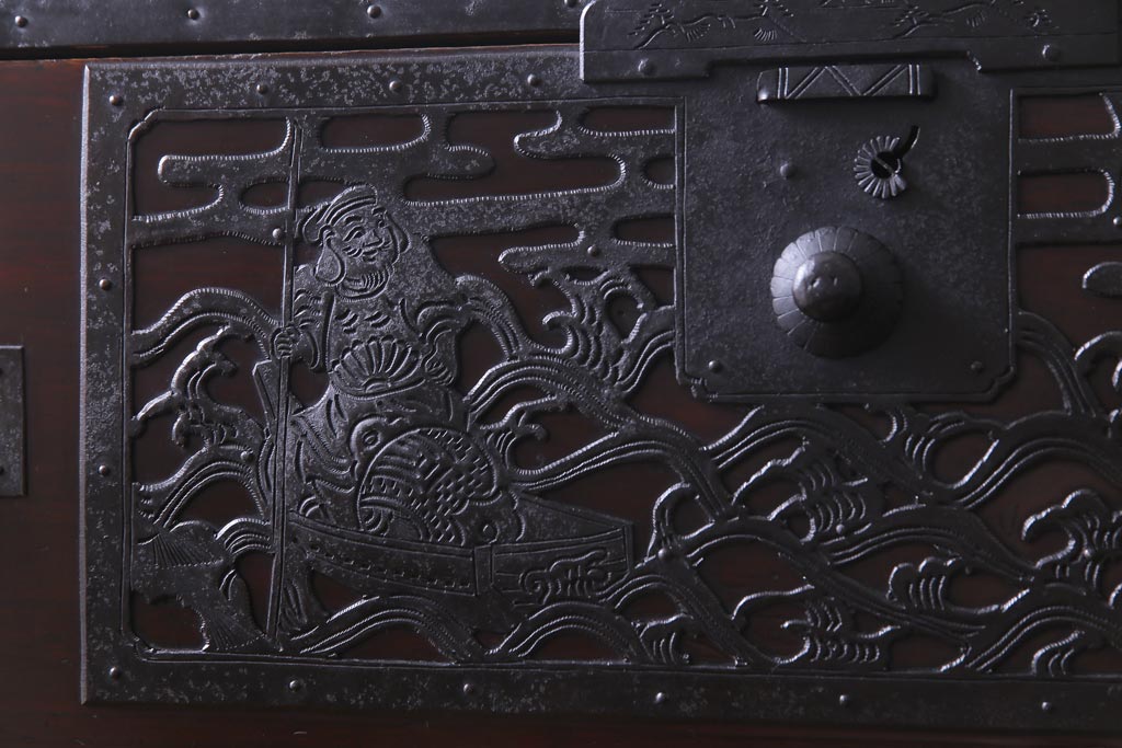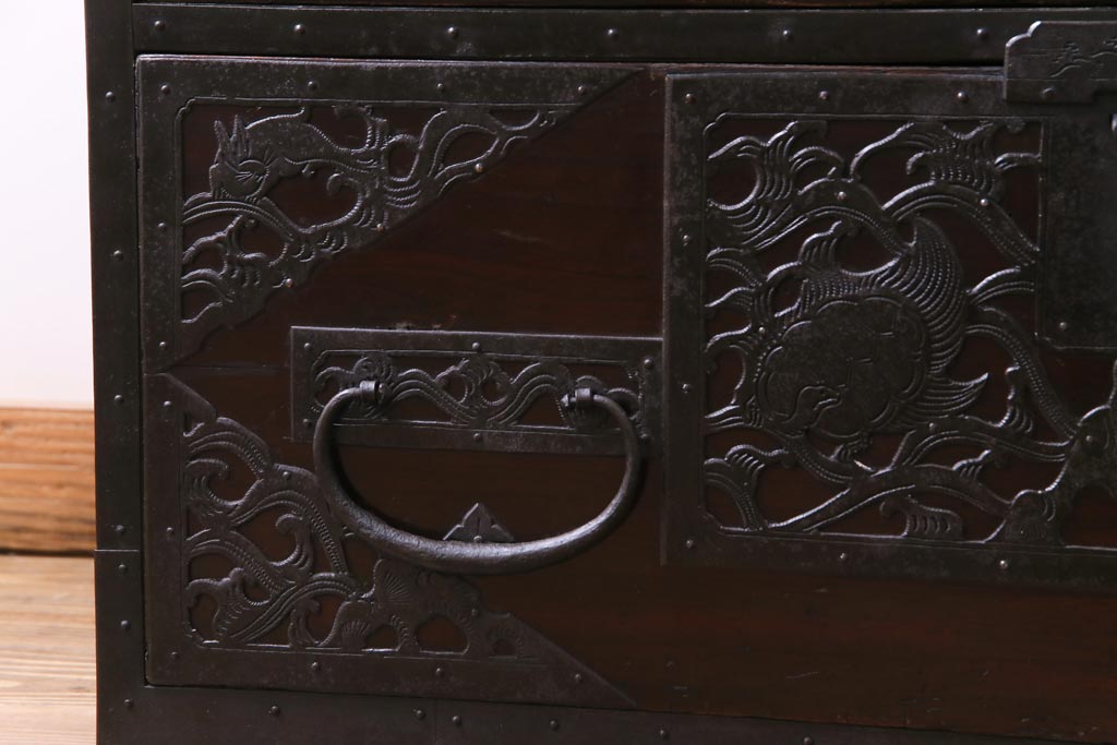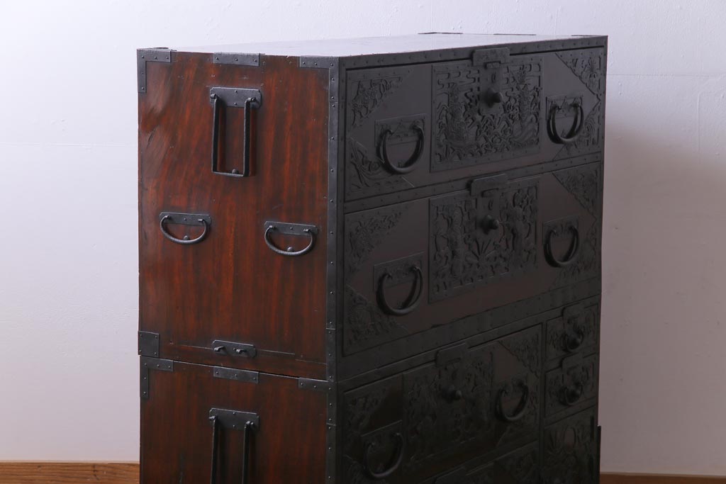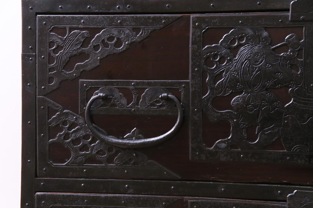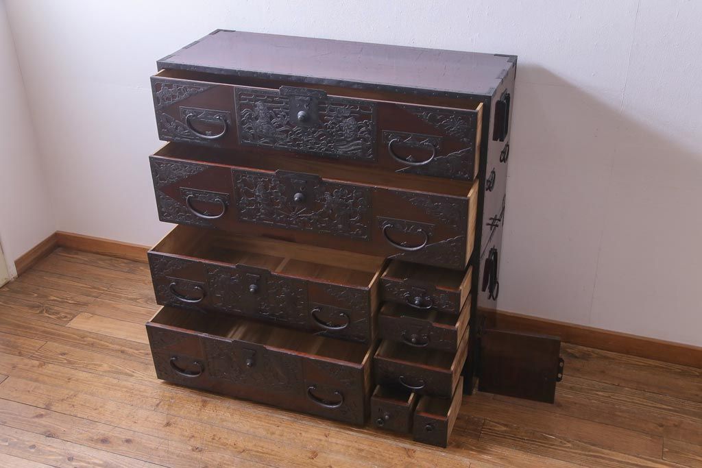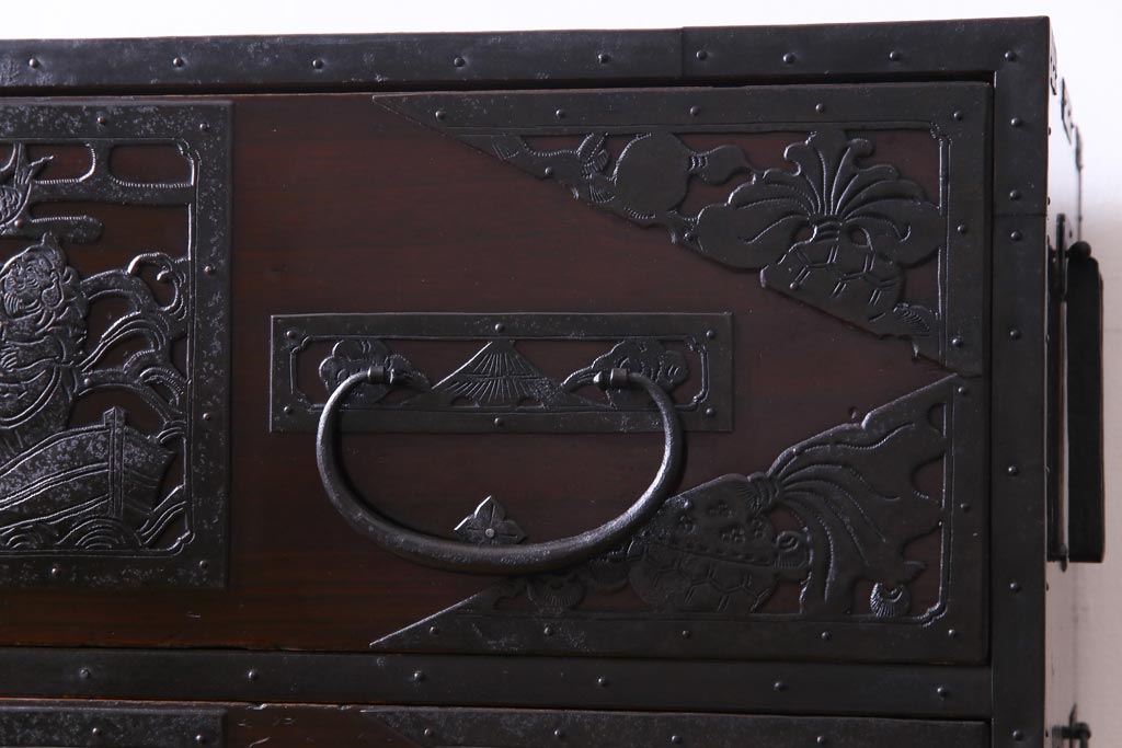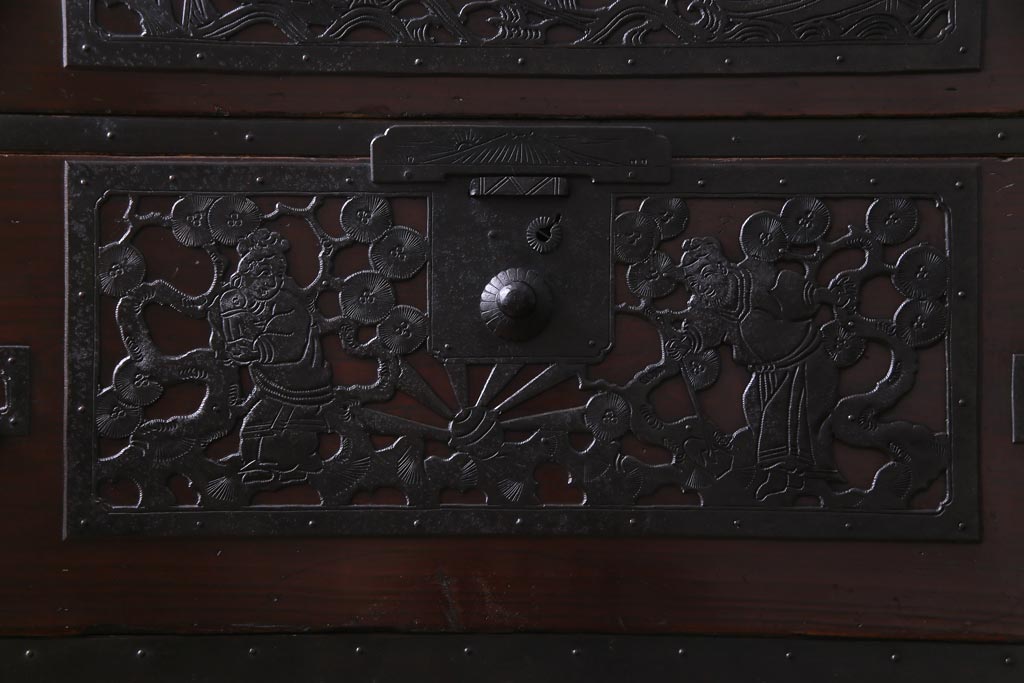アンティーク家具 古民具 最高級品! 漆塗り 上出来な金具に目を見張る珠玉の佐渡箪笥(八幡箪笥、衣装箪笥)