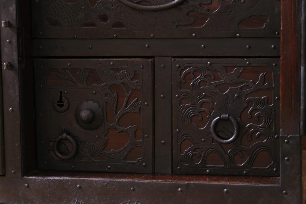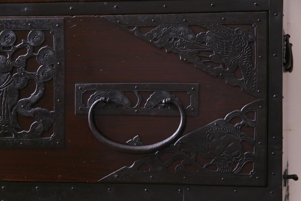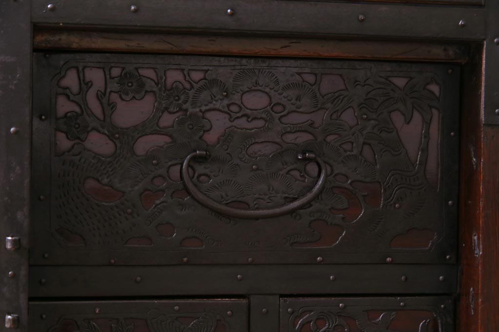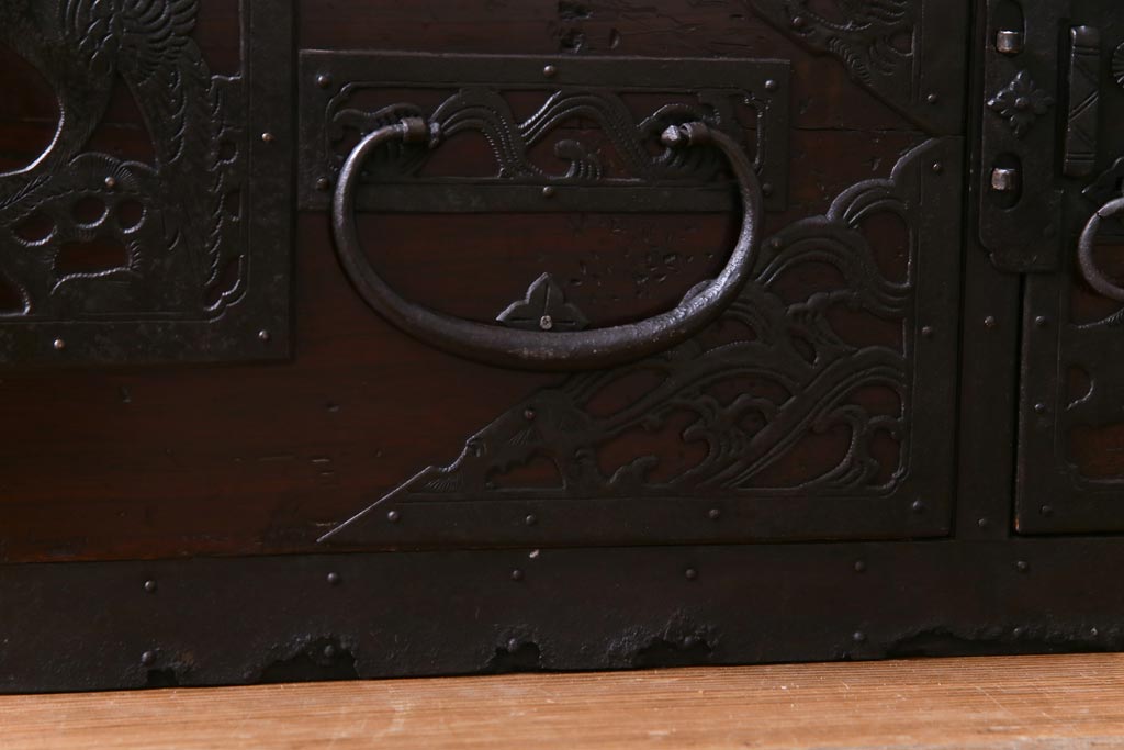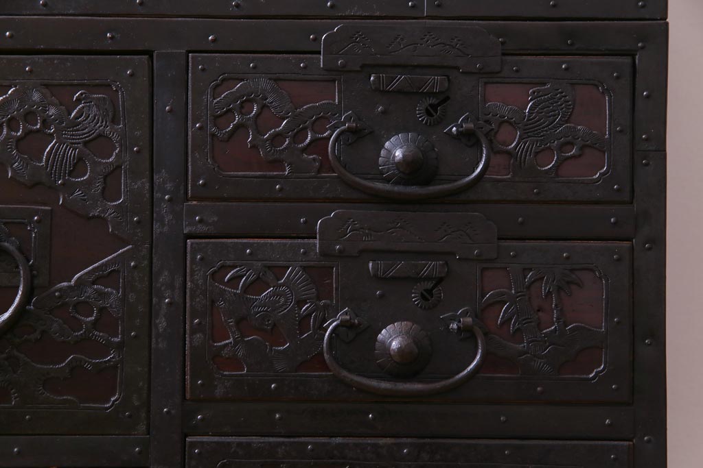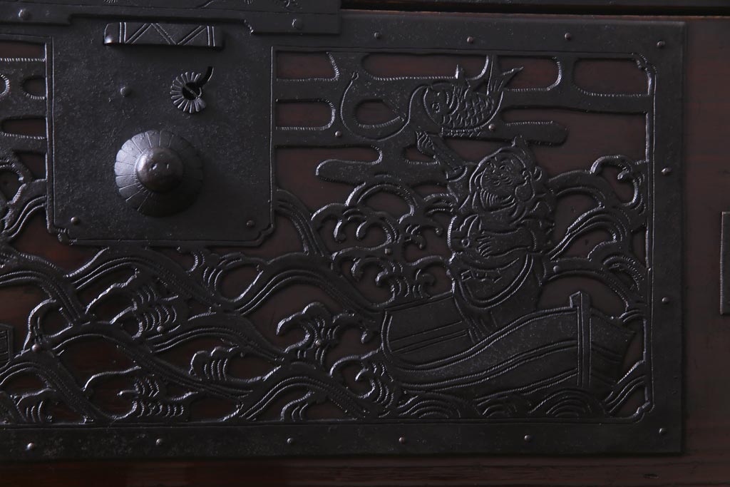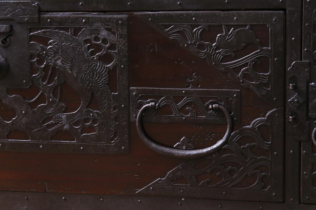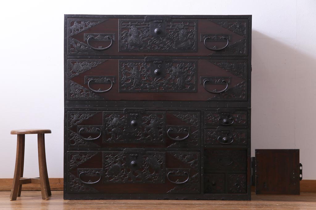 アンティーク家具 古民具 最高級品! 漆塗り 上出来な金具に目を見張る珠玉の佐渡箪笥(八幡箪笥、衣装箪笥)