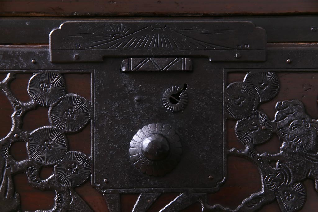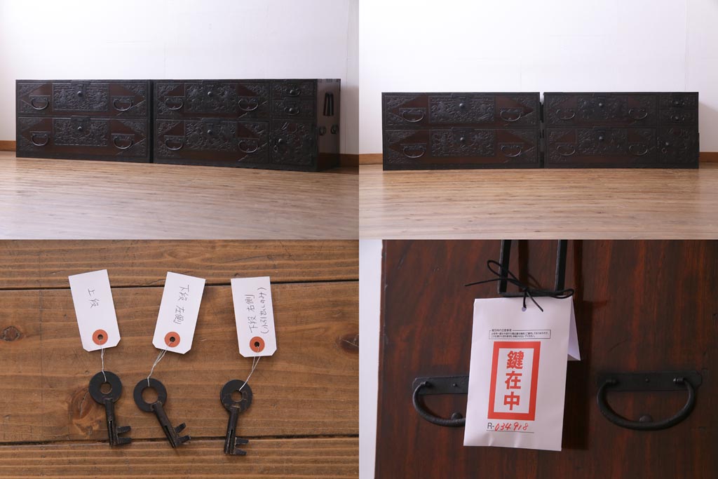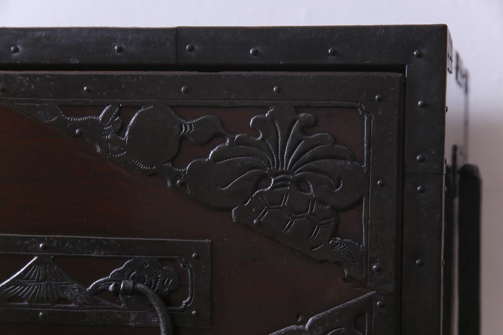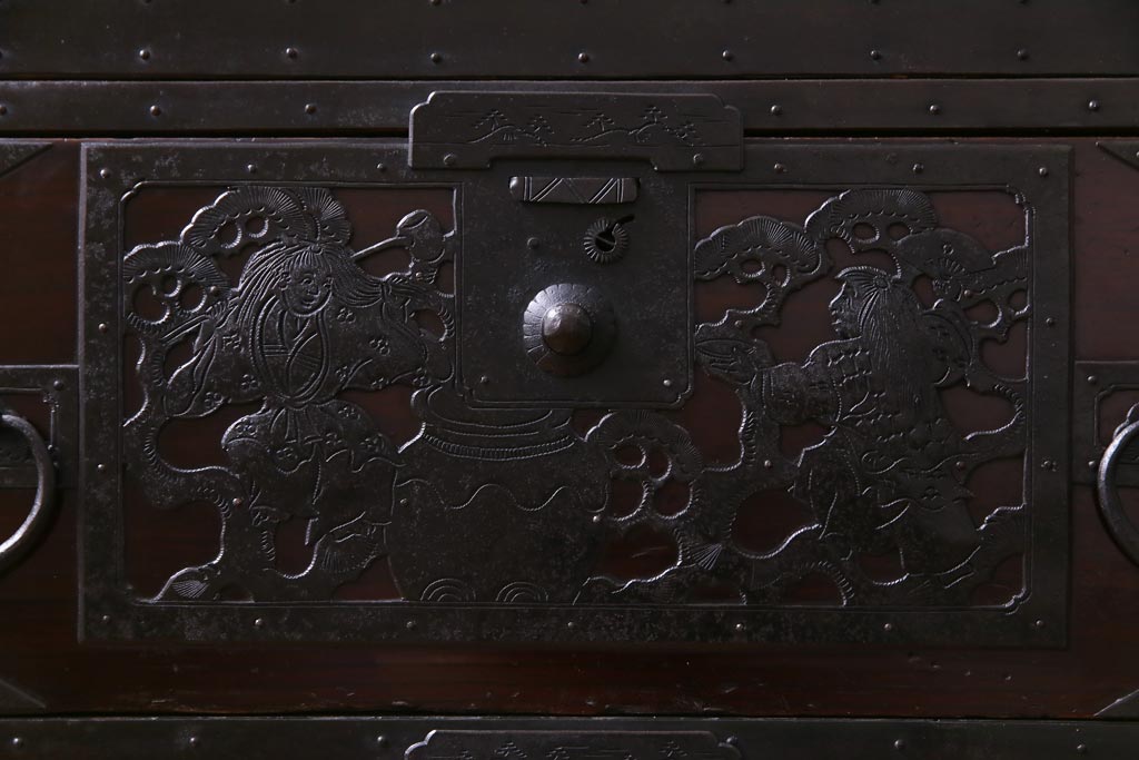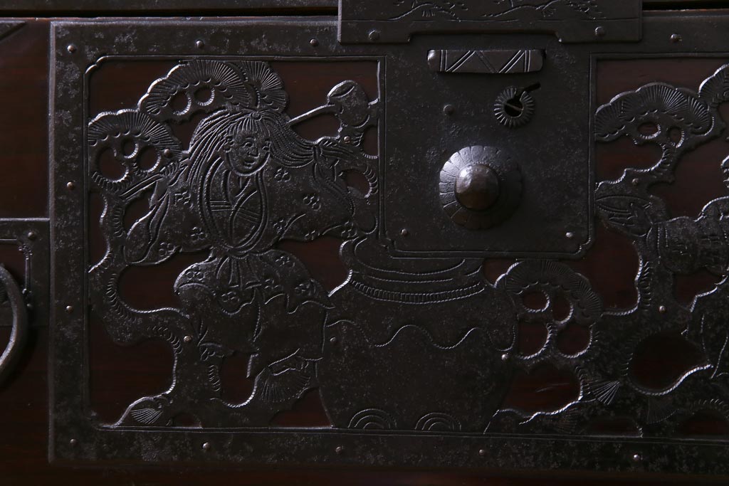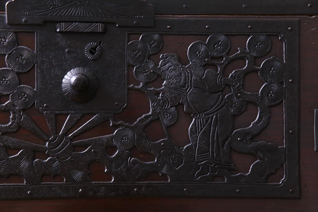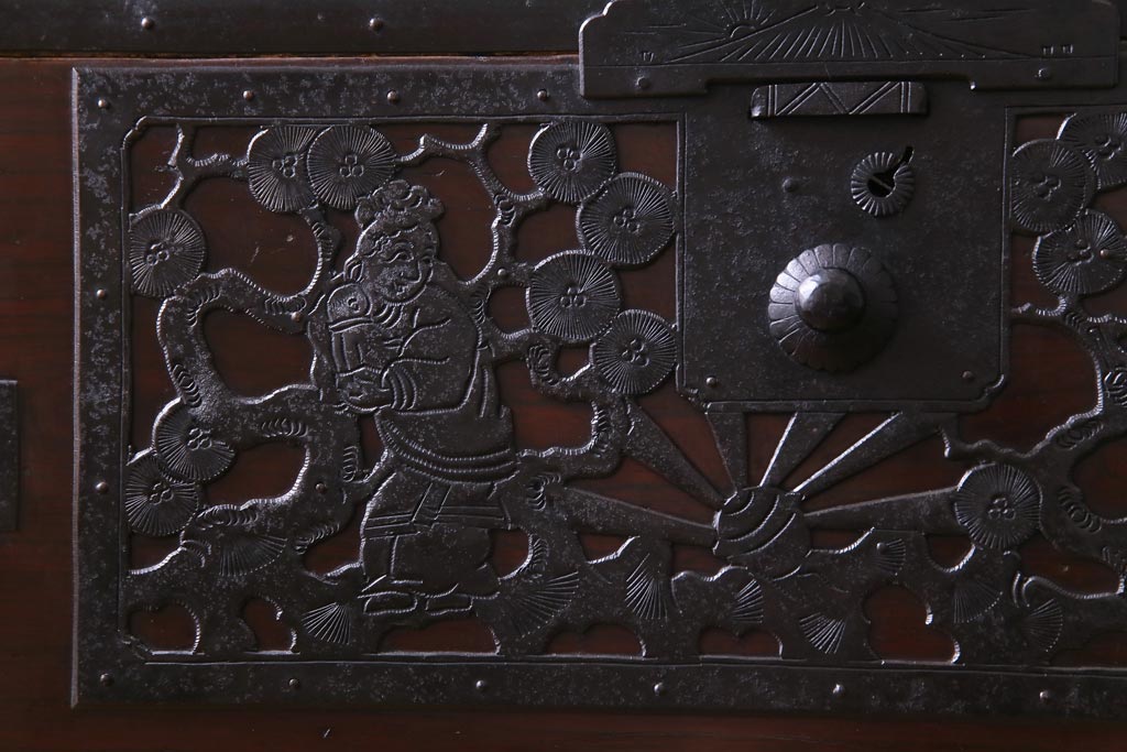 アンティーク家具 古民具 最高級品! 漆塗り 上出来な金具に目を見張る珠玉の佐渡箪笥(八幡箪笥、衣装箪笥)