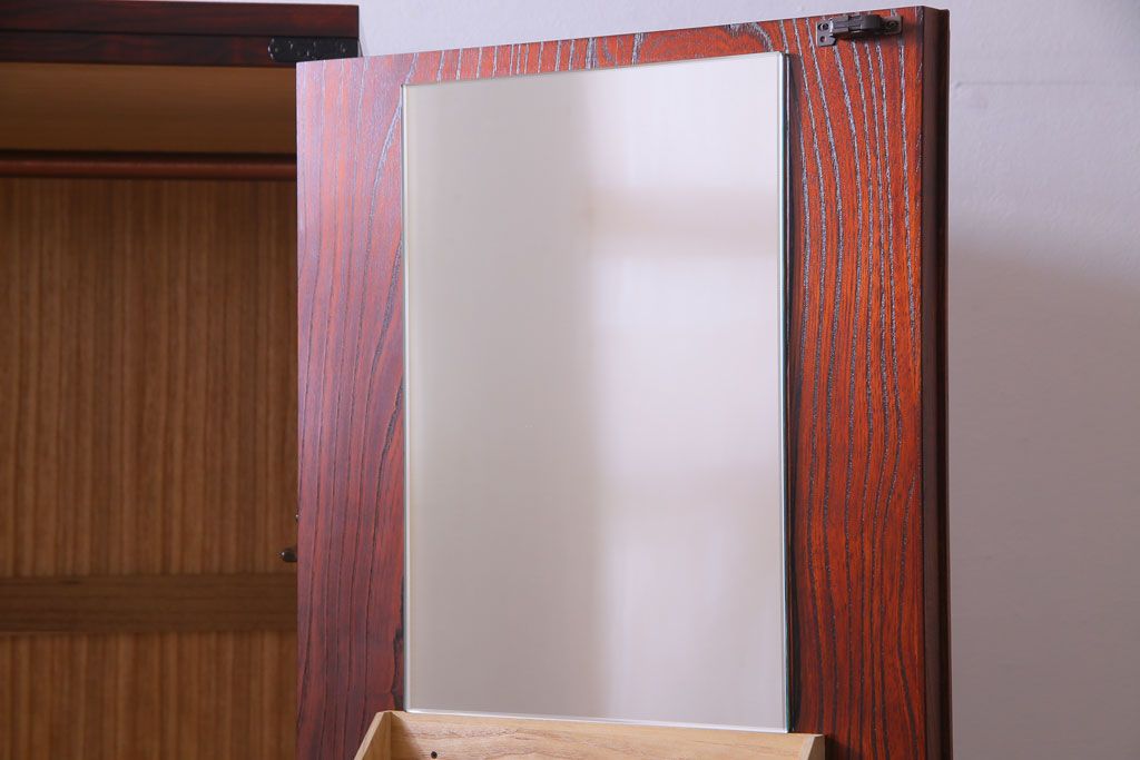 扉の裏面には鏡とラックが付いており、