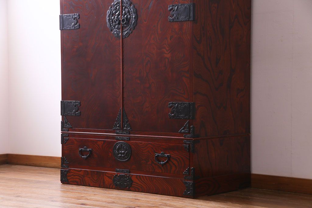 中古 伝統民芸 岩谷堂箪笥 みちのく8号 荘厳な佇まいが魅力的なワードローブ(洋服タンス)