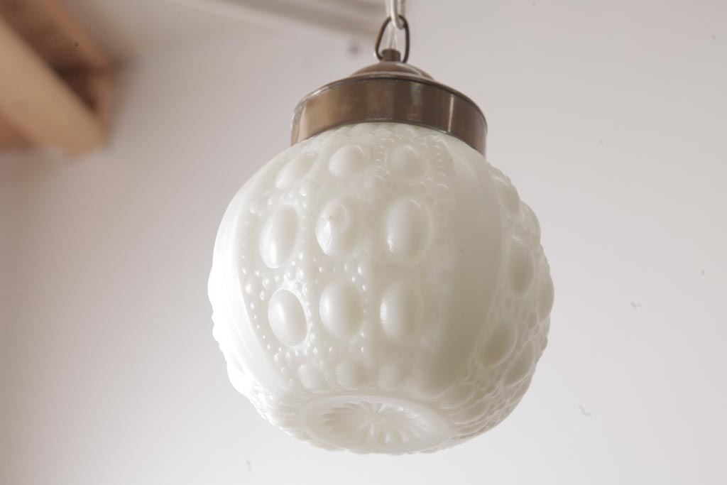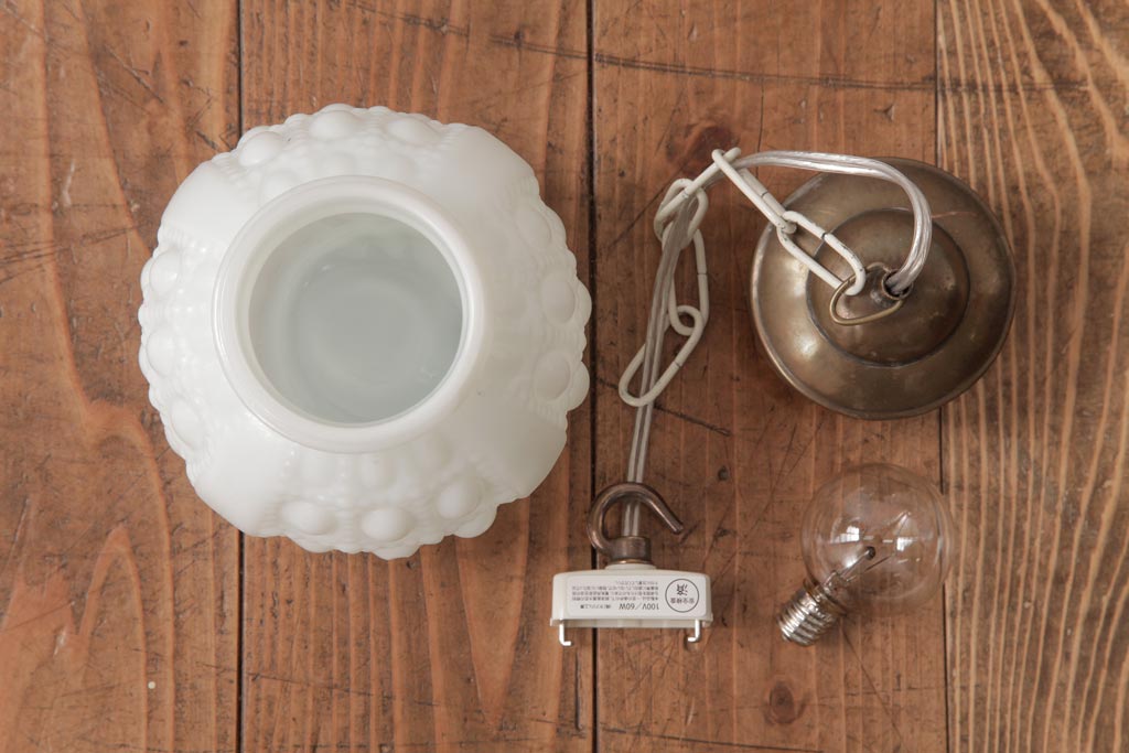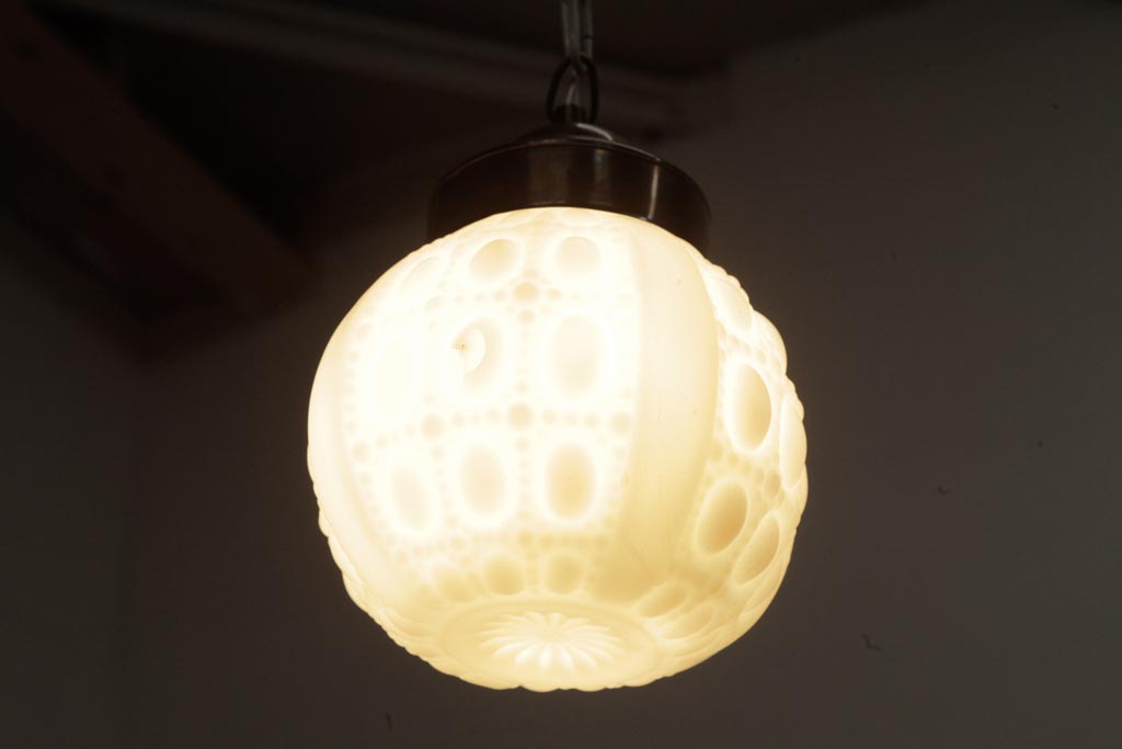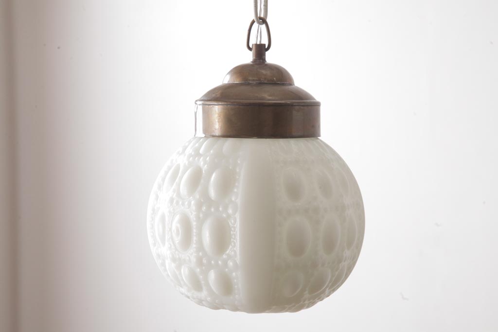 アメリカビンテージ 目を引くデザインのミルクガラスのペンダントライト(吊り下げ照明)