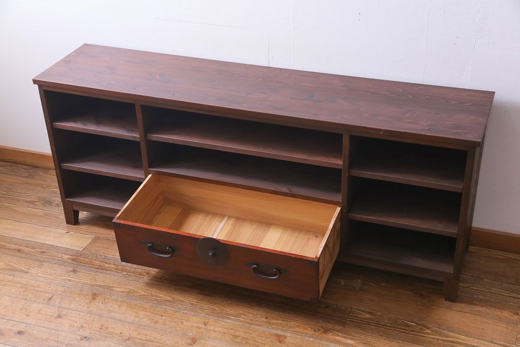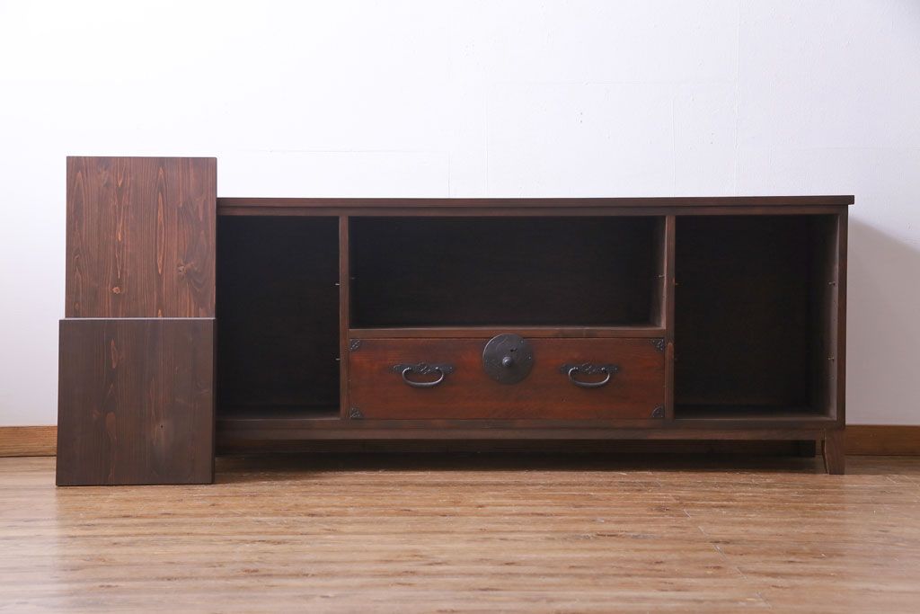 ラフジュ工房オリジナル 引き出しリメイク 重厚な和の雰囲気が楽しめるテレビボード(ローボード、収納棚)です。