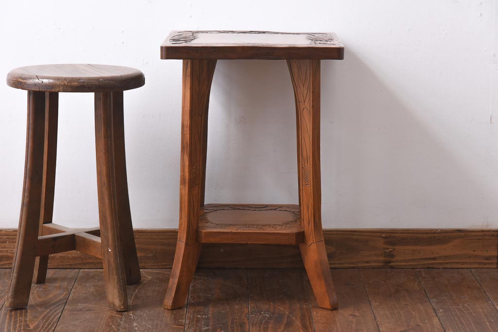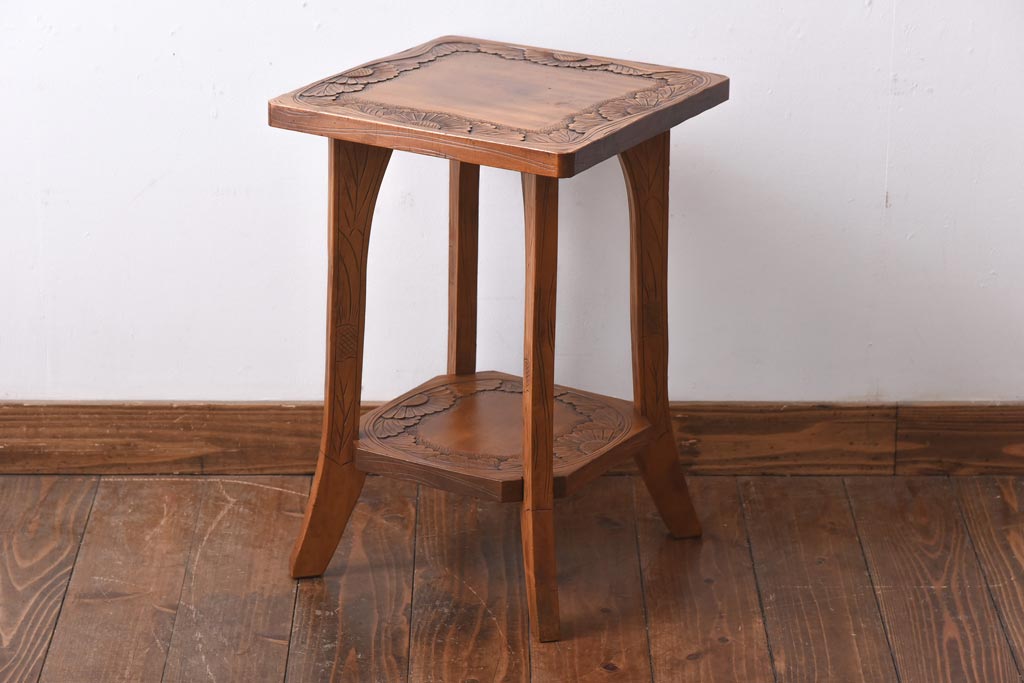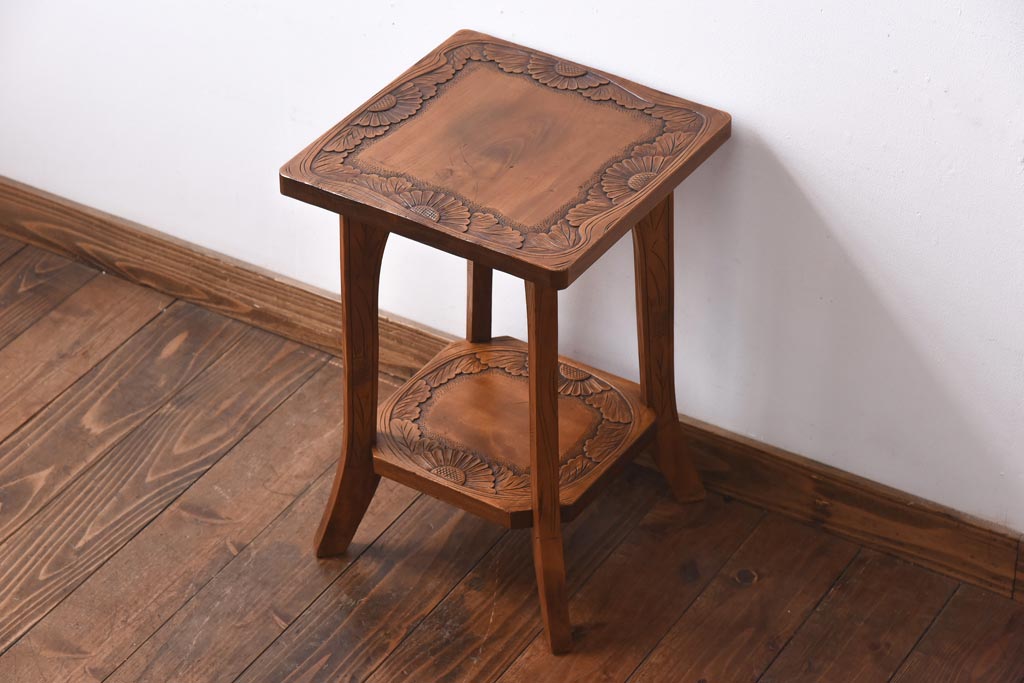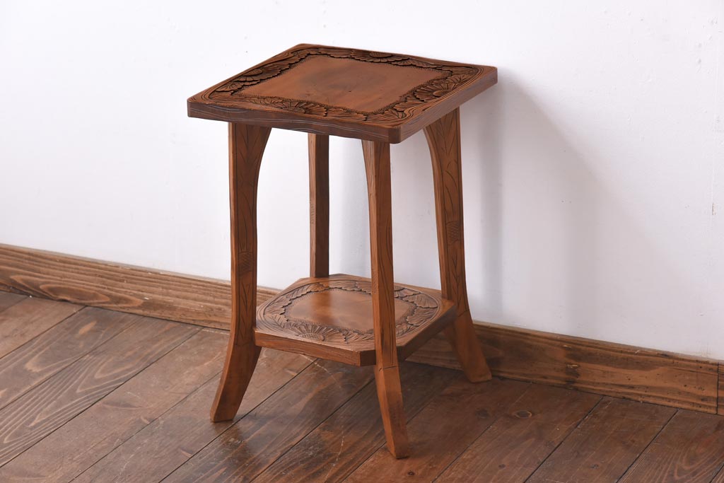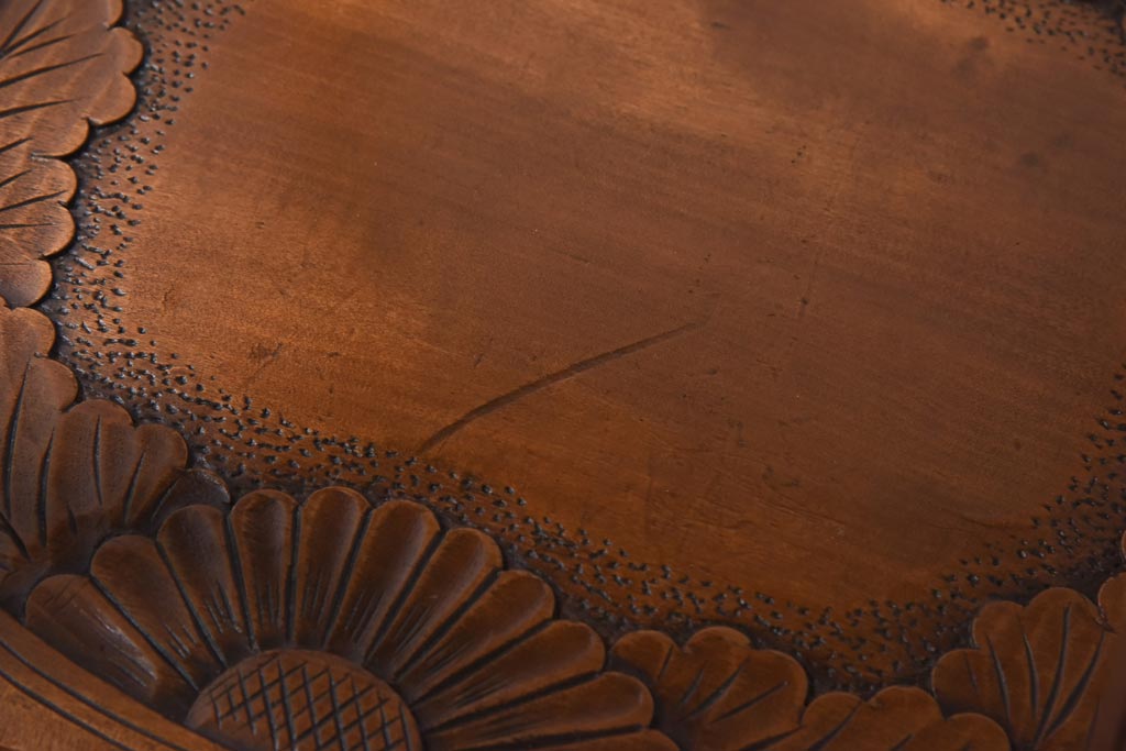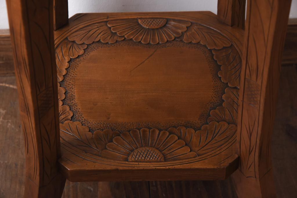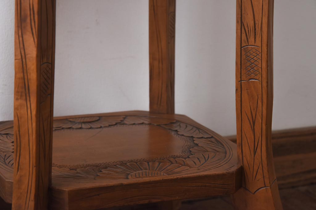 アンティーク雑貨 中古 伝統工芸 軽井沢彫り 菊の縁取りが華やかなビンテージの花台