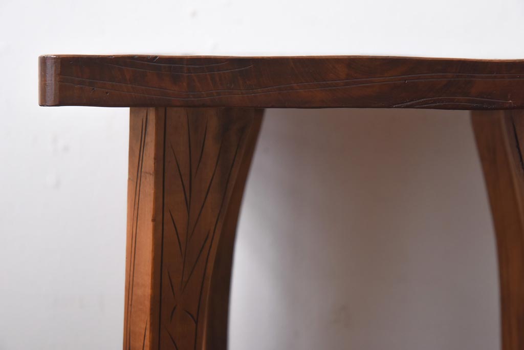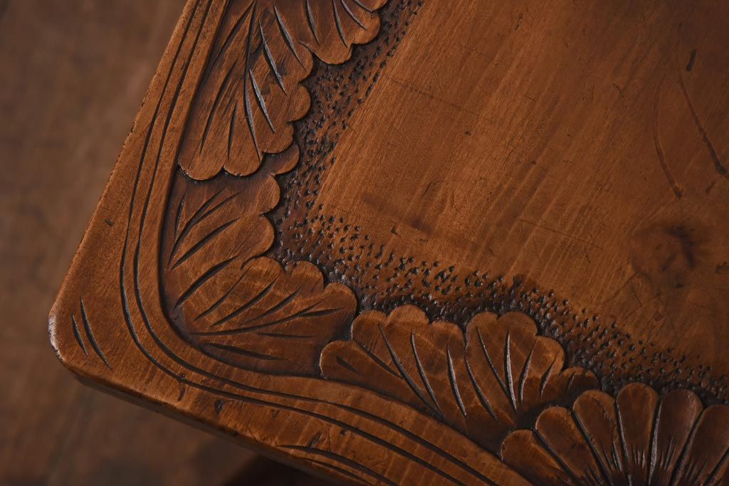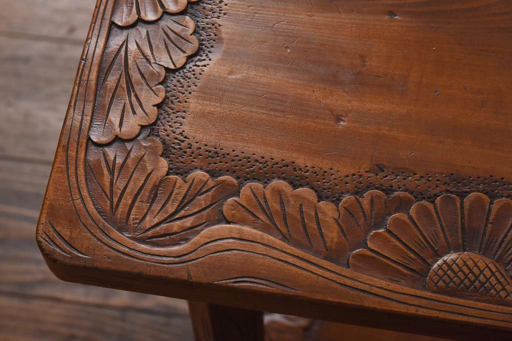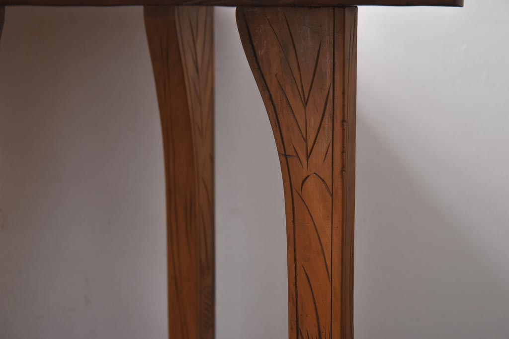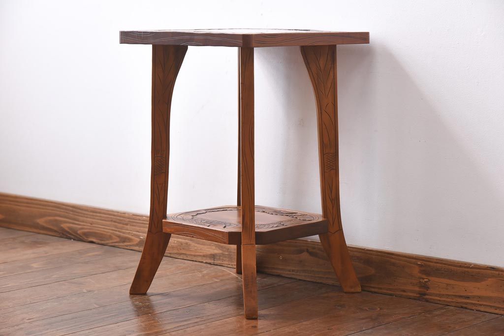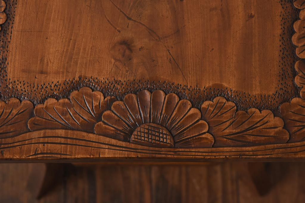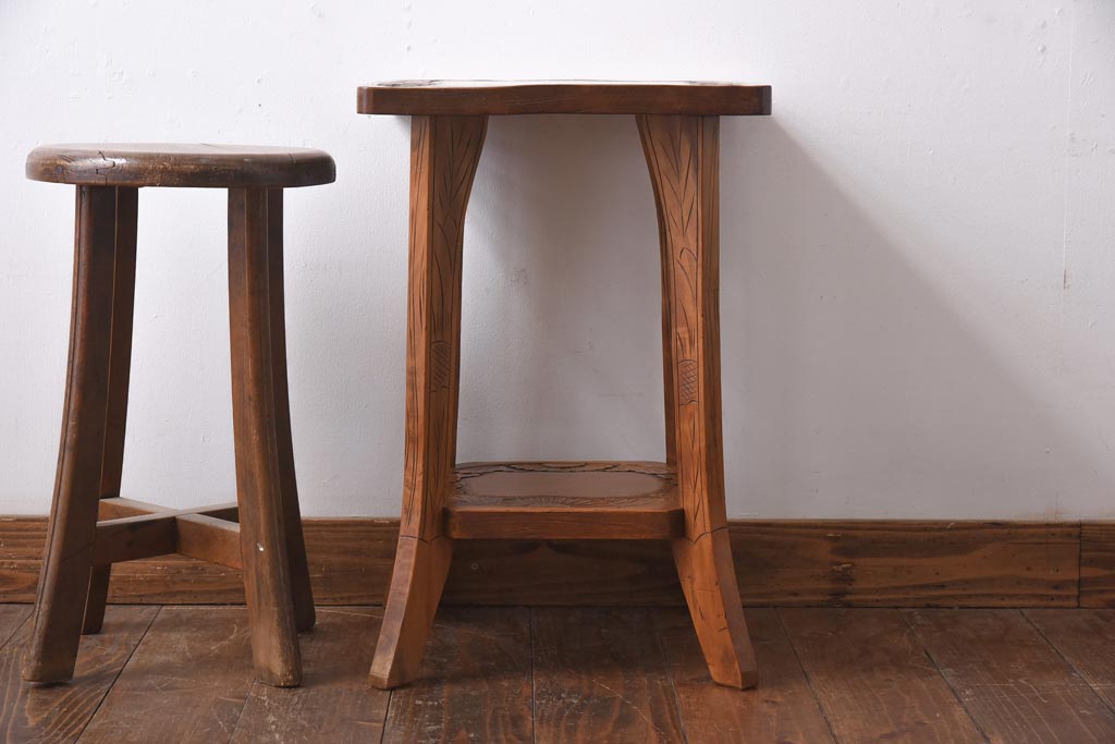 アンティーク雑貨 中古 伝統工芸 軽井沢彫り 菊の縁取りが華やかなビンテージの花台