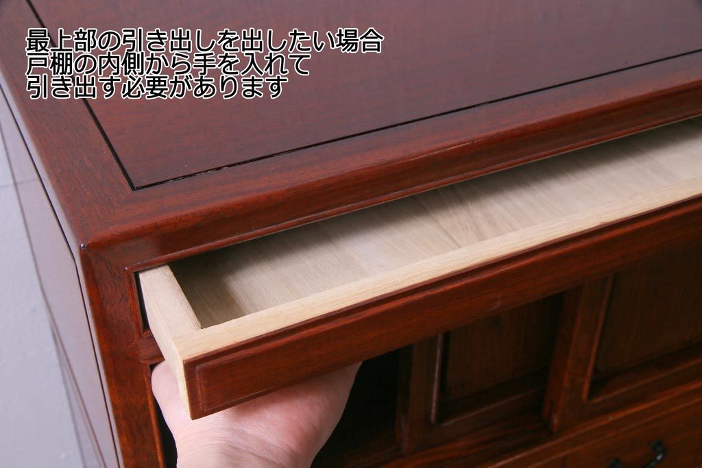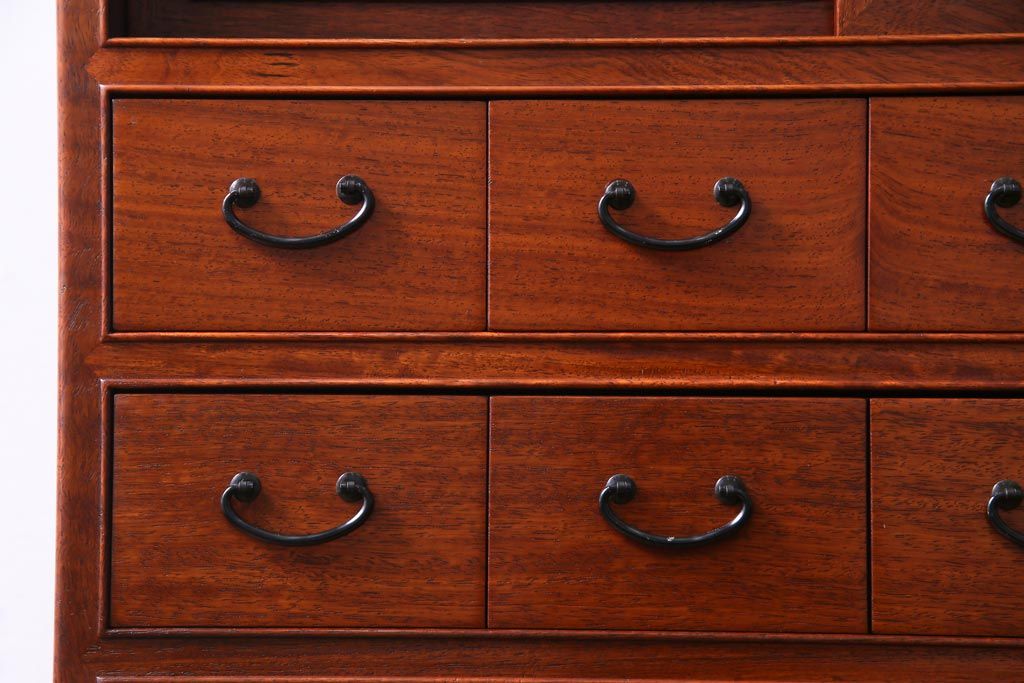 ラフジュ工房> 民芸家具 > ビンテージ 民芸家具 カリン無垢材 花梨 上品な佇まいの引き出し(薬箪笥)(定価約29万円)