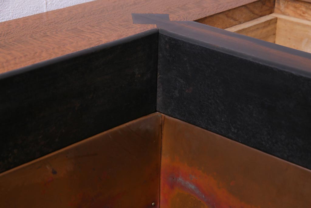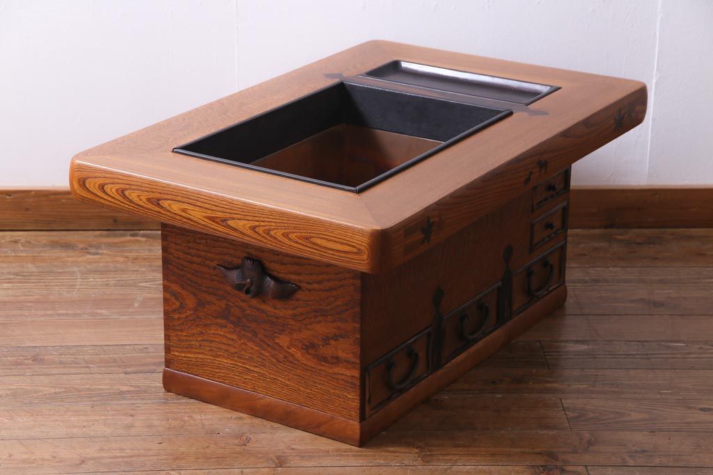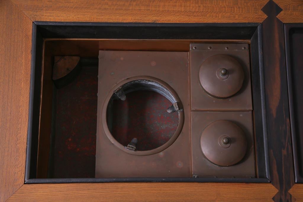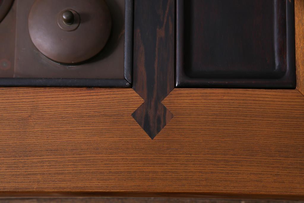 火鉢> 木製火鉢 > アンティーク雑貨 和製アンティーク 銅燗壺付き ケヤキ・黒柿 別格品!細部の意匠までこだわり抜かれた長火鉢(木製火鉢)
