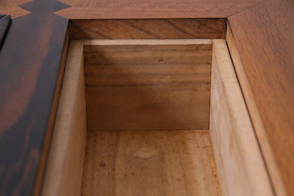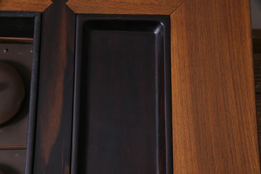 縁には黒柿、蓋には唐木を贅沢に使用しており、