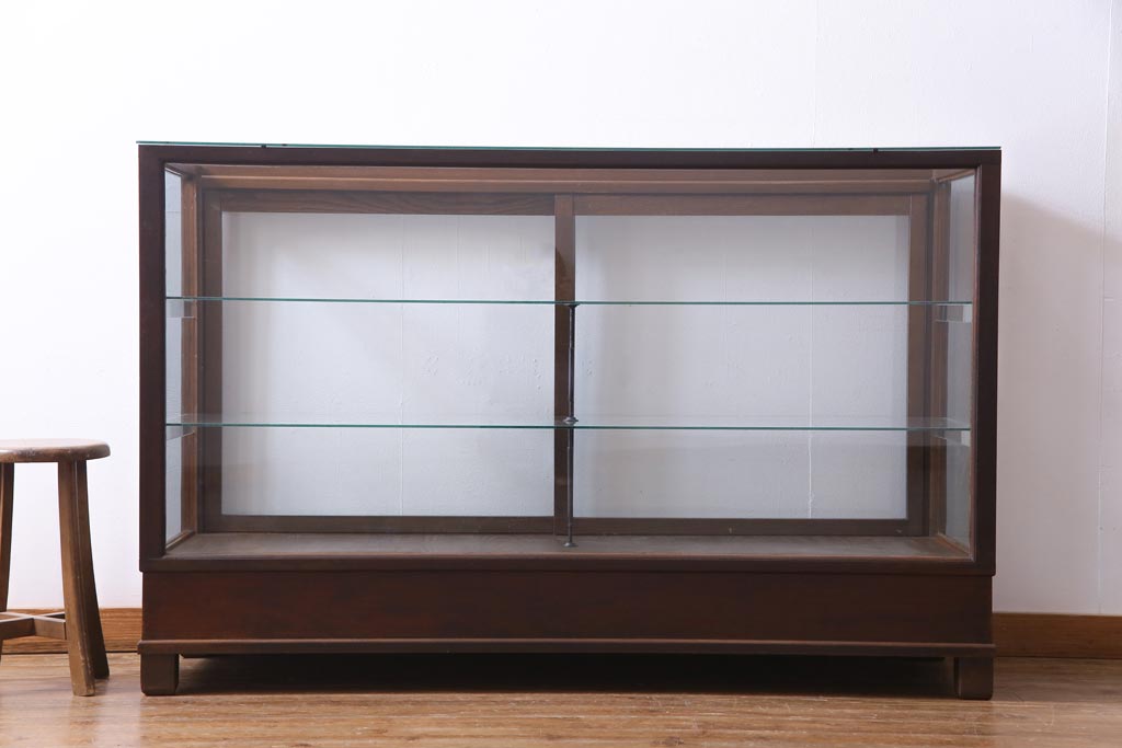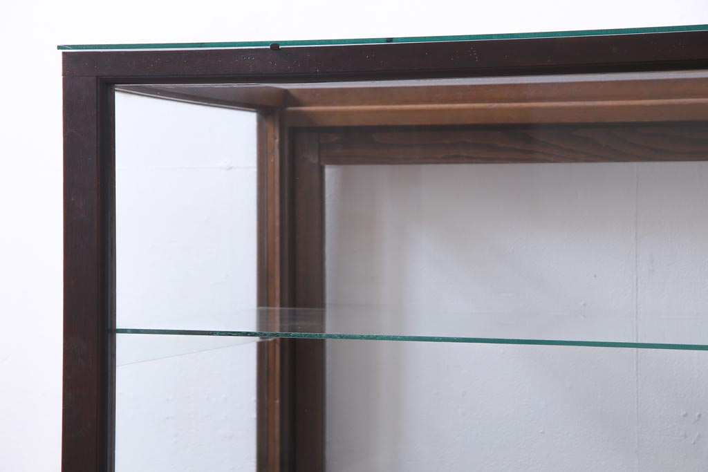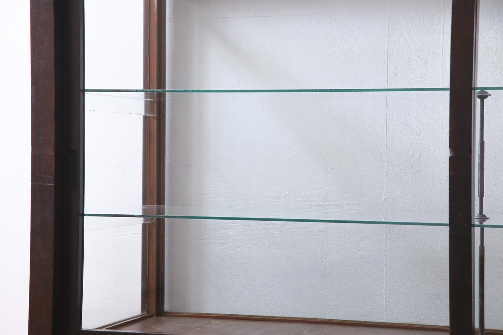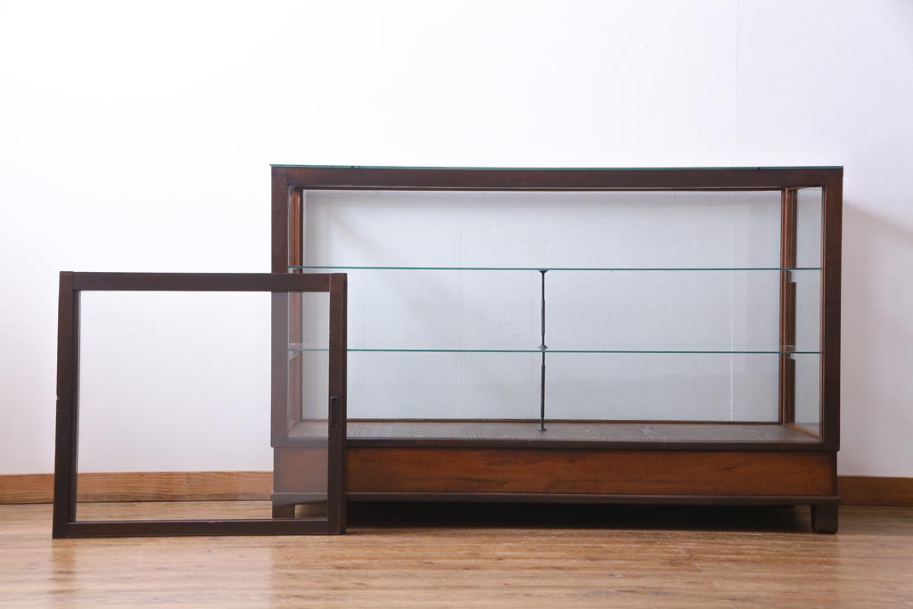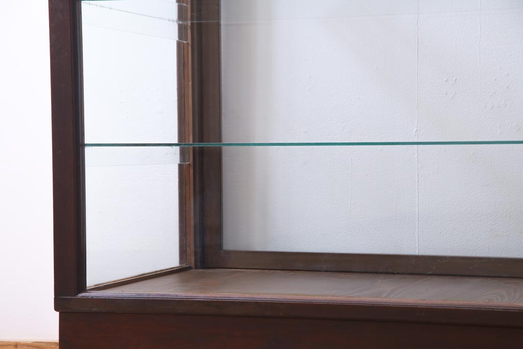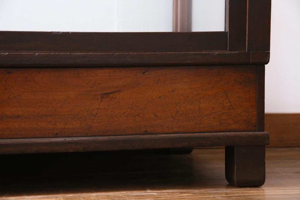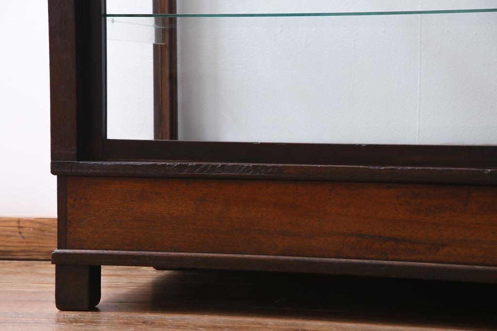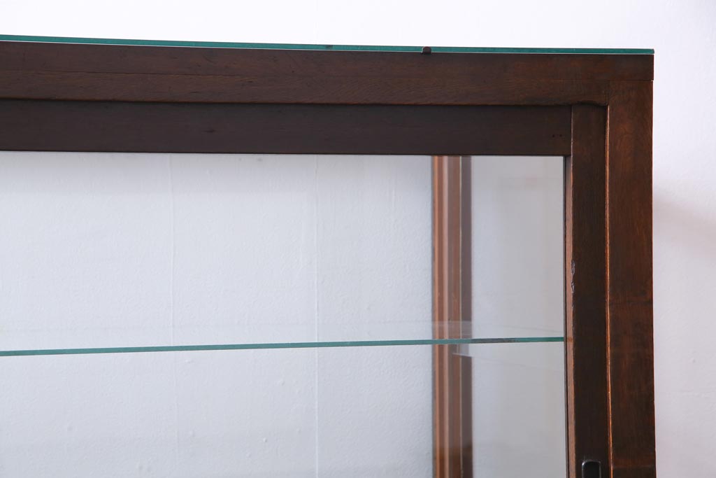 ラフジュ工房> 店舗什器 > レトロ家具 昭和レトロ ナラ材 どっしりとした佇まいの大型ガラスケース(ショーケース、陳列棚、飾り棚)