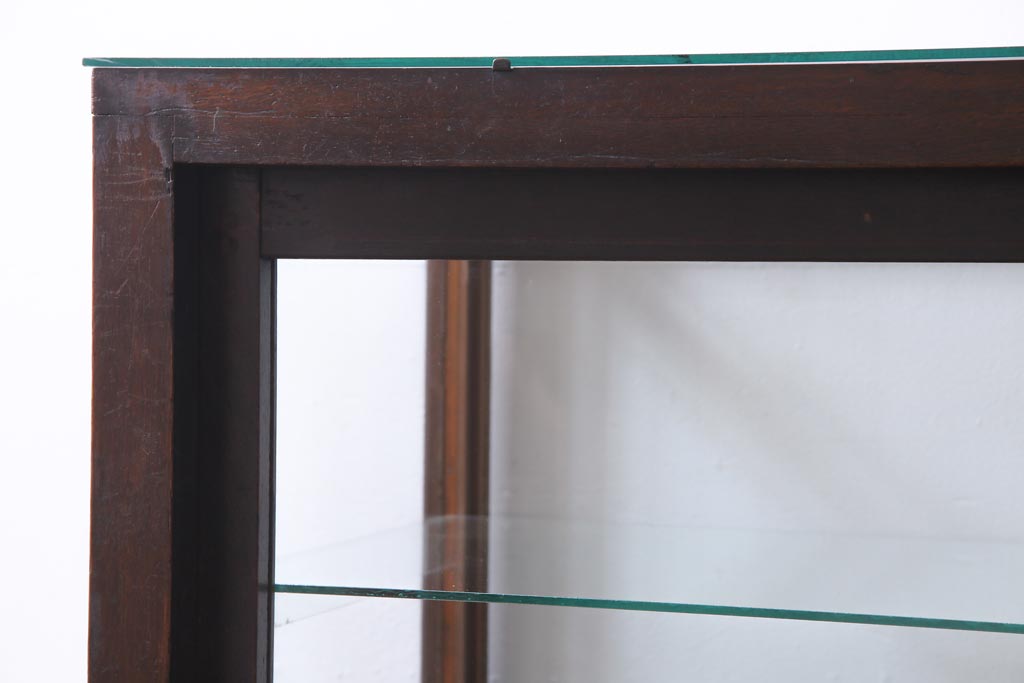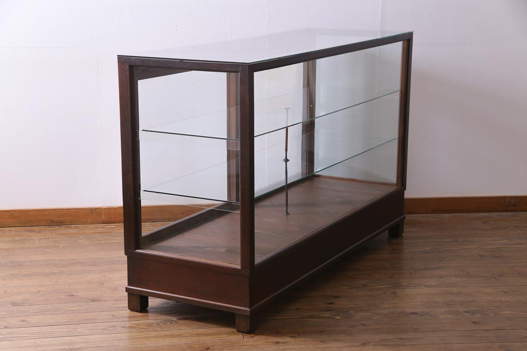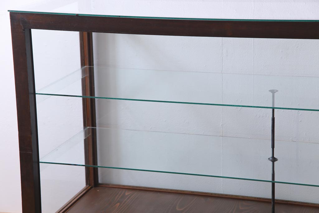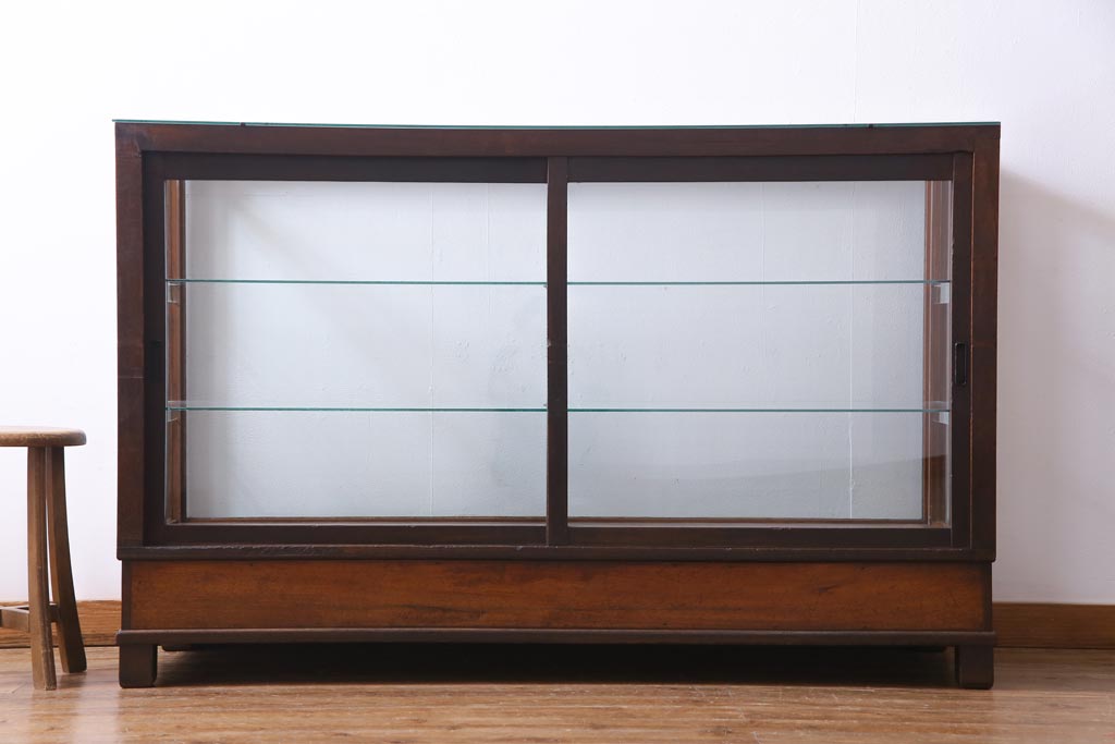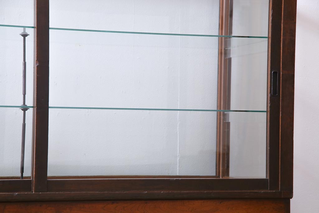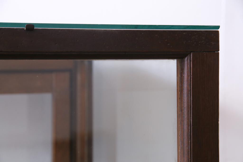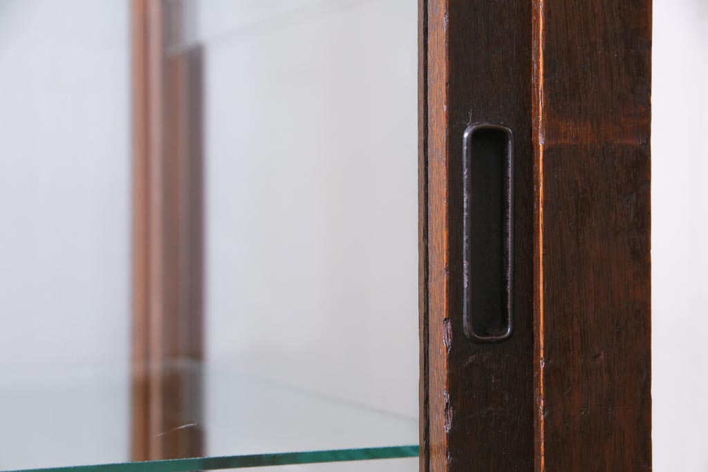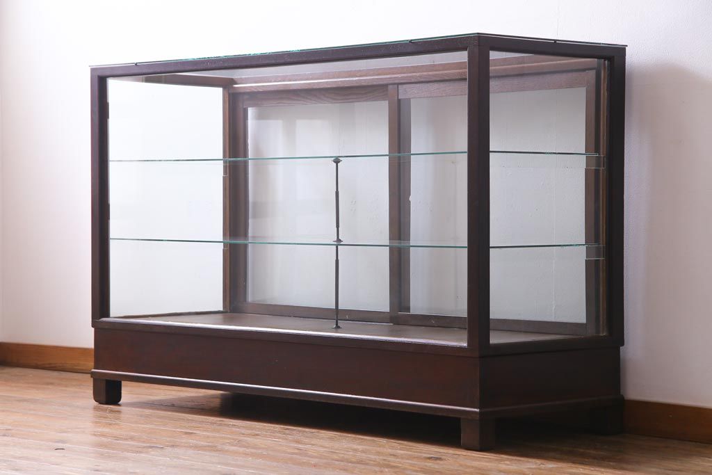 ラフジュ工房> 店舗什器 > レトロ家具 昭和レトロ ナラ材 どっしりとした佇まいの大型ガラスケース(ショーケース、陳列棚、飾り棚)